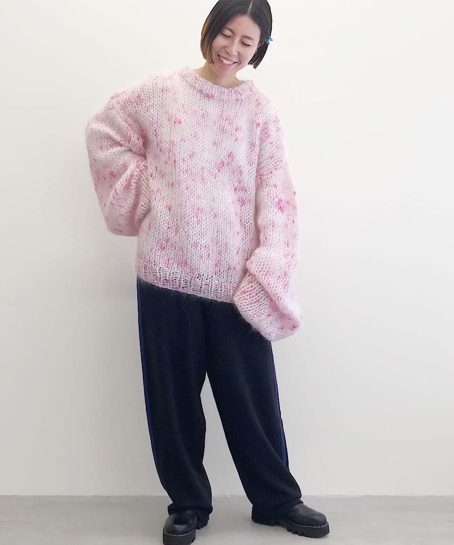 オーバーサイズのニットプルオーバー。