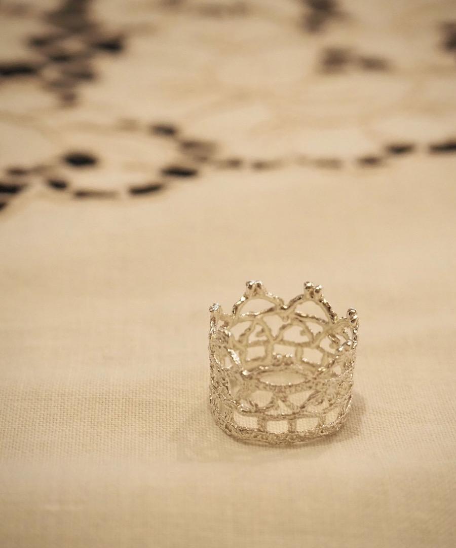 選び抜かれたヨーロッパのアンティークレースから型を取り、地金を流し込む技法を用いてひとつひとつ手作業で制作されています。
