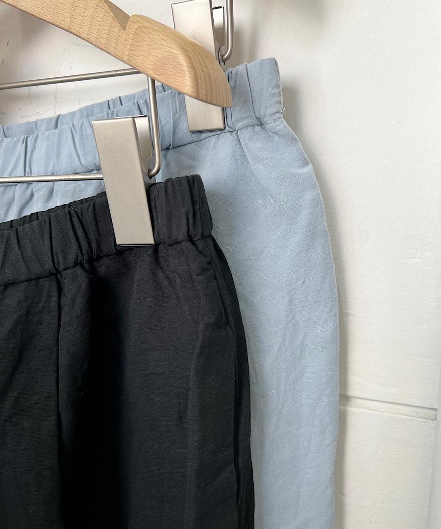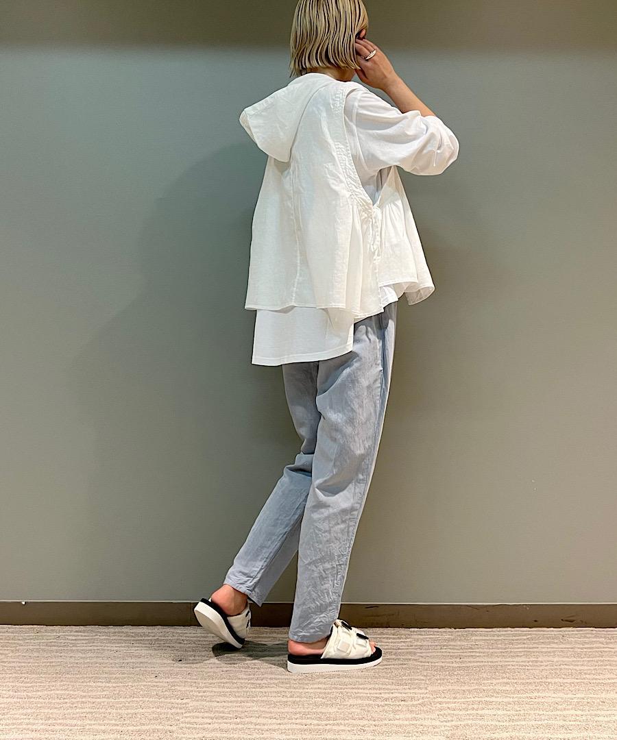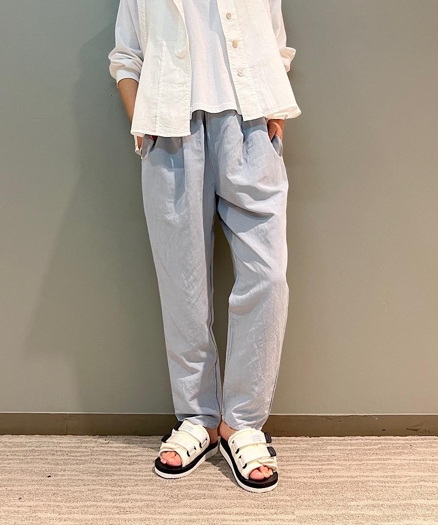 ウエストから膝下まではゆったりしたサイズ感、膝下から細くなっていくスッキリとしたシルエットです。