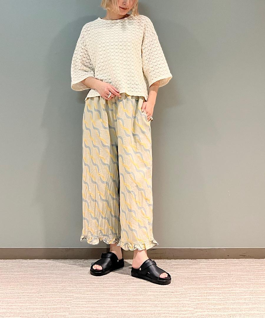 tumugu /ツイストリボンジャガード フリルパンツ