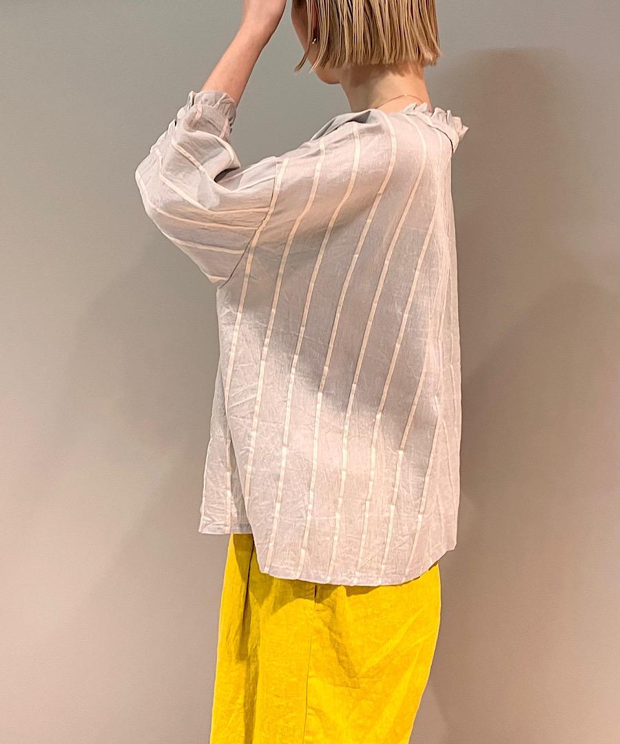 サイドから首後ろと袖についたさりげないフリルもポイントに。