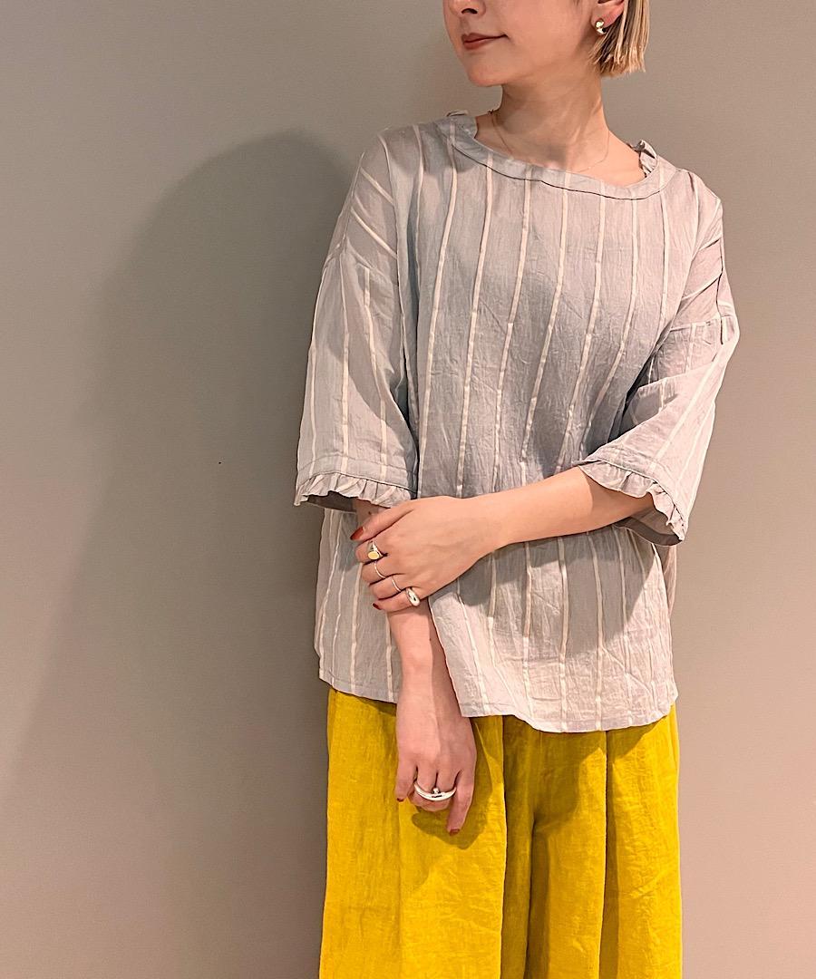 身体のラインを拾わないゆったりとしたシルエットが心地良い一枚です。