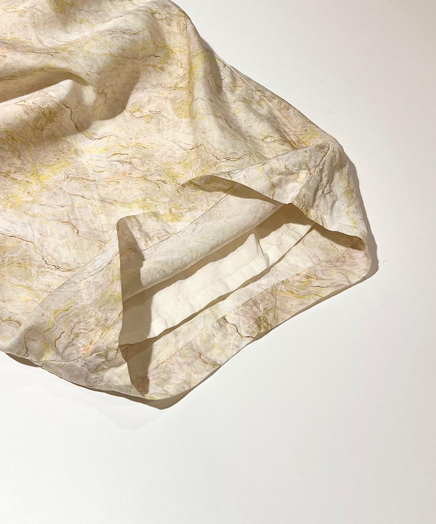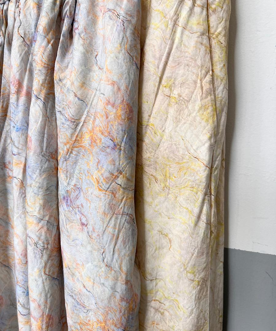 光沢のある生地に、幾重にも重なりあう曲線が神秘的なマーブル柄。