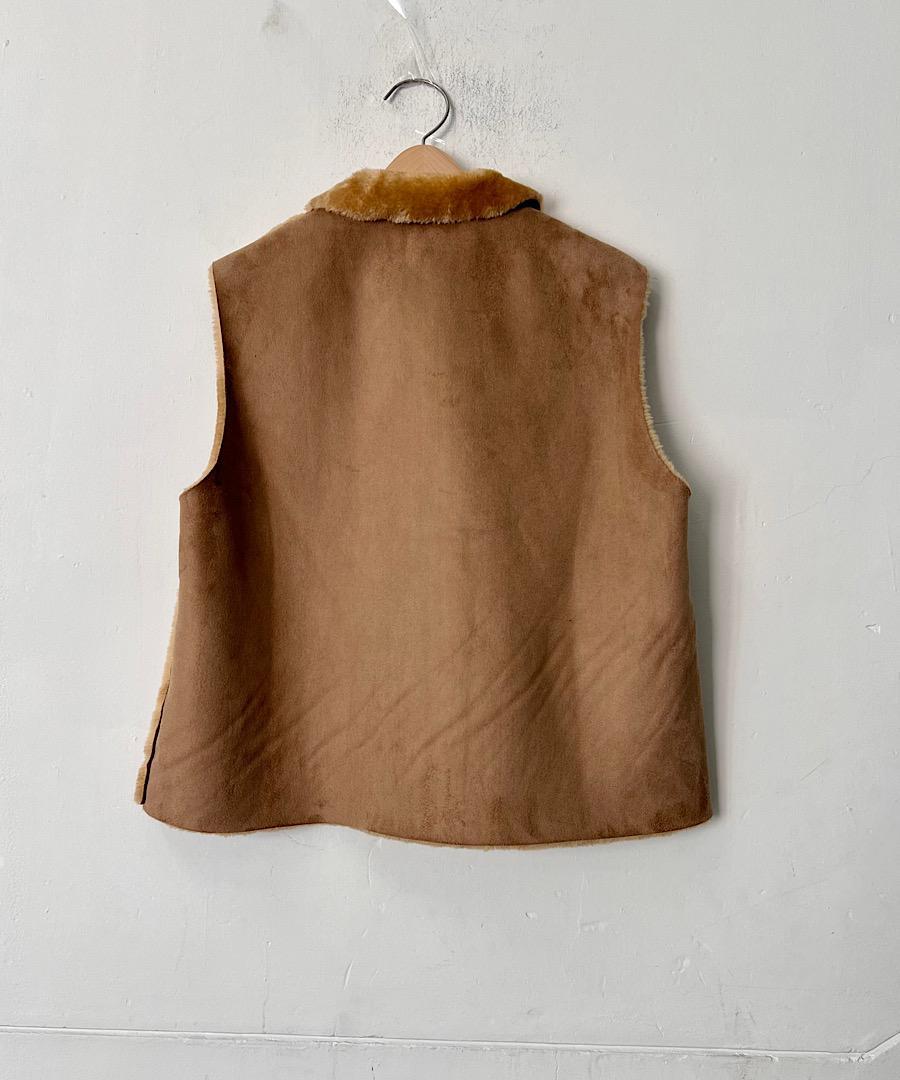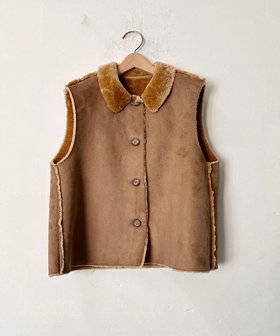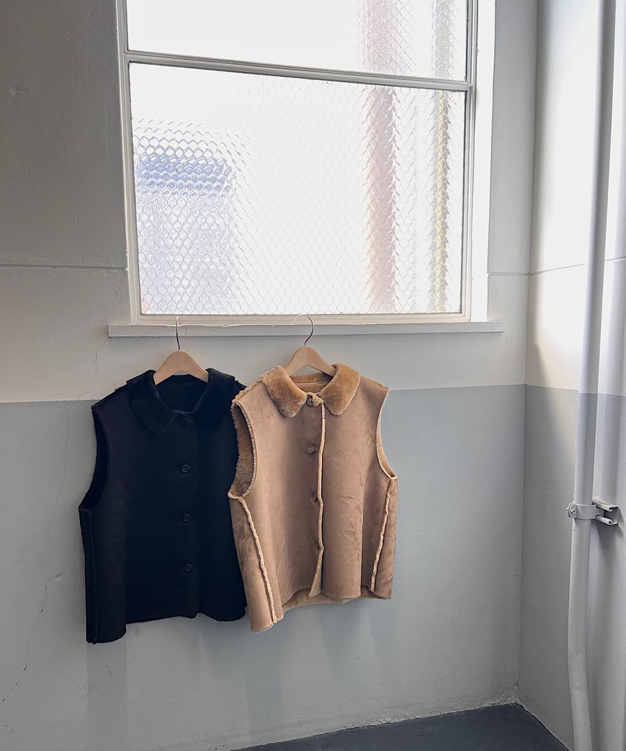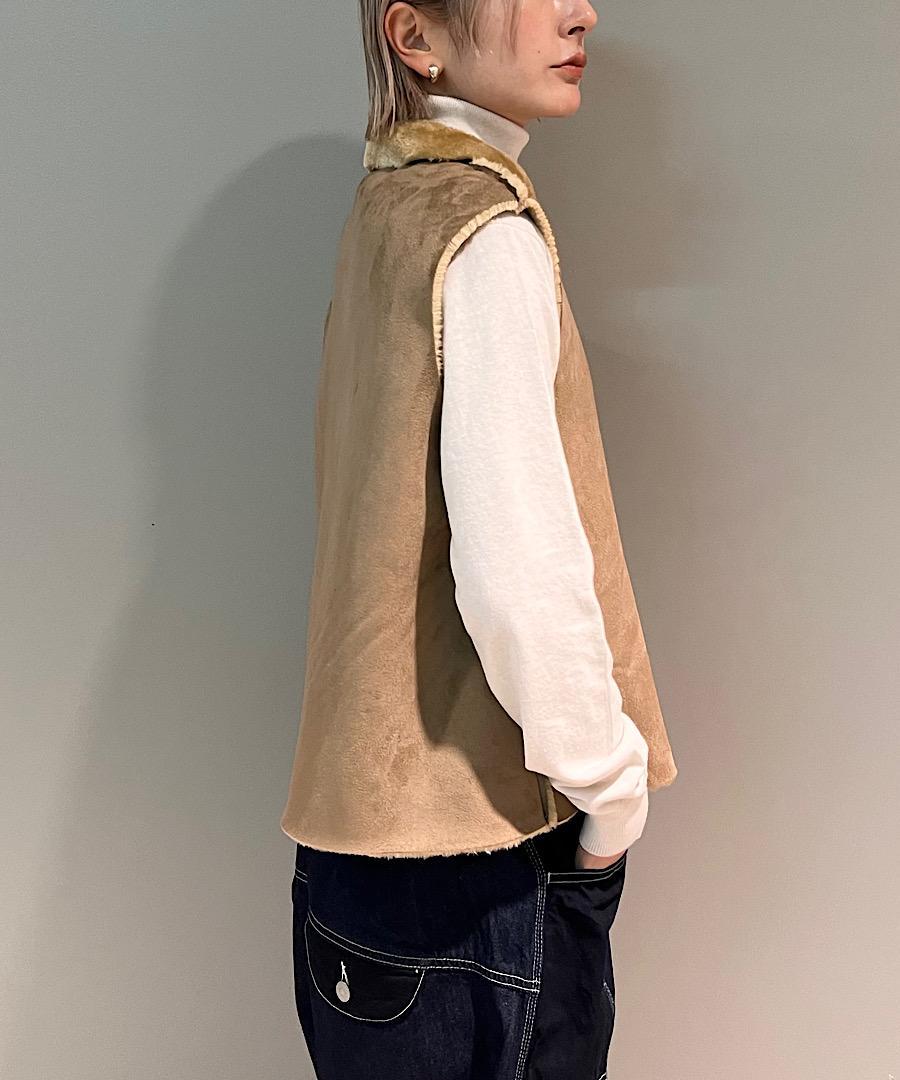 丸みのある襟がムートンを可愛くカジュアルなベストに。
