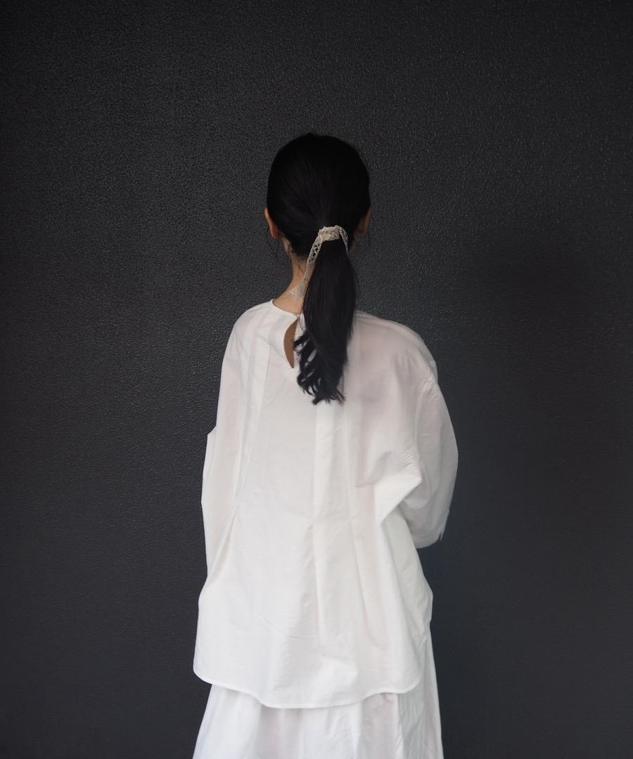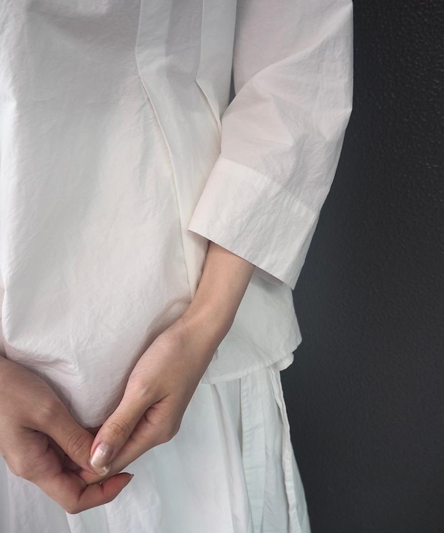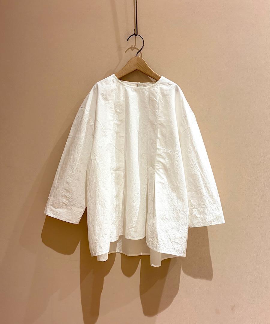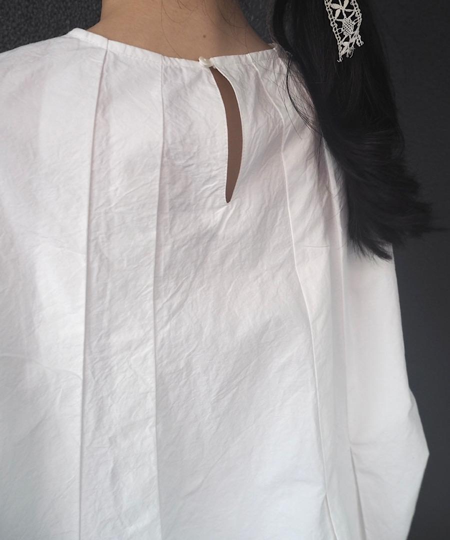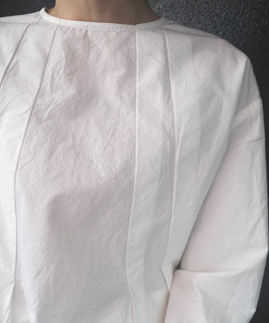 首元からタックを取ることで、美しいシルエットが演出されたブラウス。