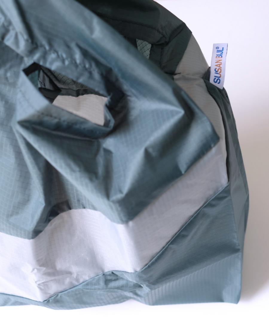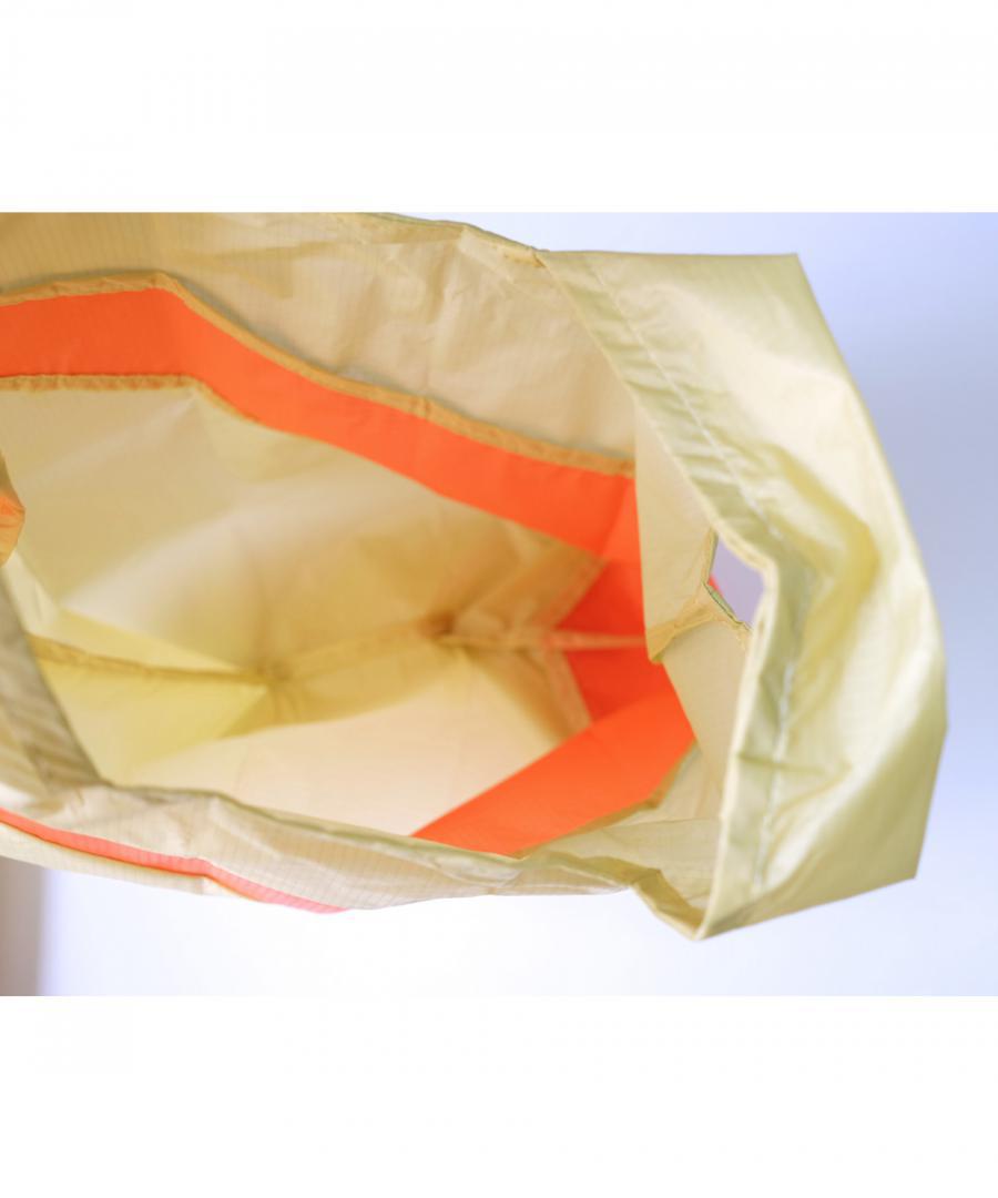 パラシュートの素材にも使われるほど丈夫で撥水性のある生地は、 世間一般のエコバッグよりちょっと厚みがあってしっかりしています。