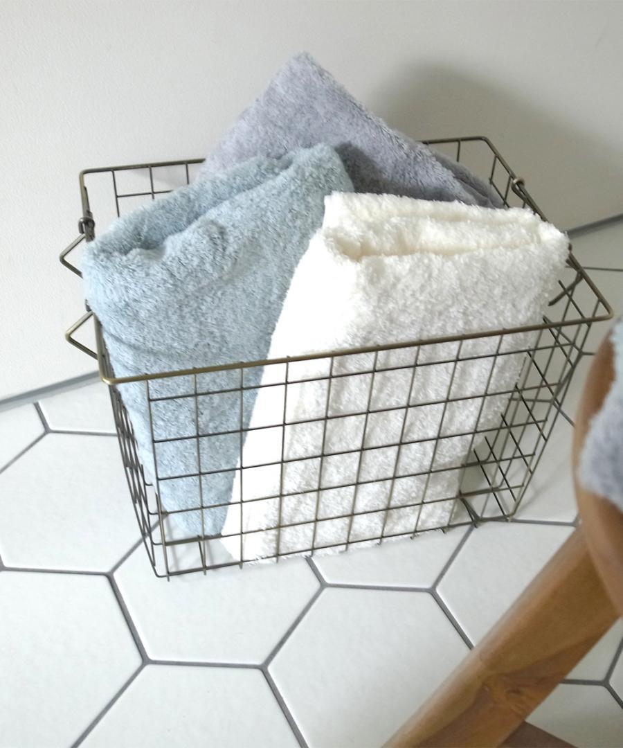 無撚糸のタオルは普通のタオルよりも毛羽が落ちやすいので、洗濯は毛羽が再付着しないよう、 市販の固定式屑取りネットをご使用ください。