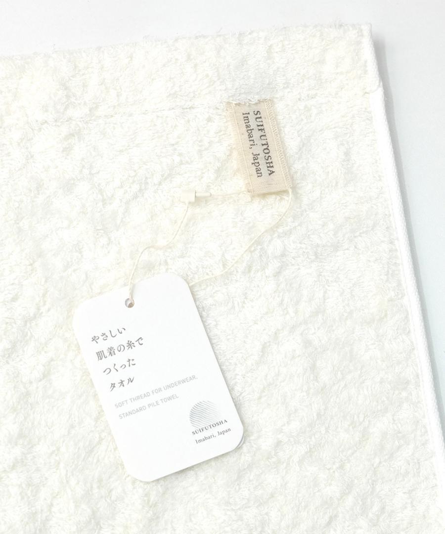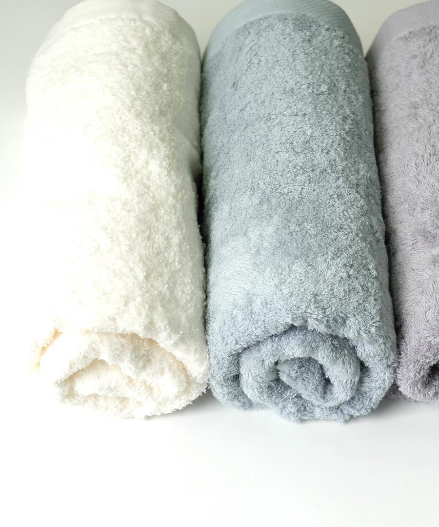 <高級肌着用に研究開発された、超長綿を主とした黄金比ブレンドの綿糸。 通気性・耐久性も考えられて紡がれた糸は日常使いのタオルにも最適。 その特別な糸をパイル100%使用したやさしい風合いのタオルです。>