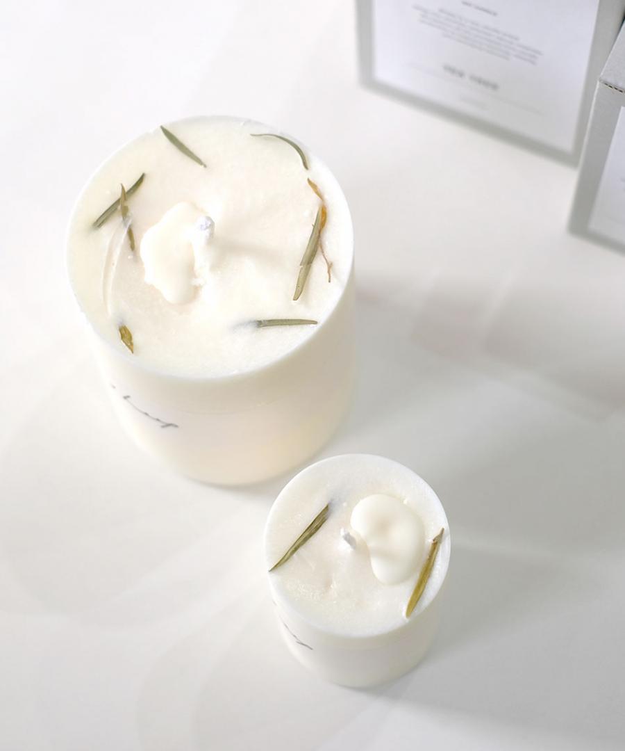 天然由来の大豆ワックスを使用し、レモング ラスとフランキンセンスの精油でほんのりと 香りをつけました。レモンのような爽やかな 香り。有機レモングラスのドライを使いアク セントにしました。
