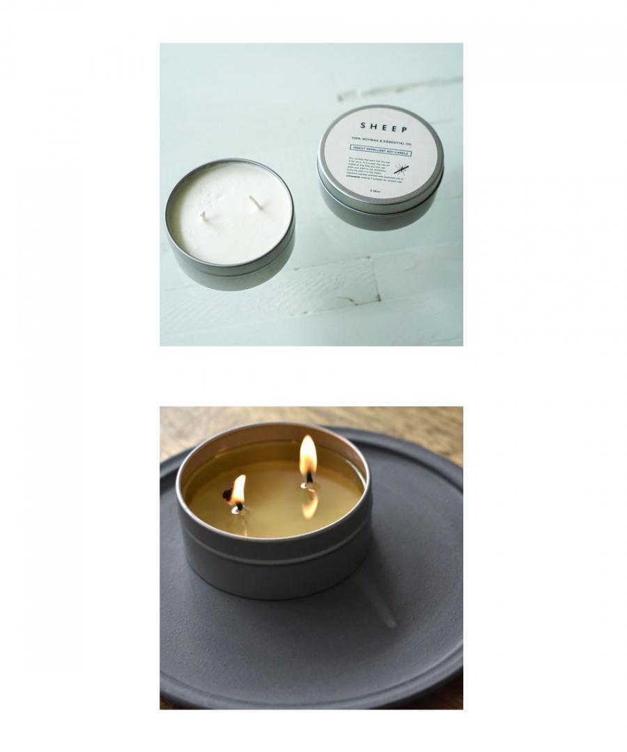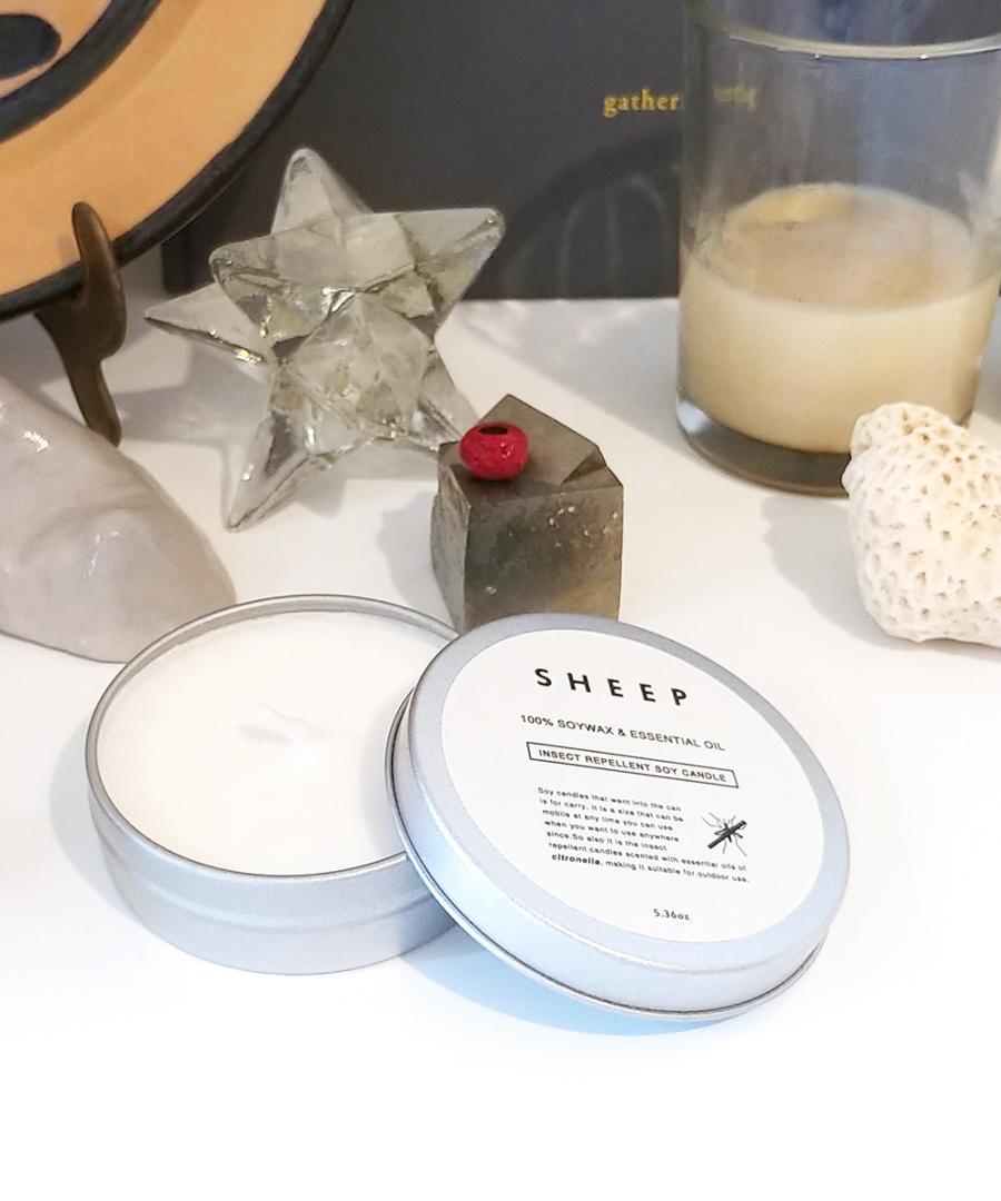 すっきりとしたデザインの缶に入った虫除けソイキャンドル。