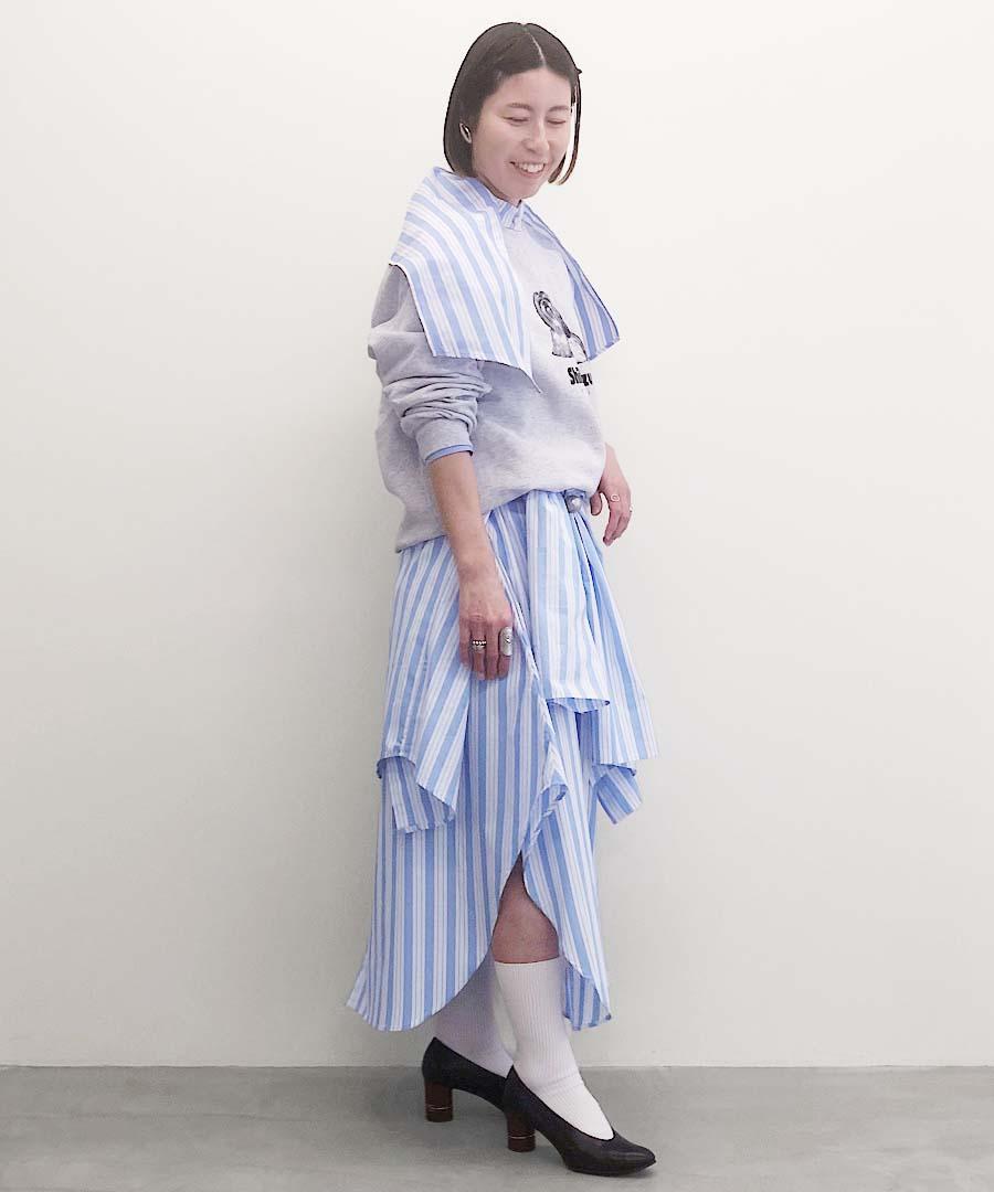 シャツのようなデザインがポイントのスカート。