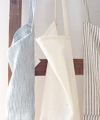 ほぼ100%雨水のみで自然に育てられた、コットンが原料になっていて短い繊維が特徴の綿花から生まれた生地は、少し「リネン混」の風合いも持ちながら肌あたりの良い布に仕上げられています。