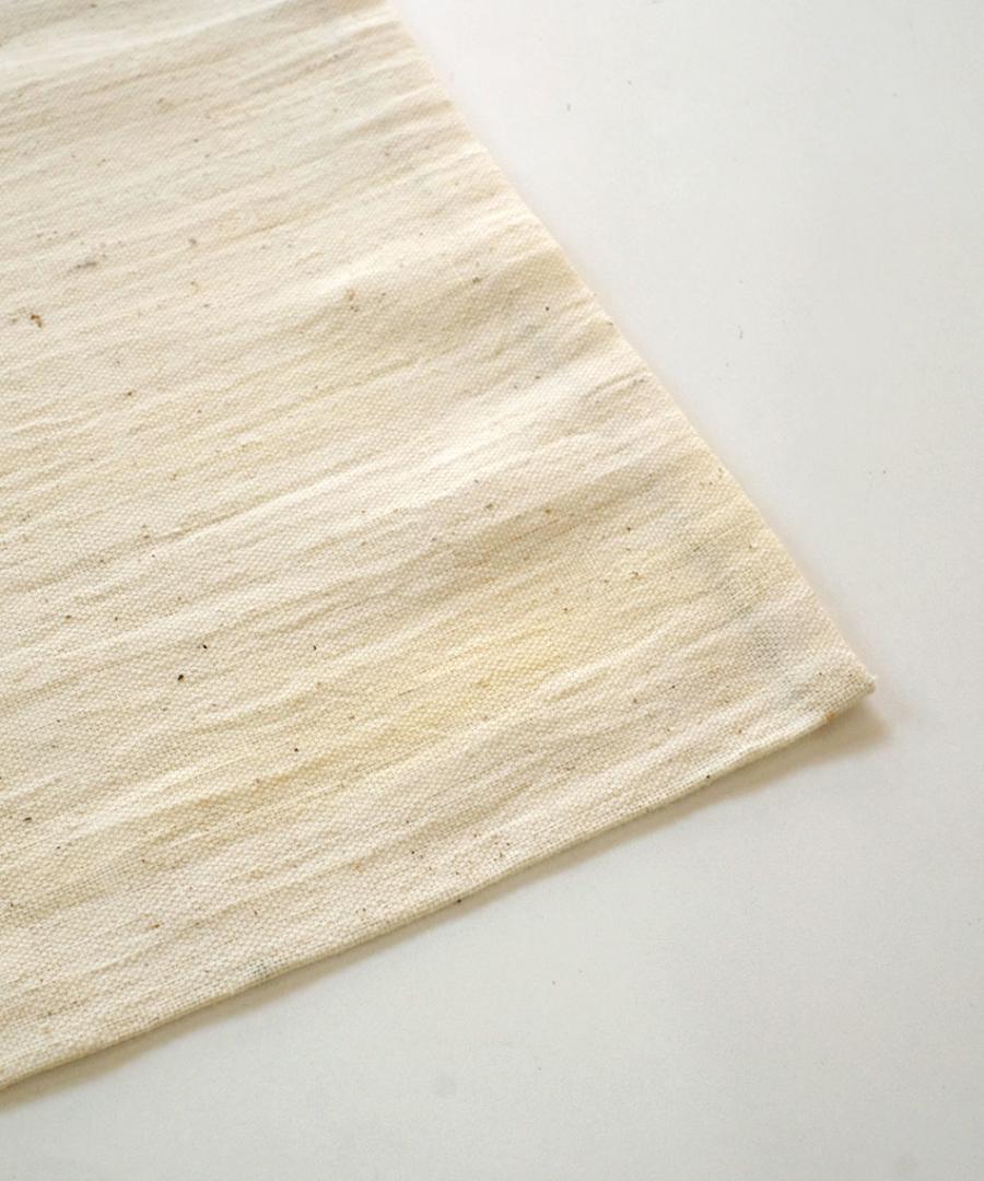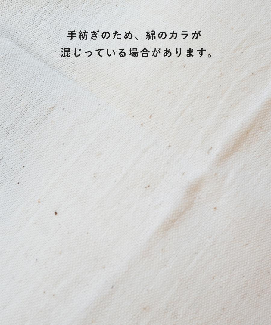 ※天然素材を、手紡ぎで仕上げた製品ですので、生成部分に綿の殻が混じっています。また、色ムラがある箇所も見られますが特性としてご理解ください。キナリが濃く見えるのは汚れではなく、糸の色ムラです。