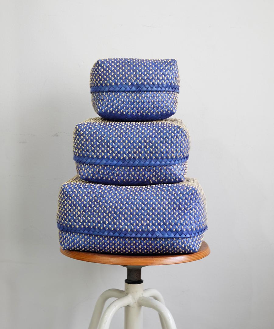 こちらのバスケットはsuno&morrisonさんがサイズや編み方・配色などを指定し、オリジナルのBasketを作ってもらったとのこと。 小さな三角のパターンがとても美しいです。 蓋付きなので実用性も◎。 大切な方への贈り物を入れて、そのままお渡しするのもいいなあと思います。