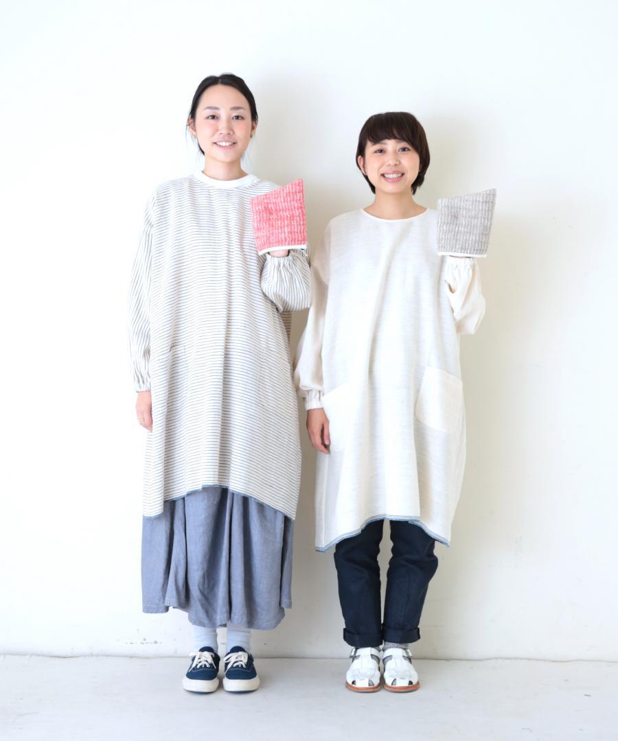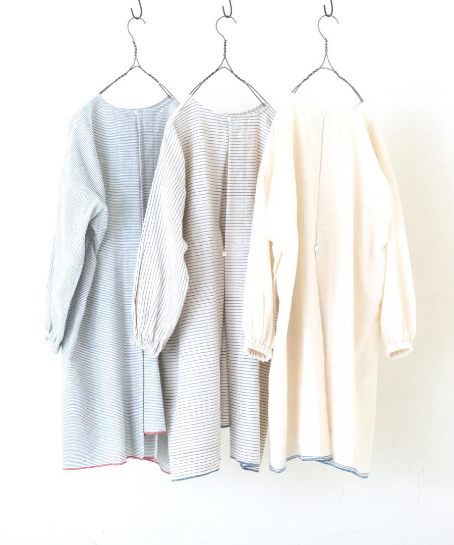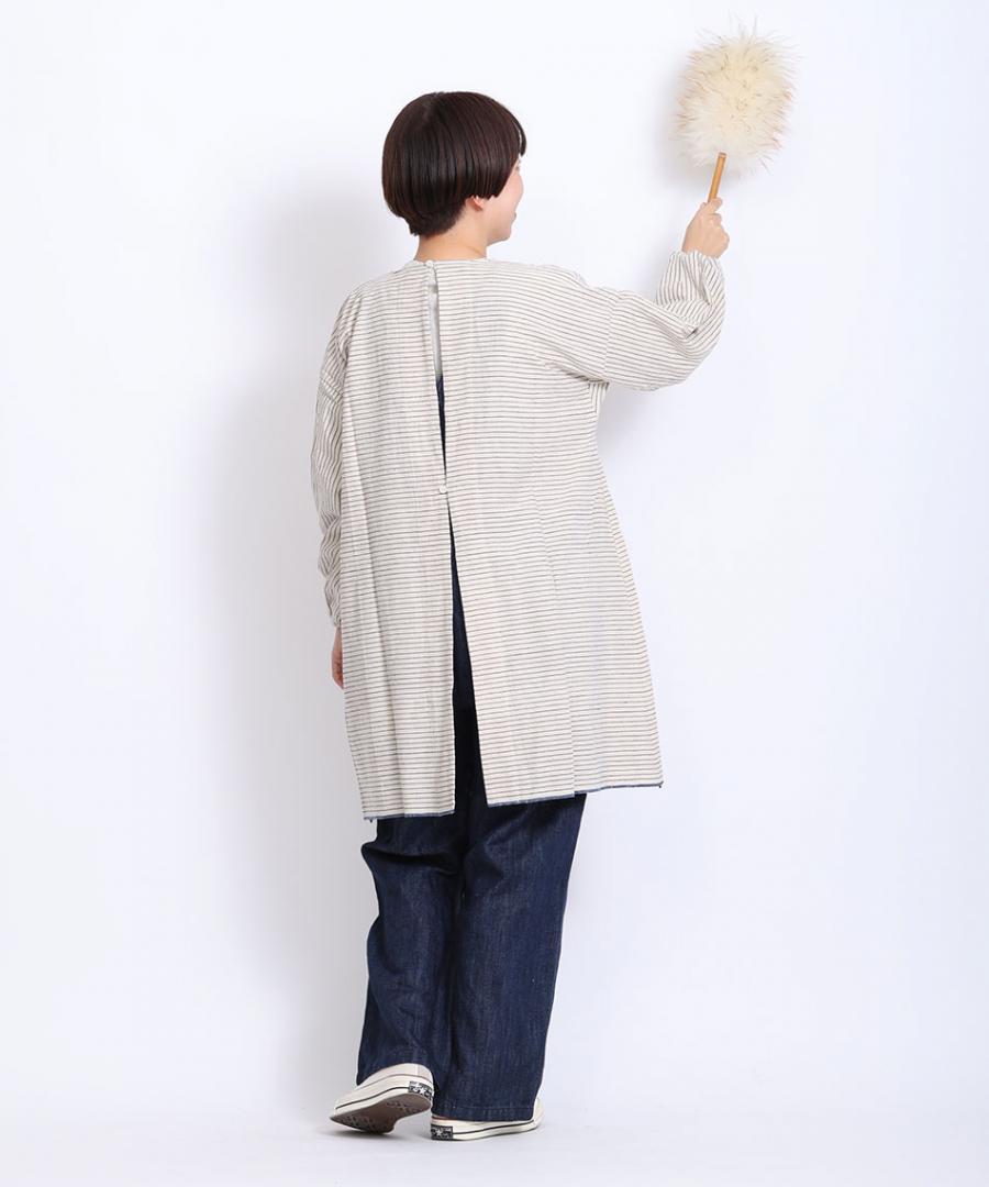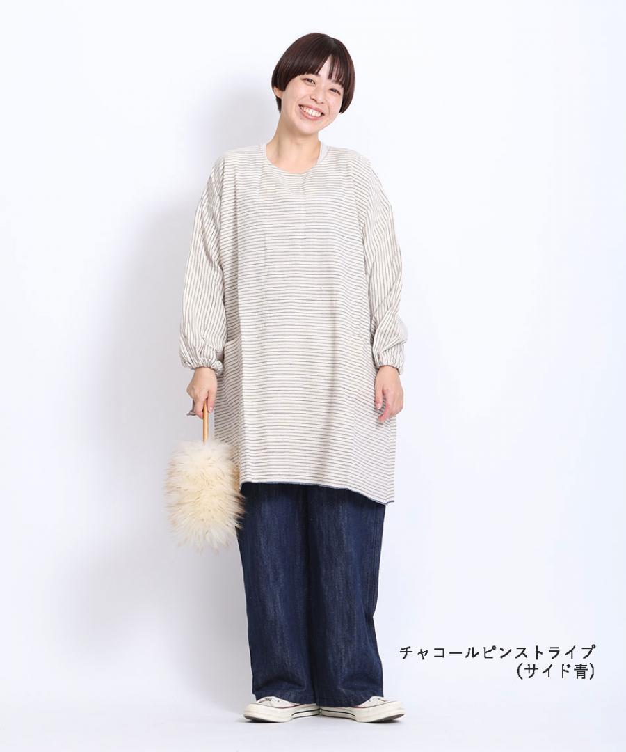 ポケット付きで、手首まわりはゴム入り、着脱のしやすさも含めお仕事着や部屋着にもいいなと思います。