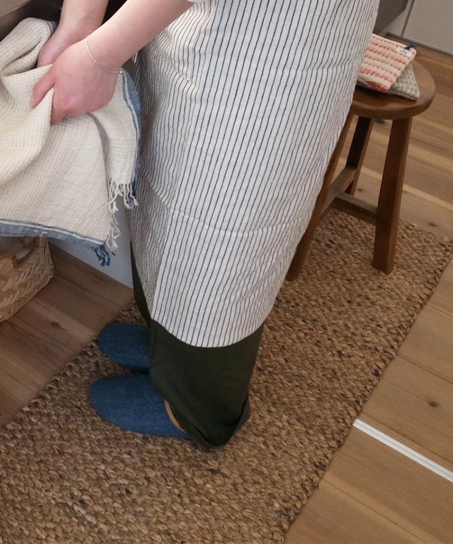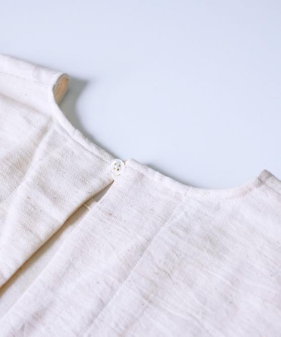 ※天然素材を、手紡ぎで仕上げた製品ですので、生成部分に綿の殻が混じっています。また、色ムラがある箇所も見られますが特性としてご理解ください。キナリが濃く見えるのは汚れではなく、糸の色ムラです。