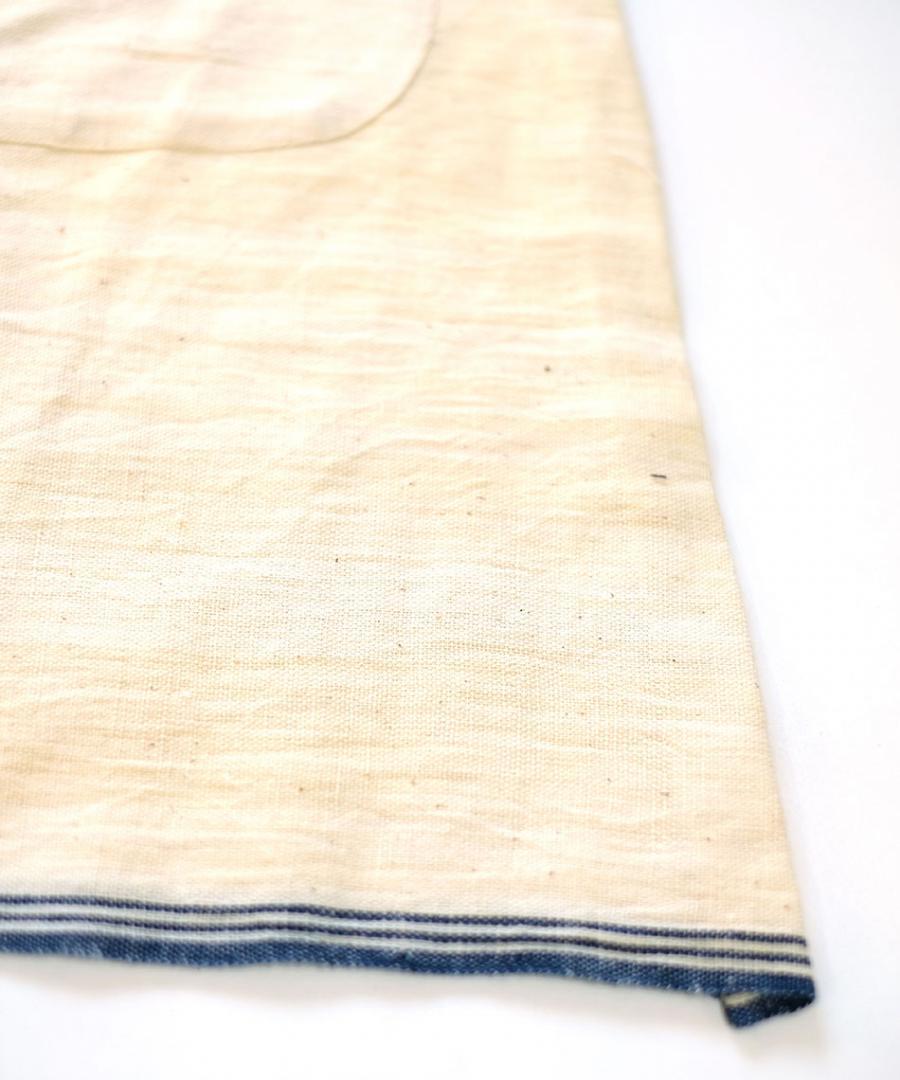裾に使用した生地の耳など細部にこだわった、カバーオールエプロン=割烹着。
