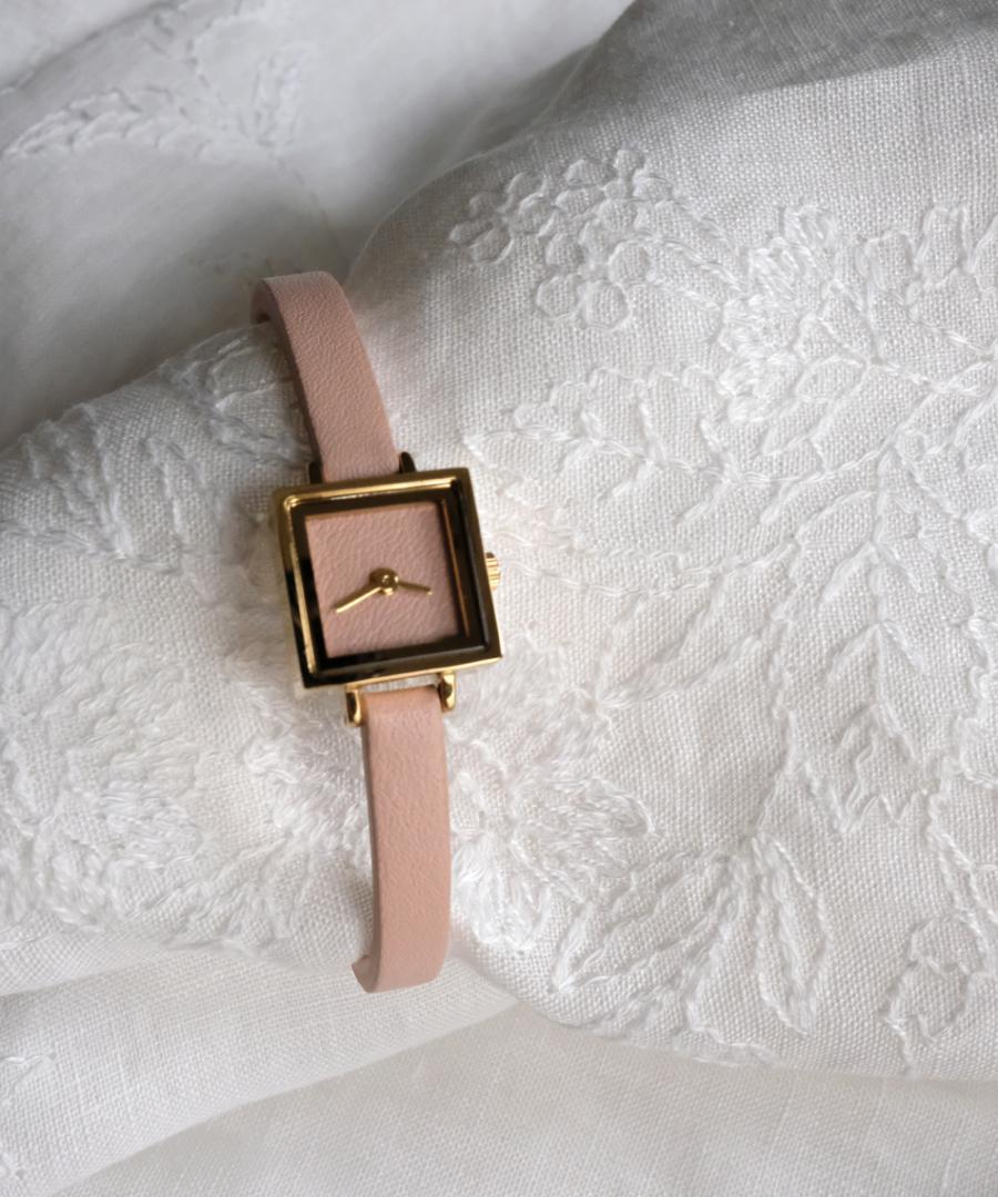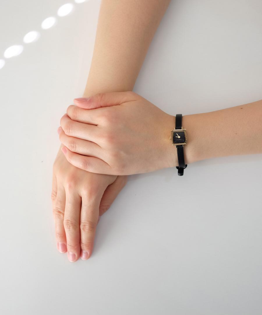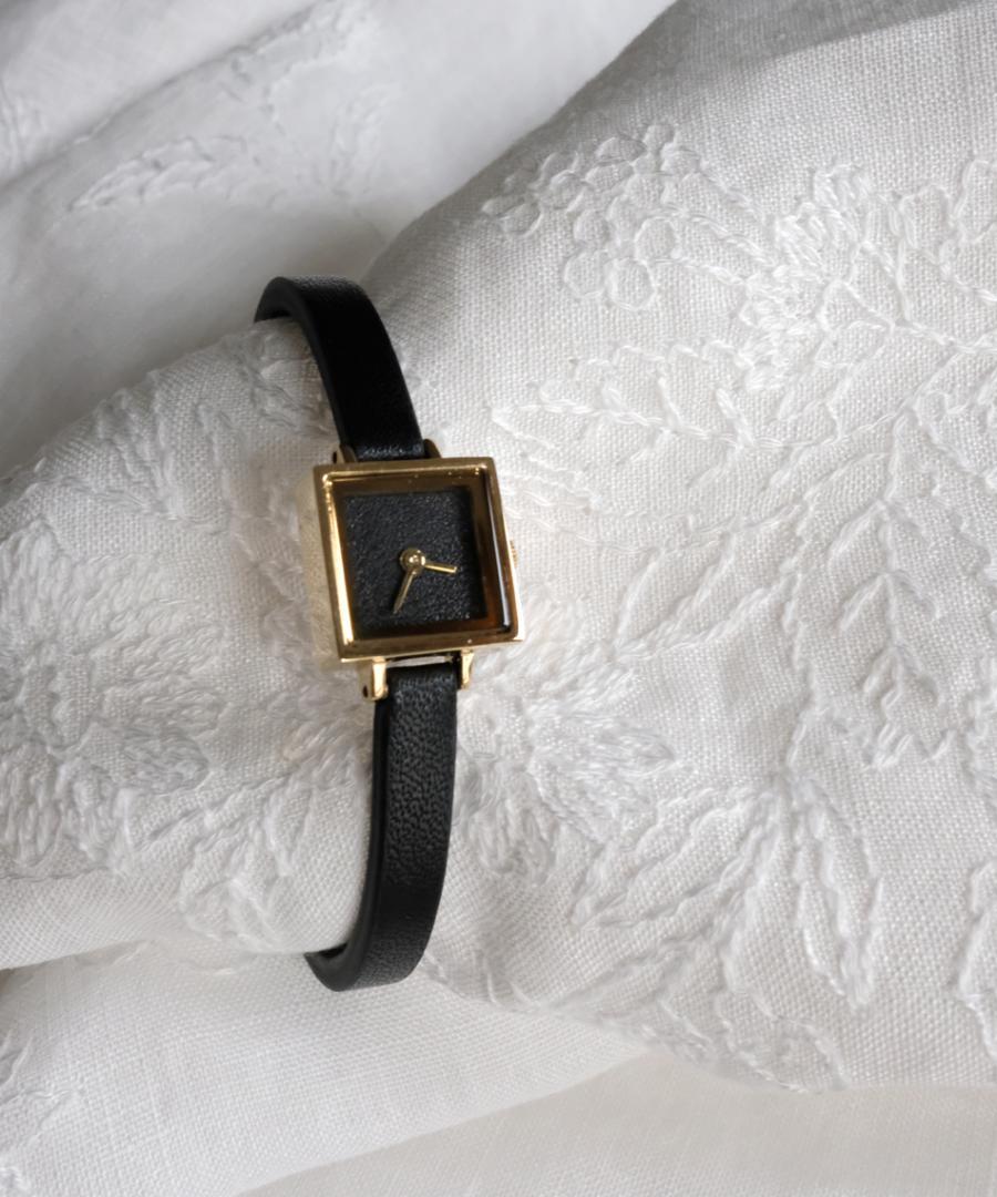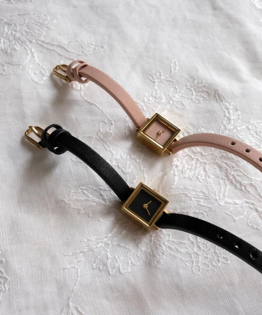 細めのレザーベルトと小さなスクウェアのフェイスが女性らしく華奢で上品な印象です。
