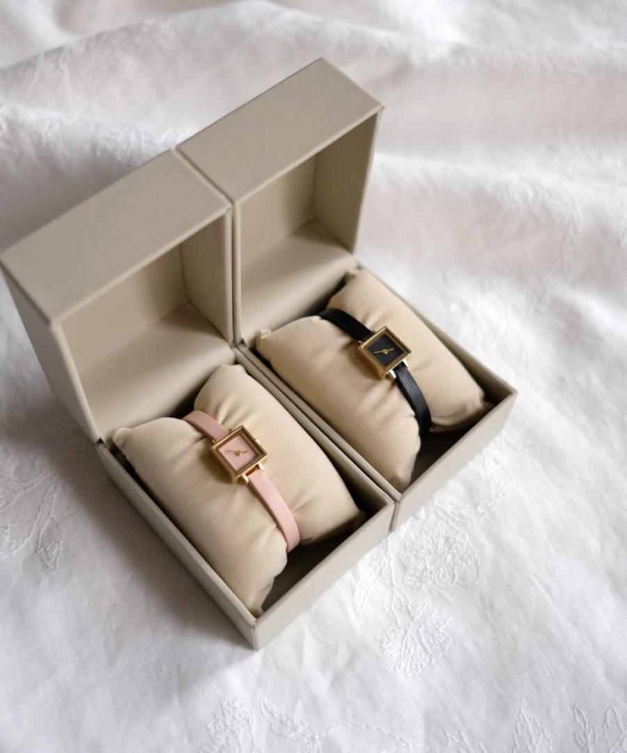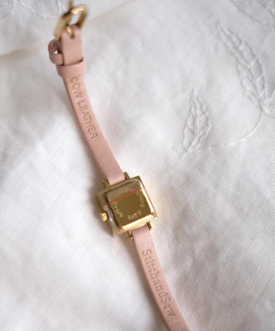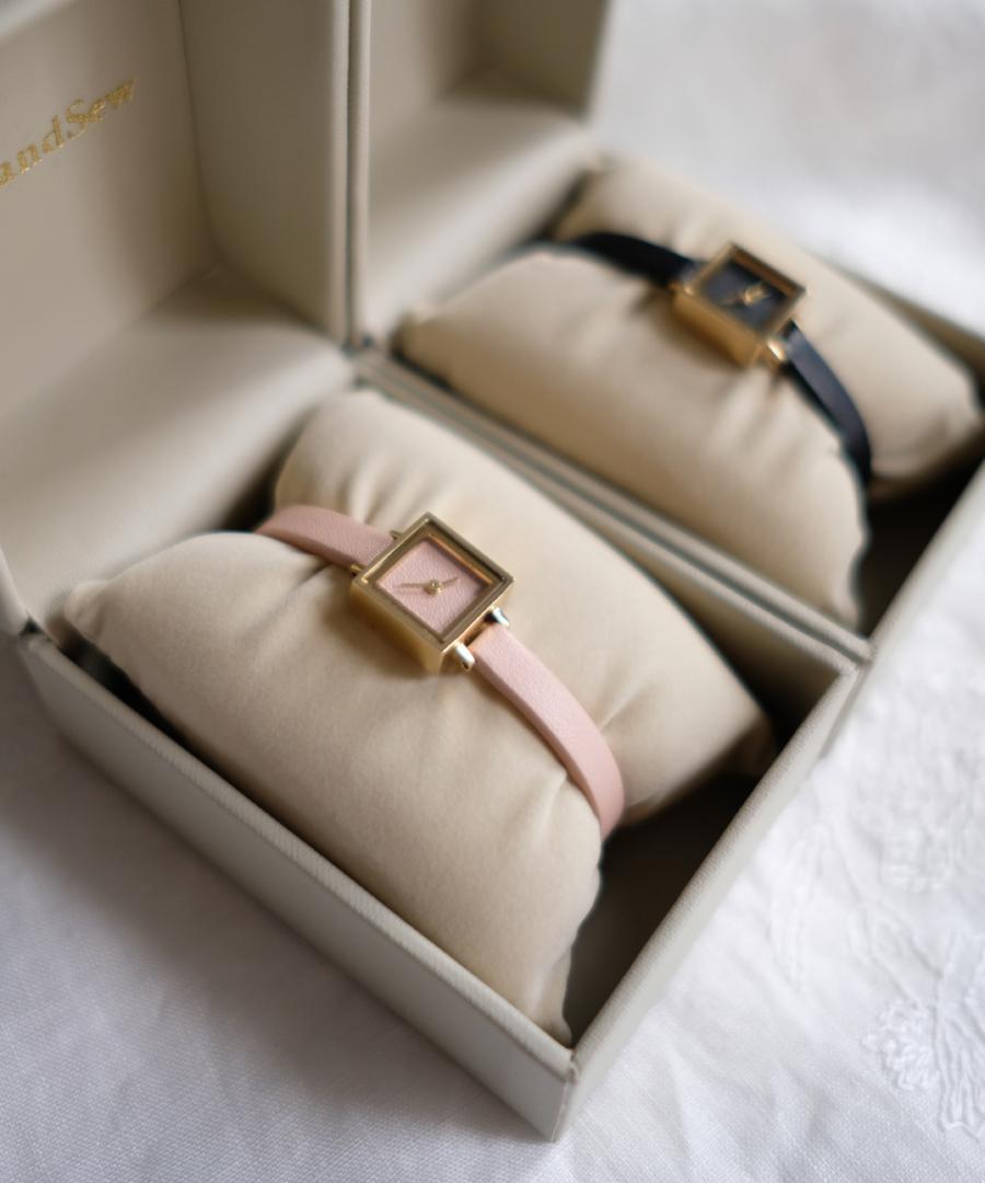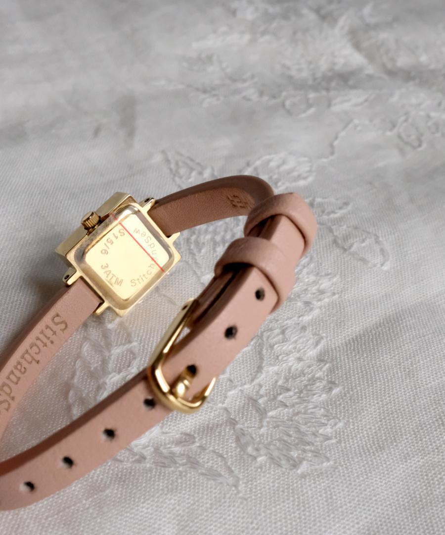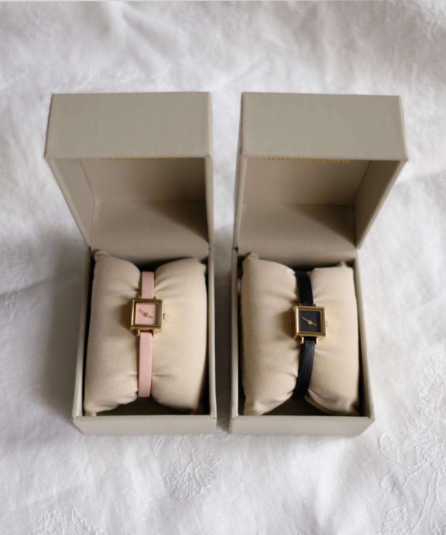 細めのレザーベルトと小さなスクウェアのフェイスが女性らしく華奢で上品な印象です。