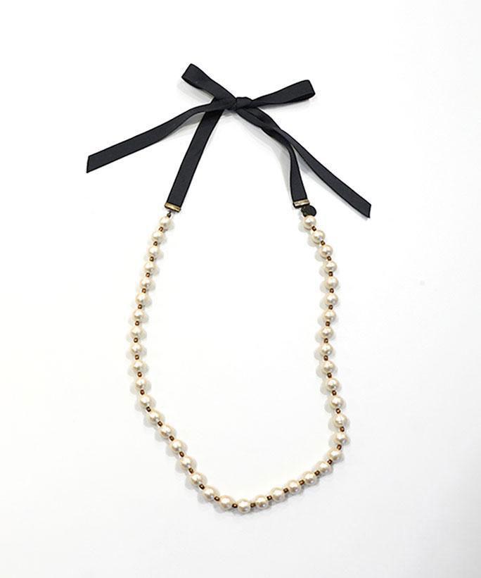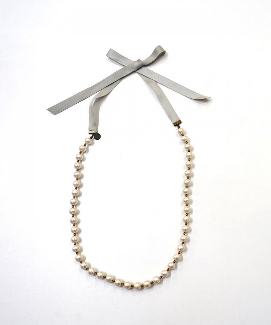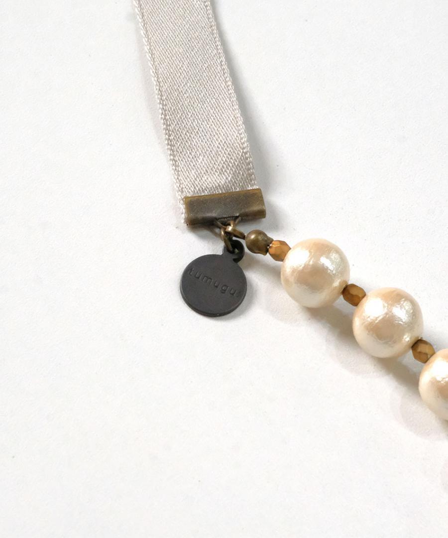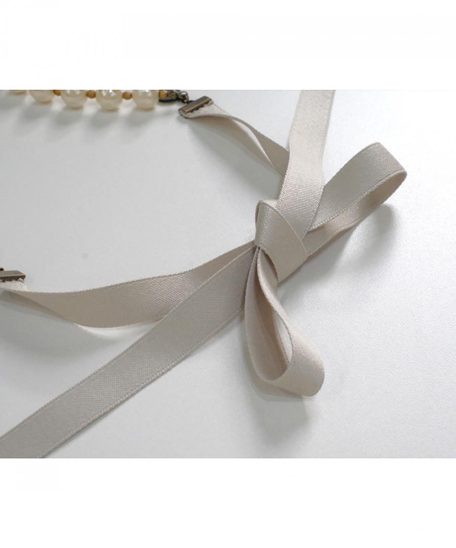 上品でマットな艶感のコットンパールにサテンリボンを組み合わせていて、