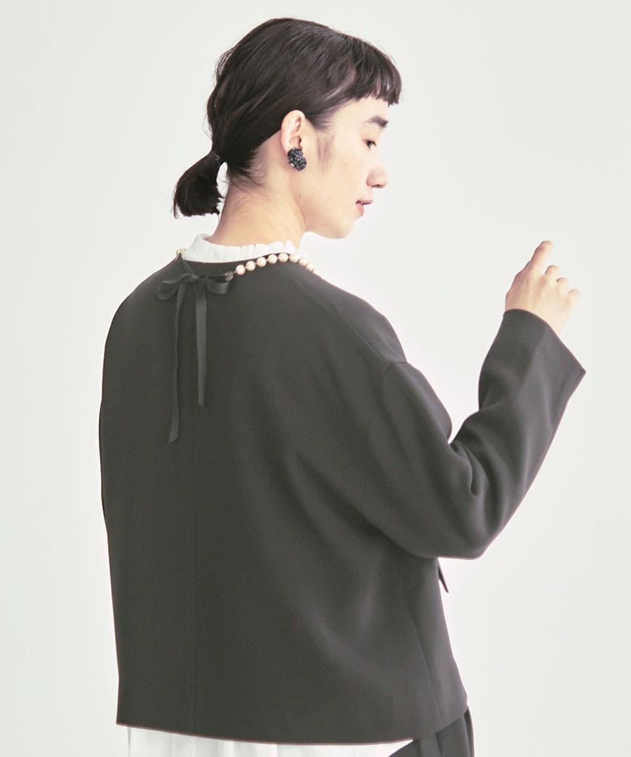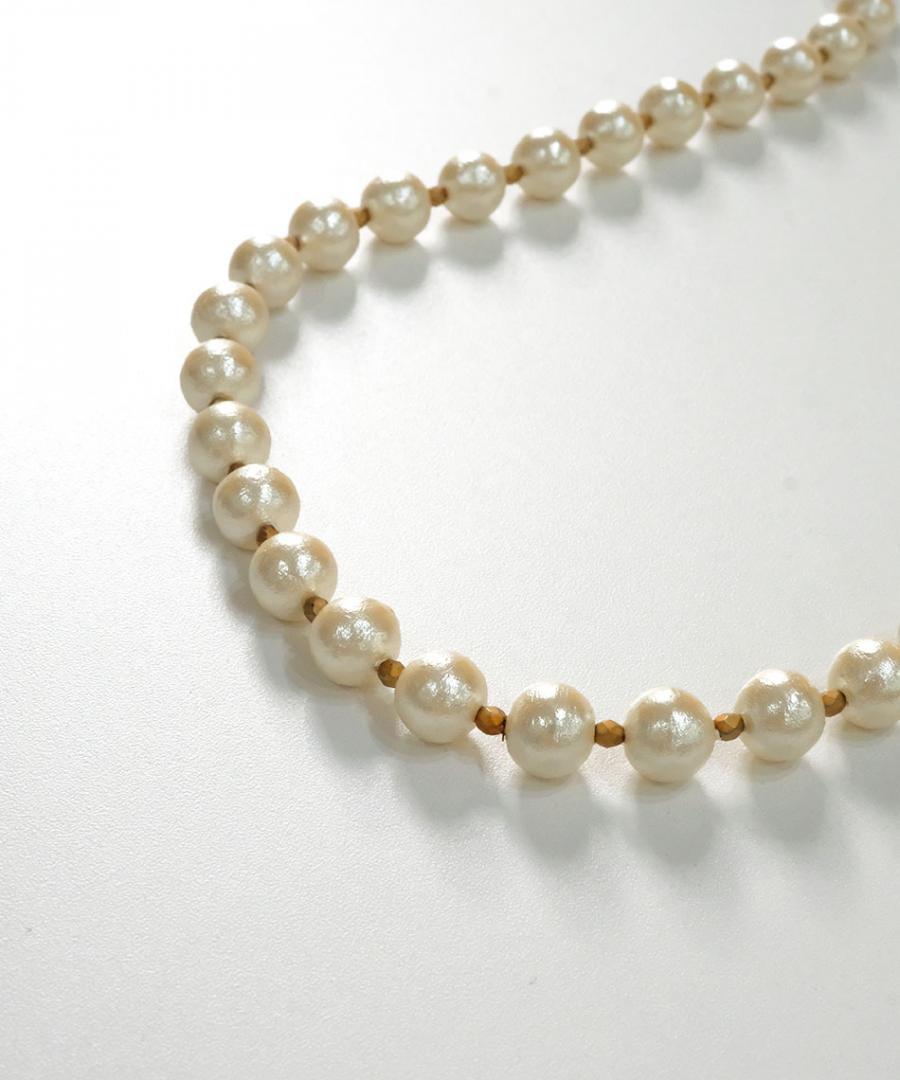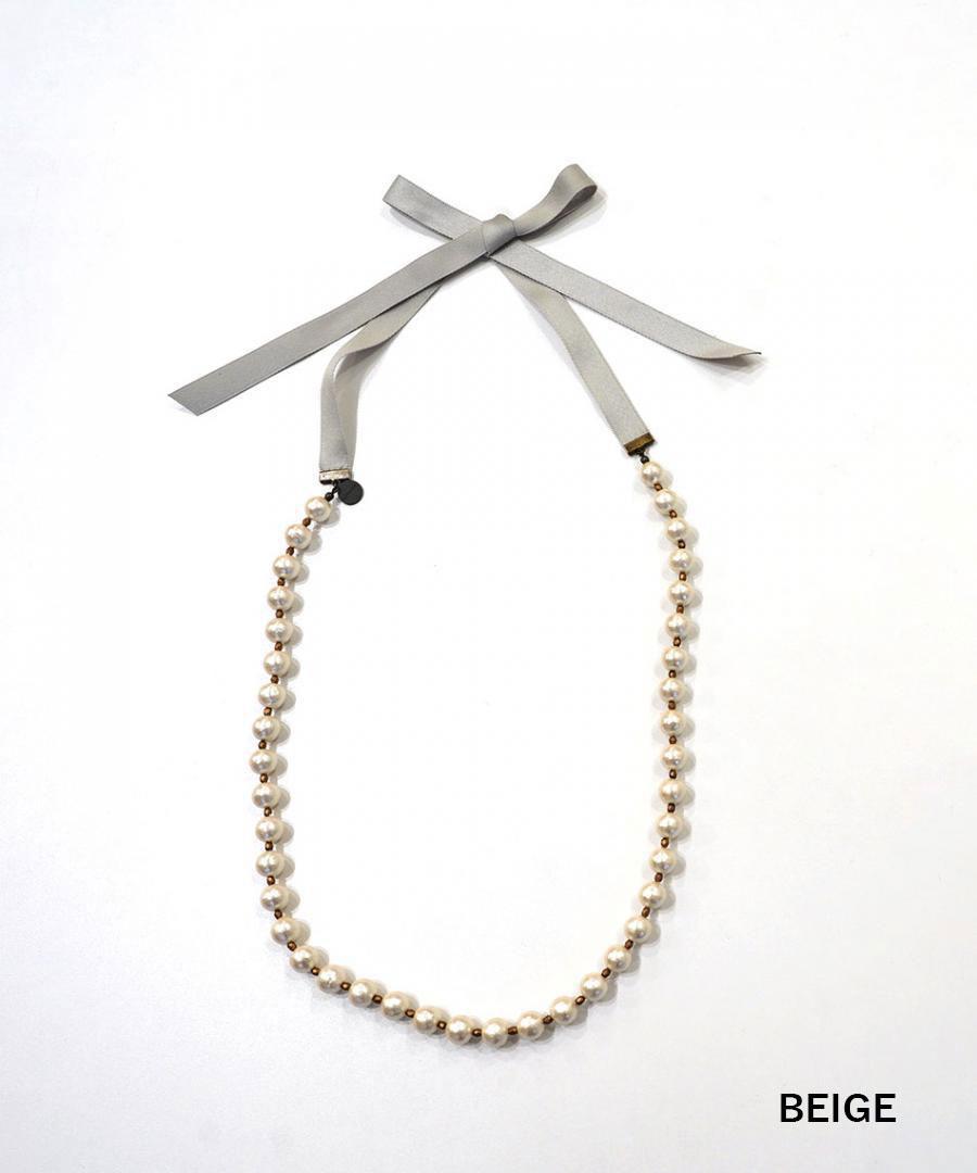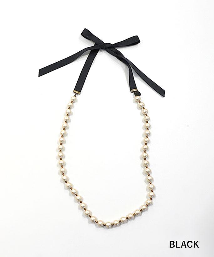 上品でマットな艶感のコットンパールにサテンリボンを組み合わせていて、
