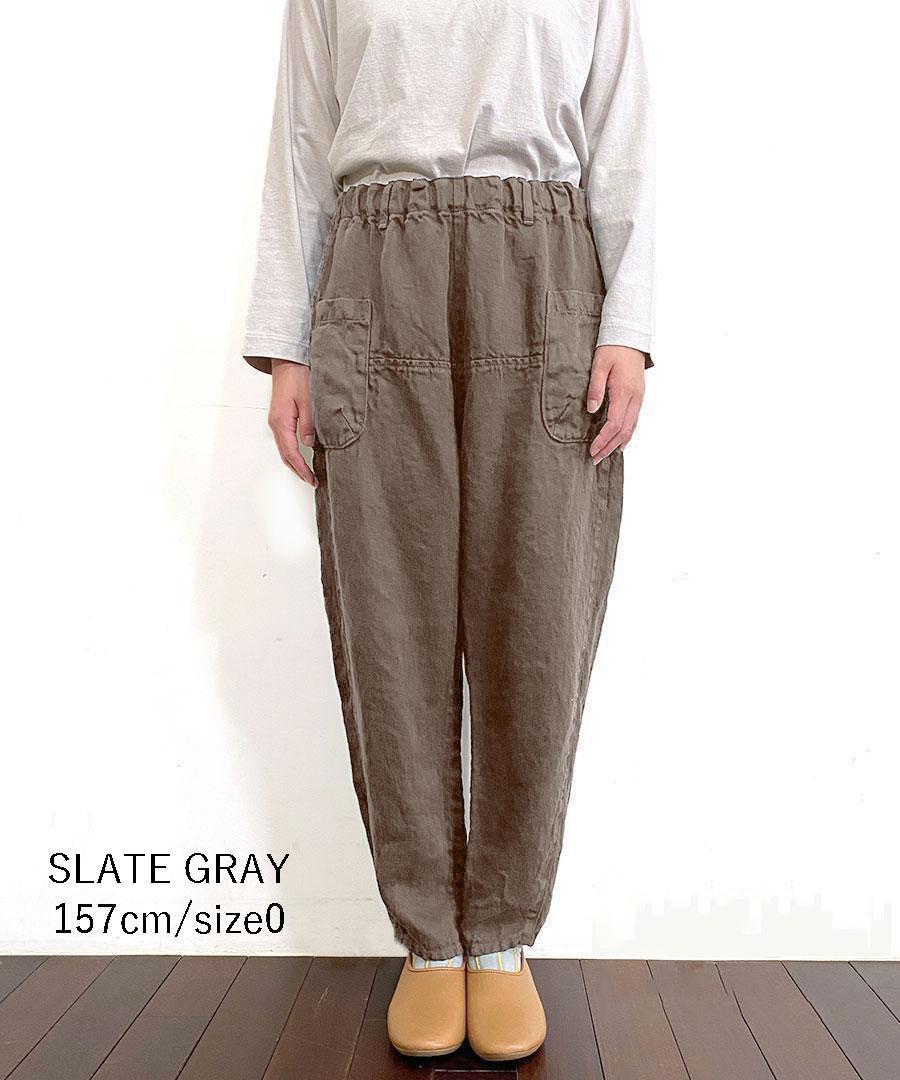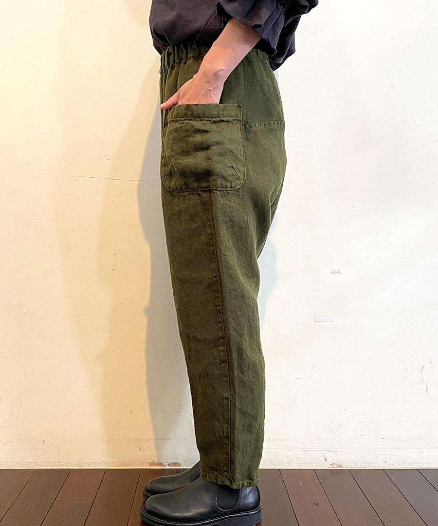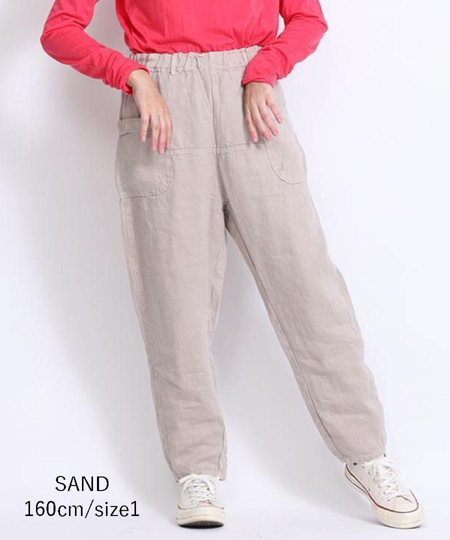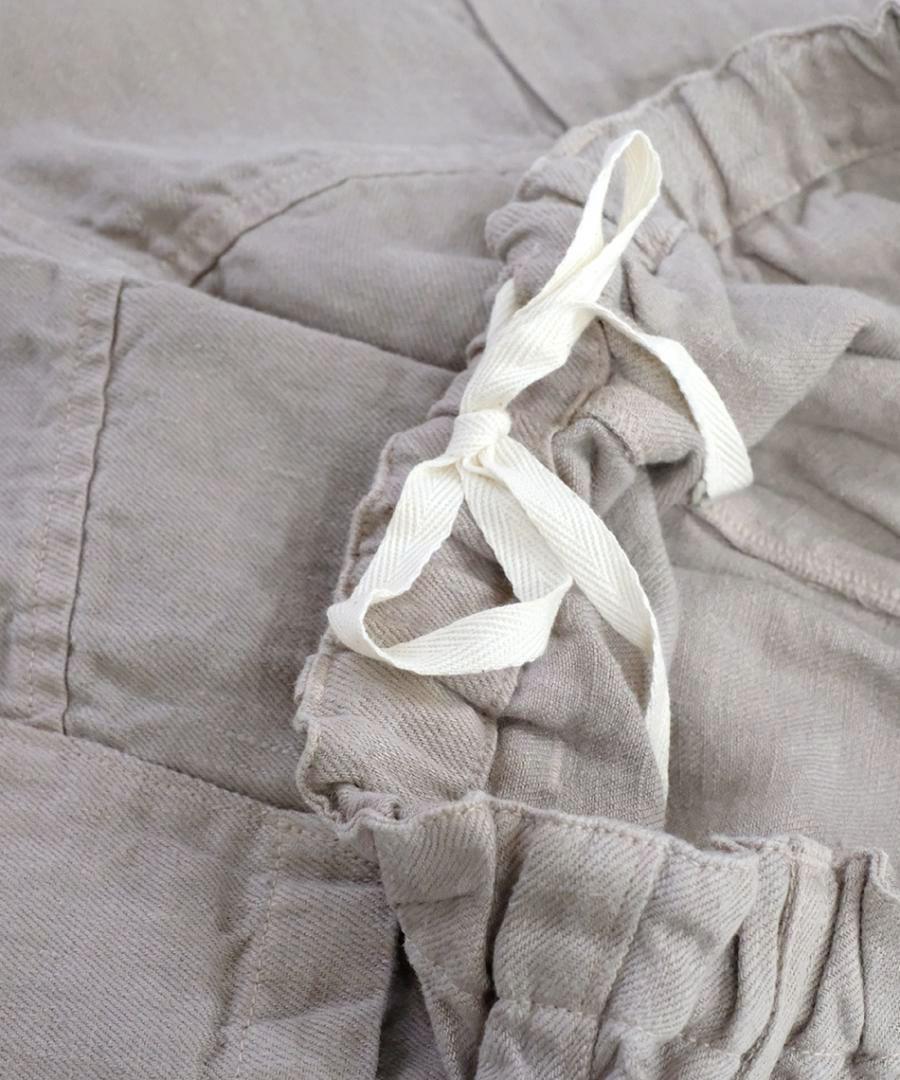 tumuguで人気のオリジナル生地『ソリトリネン』を使用したイージーパンツ。
