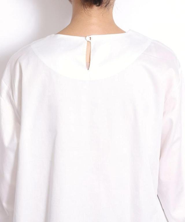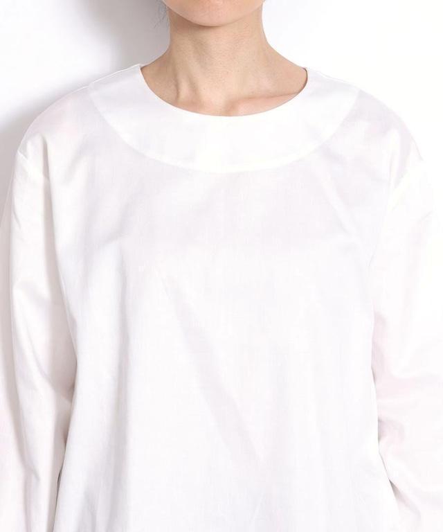シンプルなノーカラーで首元がスッキリ見える、程よい開きぐりがポイントです。