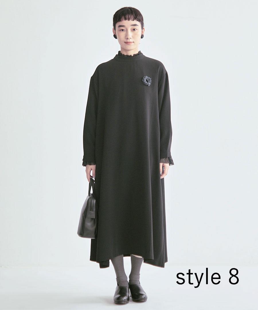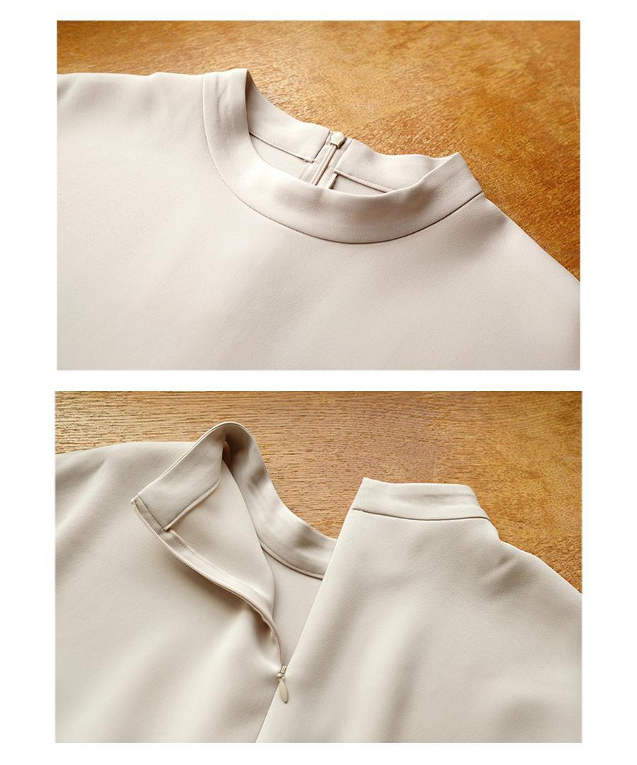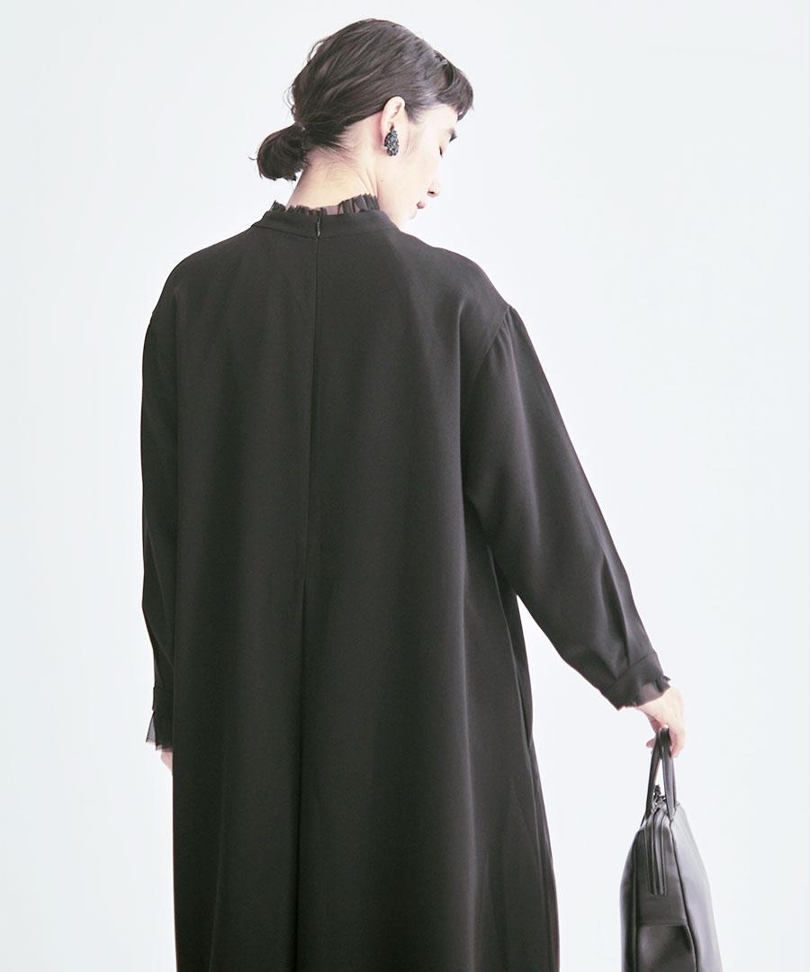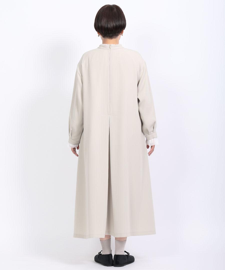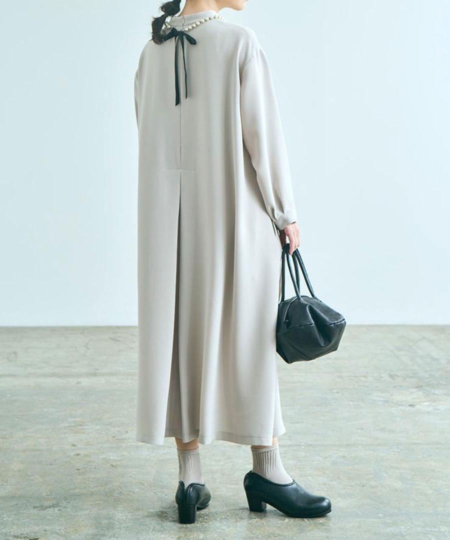 少し立ち上がった衿元やバックスタイルにタックを入れるなど、tumugu:らしいディテールを加えています。