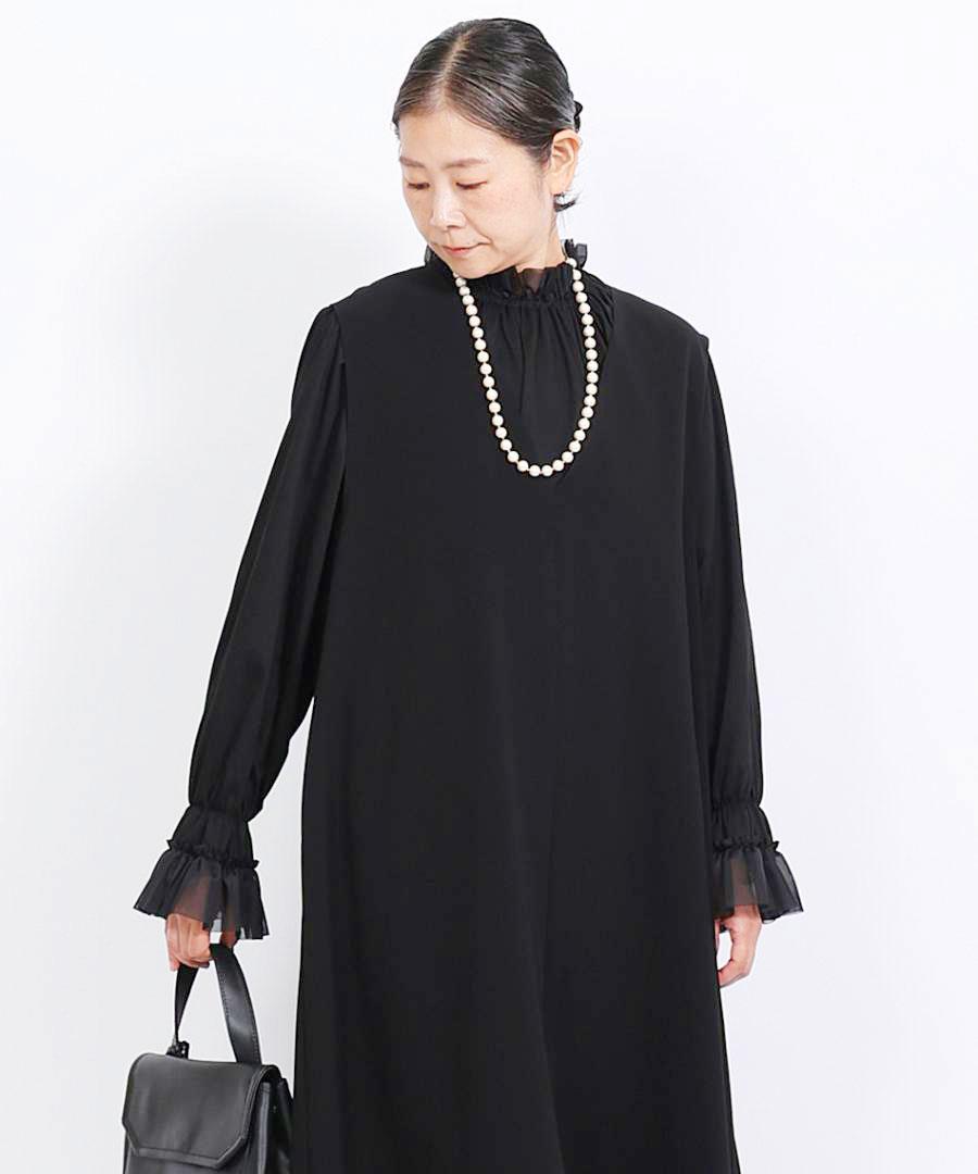 少し長めの丈感は大人の女性が安心して着られる落ち着いた印象です。