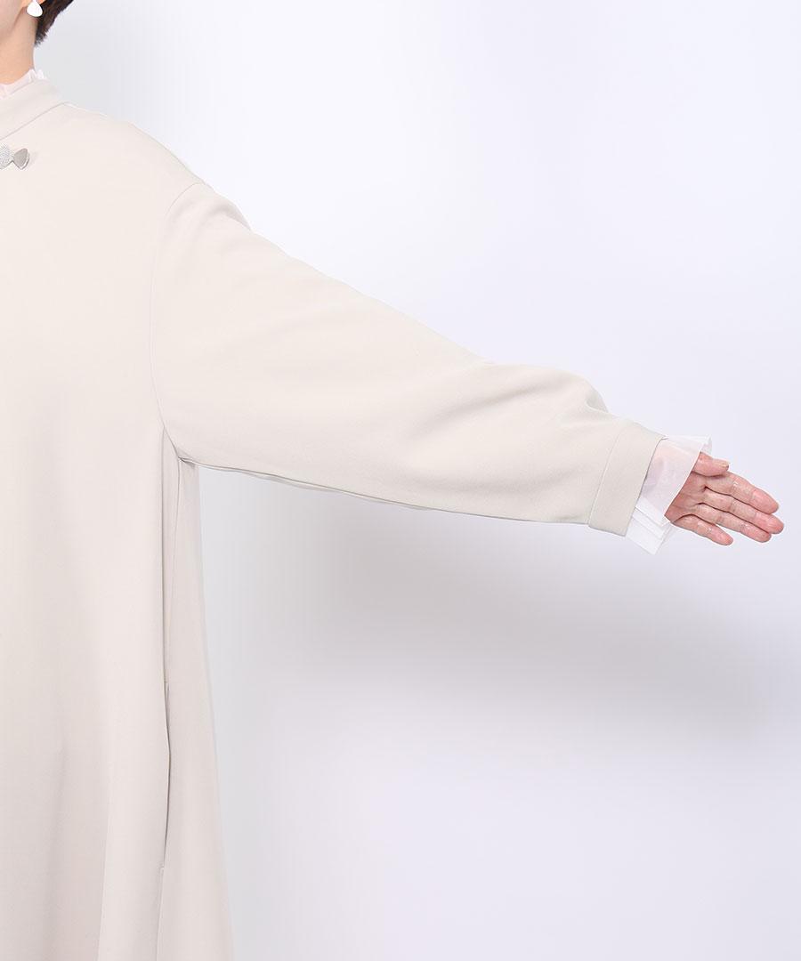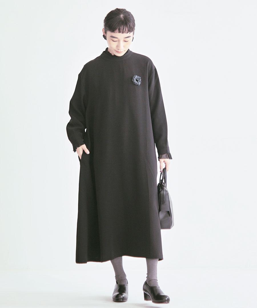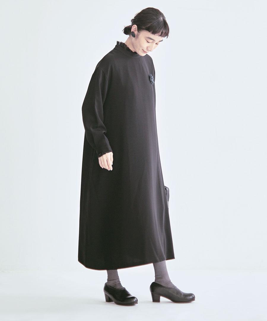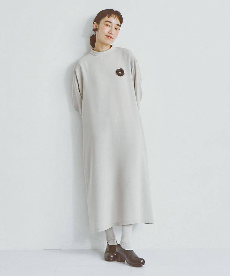 トリアセテート特有のドレープ感にパウダリー感とふくらみを兼ね備えた、上品な質感のワンピース。
