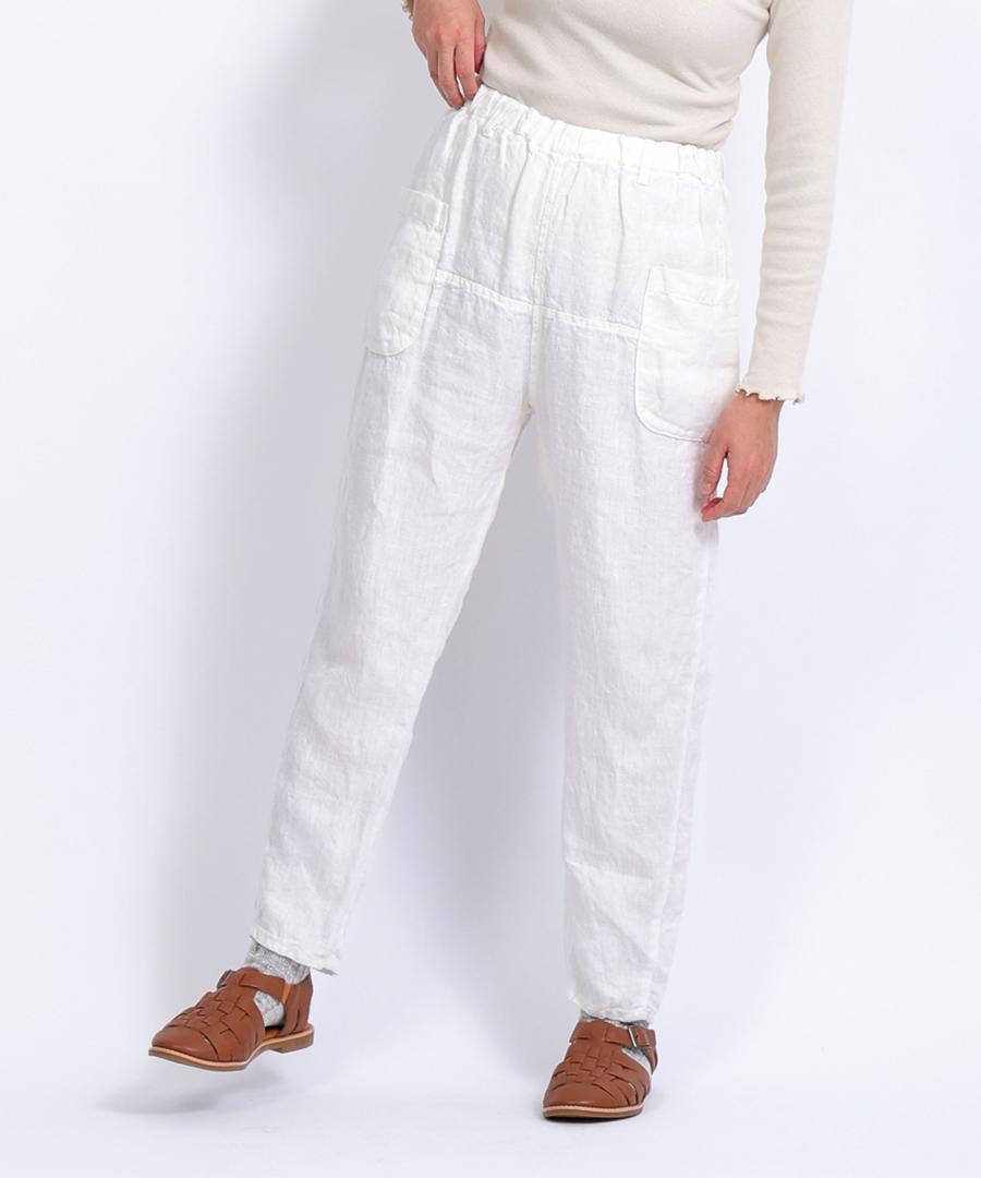 tumugu:オリジナルの人気生地【ソリトリネン①※下記参照】を使用したイージーパンツ。