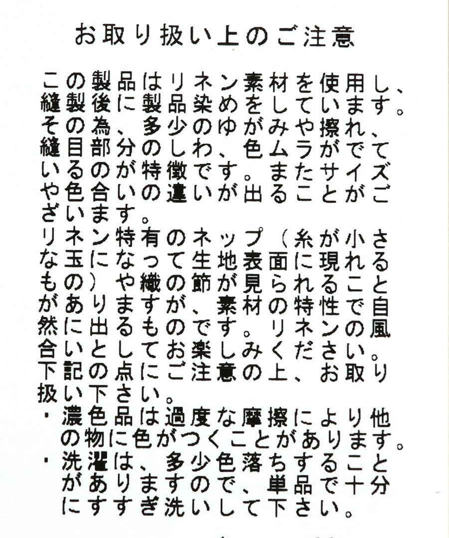 ◆こちらの製品はリネン素材を使用しております。 その為リネン特有のネップ(小さな玉のようなもの)や織の節が見られることがあります。 これはリネン素材の持つ特性で自然に出るものです。 リネンならではの風合いとしてお楽しみください。