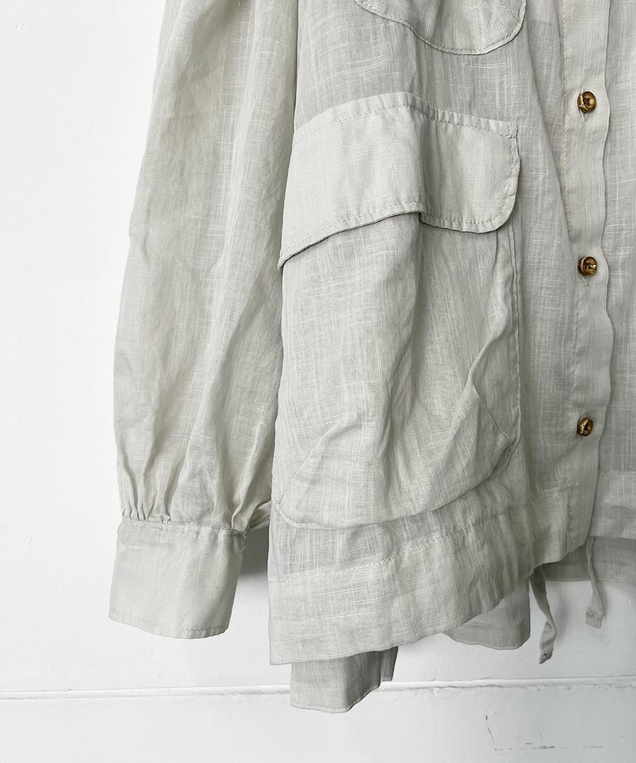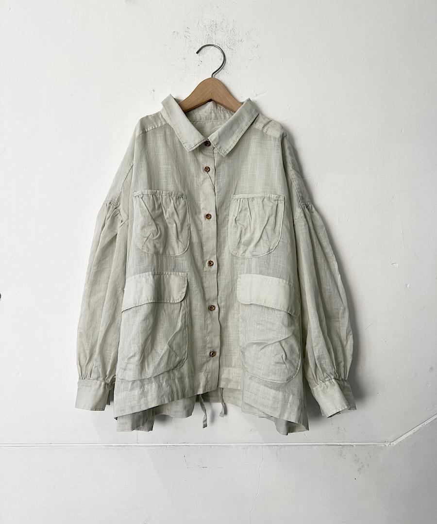 スラブ糸を使用しているざっくりとした薄手ローン素材で作られたシャツジャケットです。