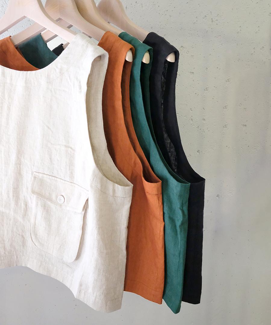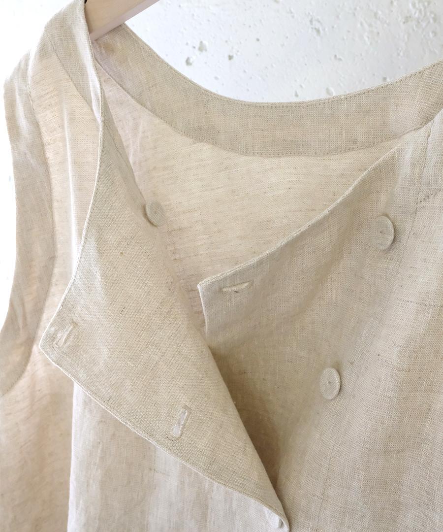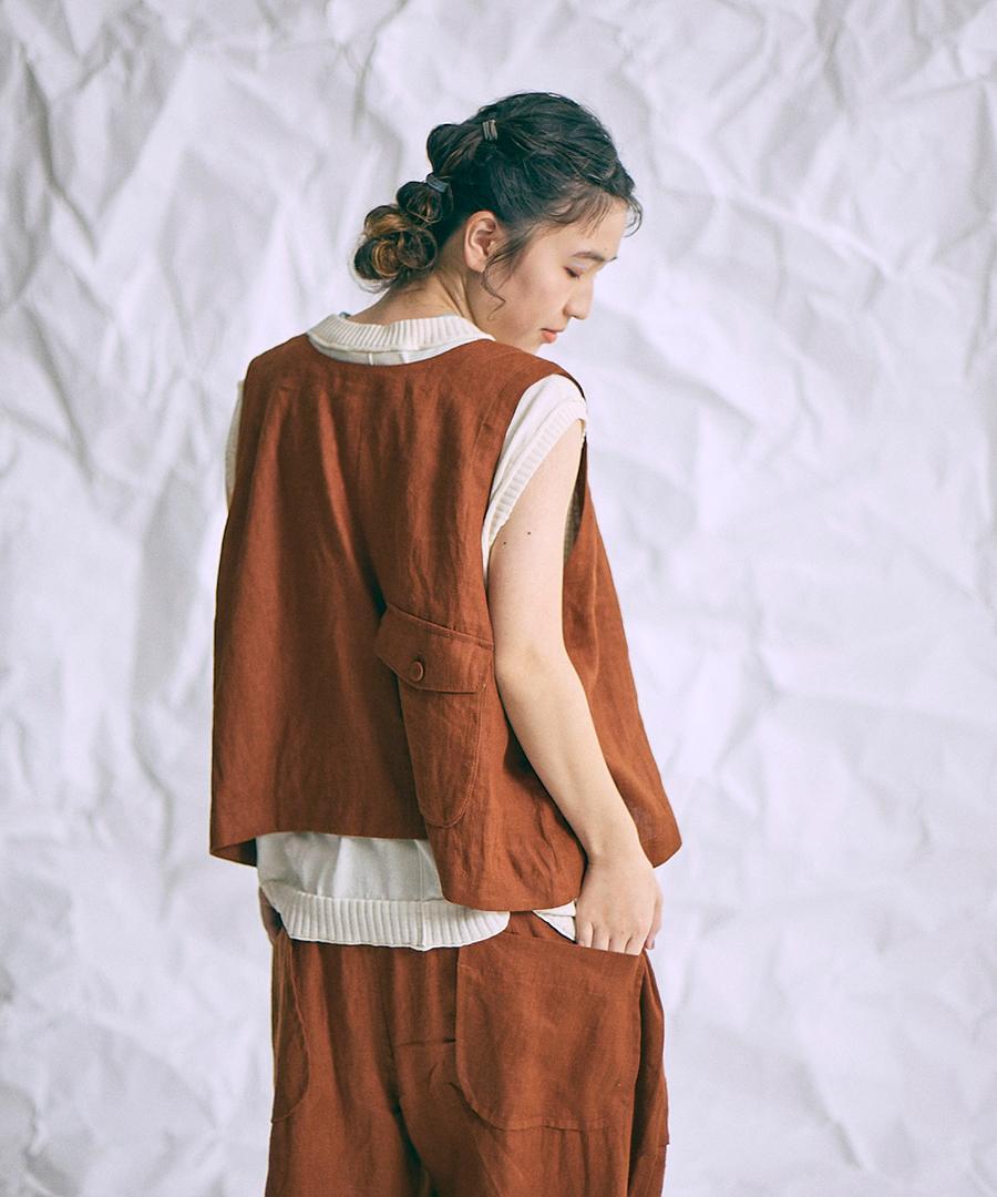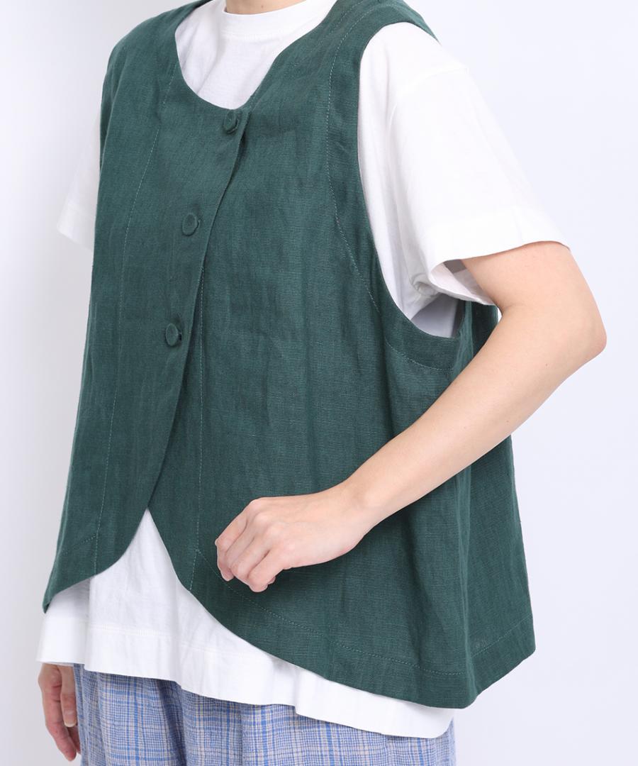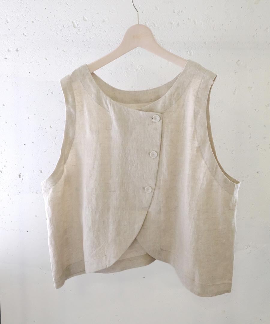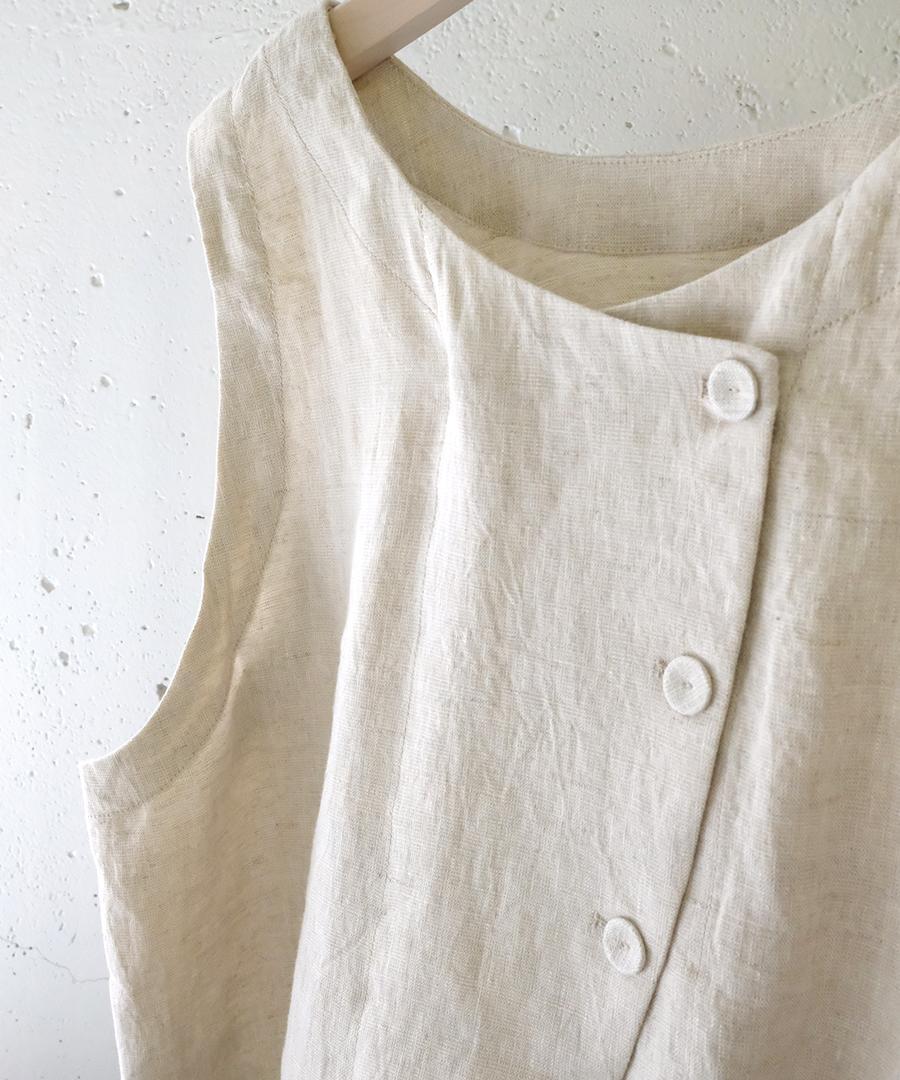 上質な中肉のリネンキャンバス生地で仕立てたベスト。