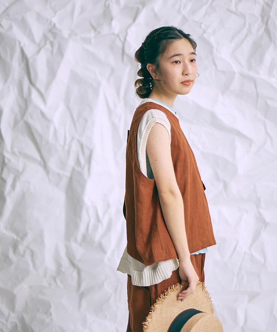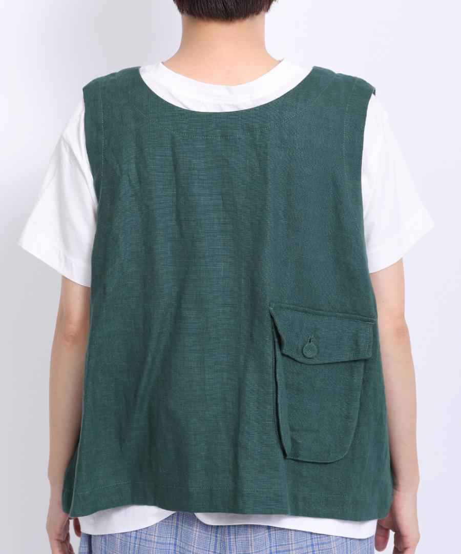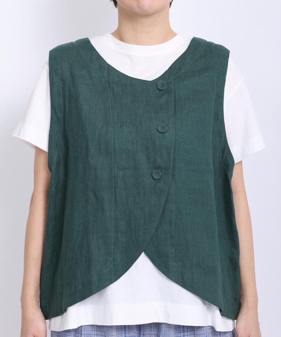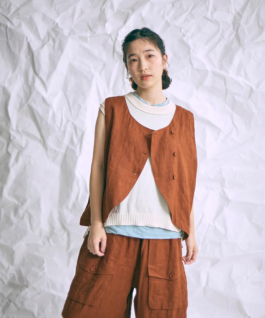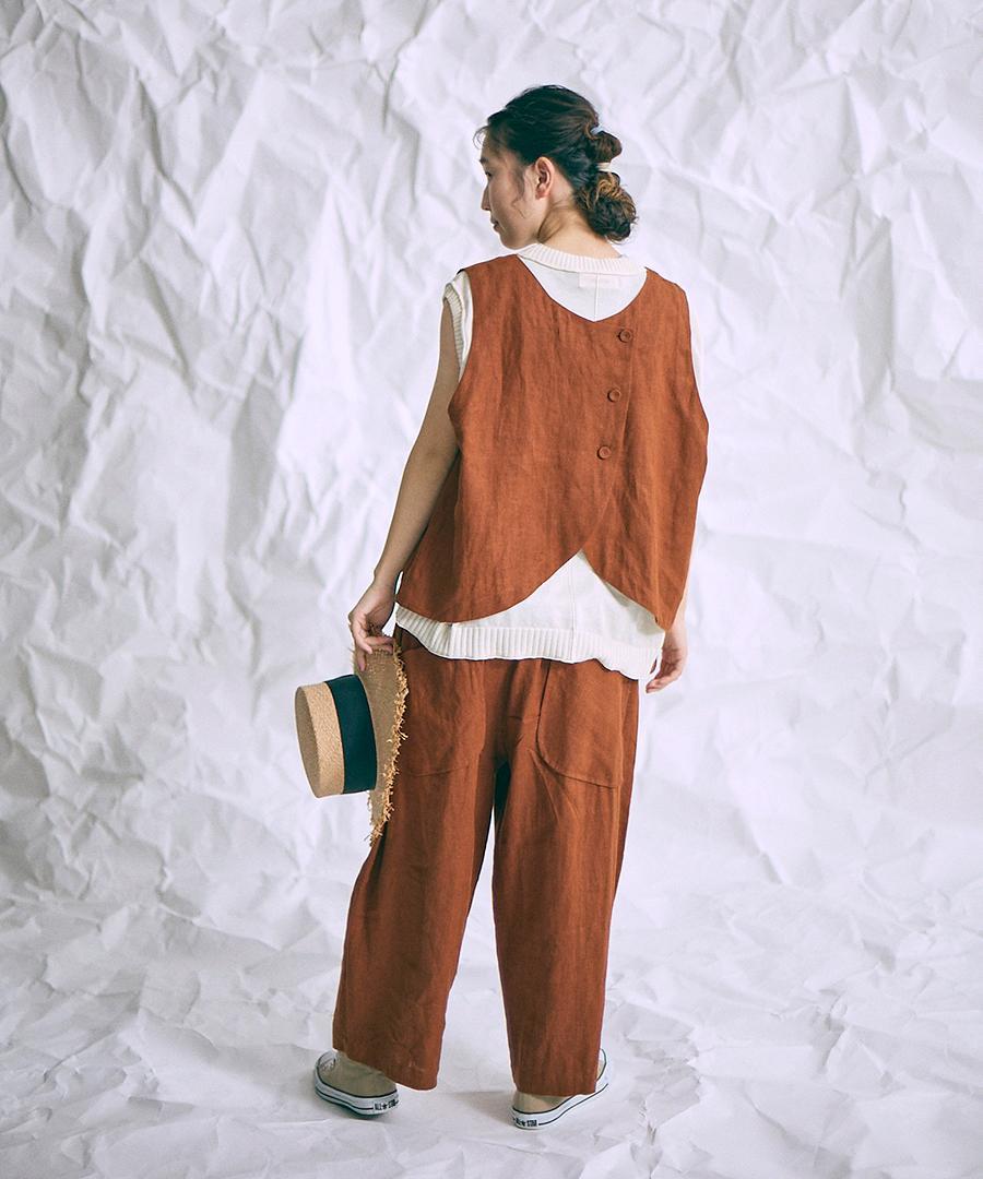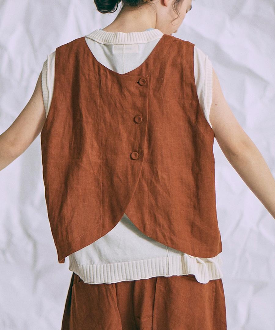 上質な中肉のリネンキャンバス生地で仕立てたベスト。