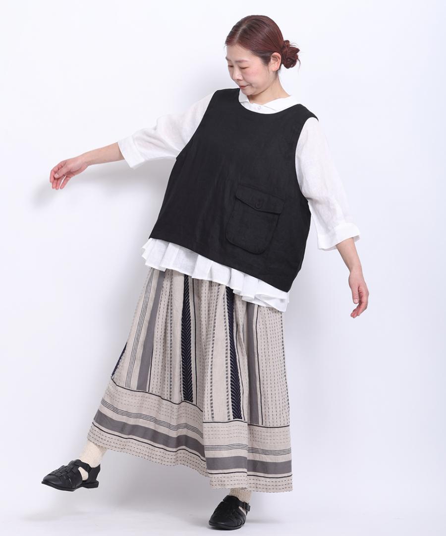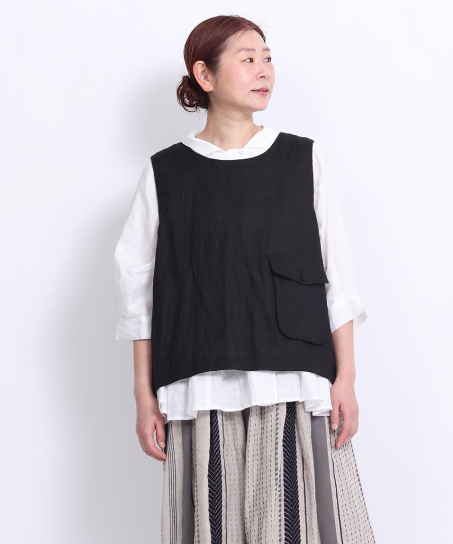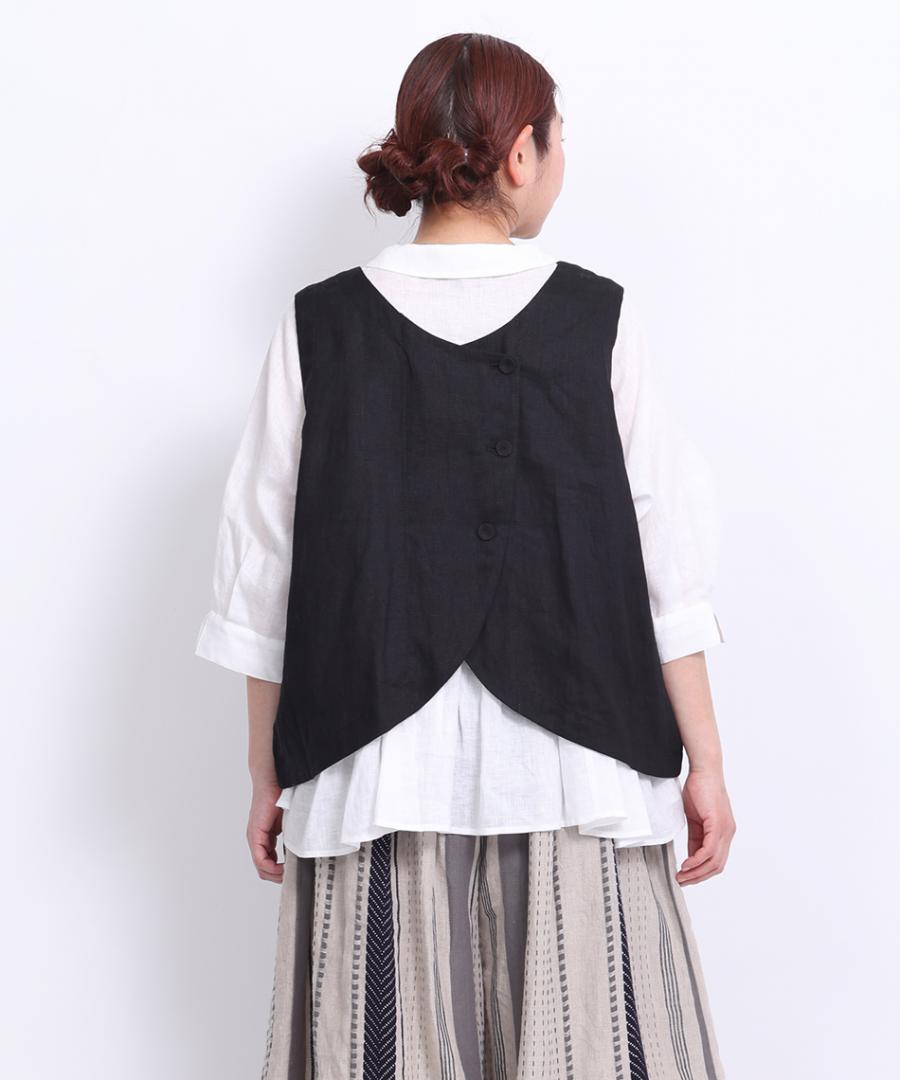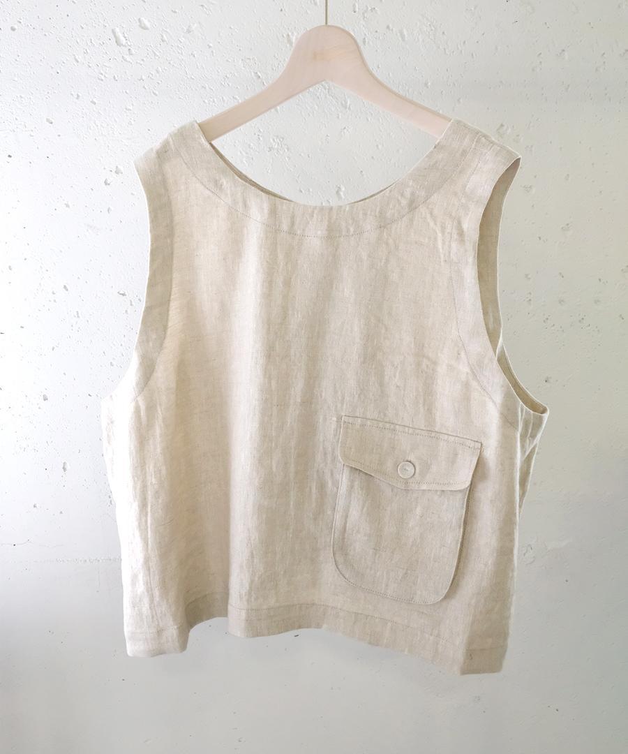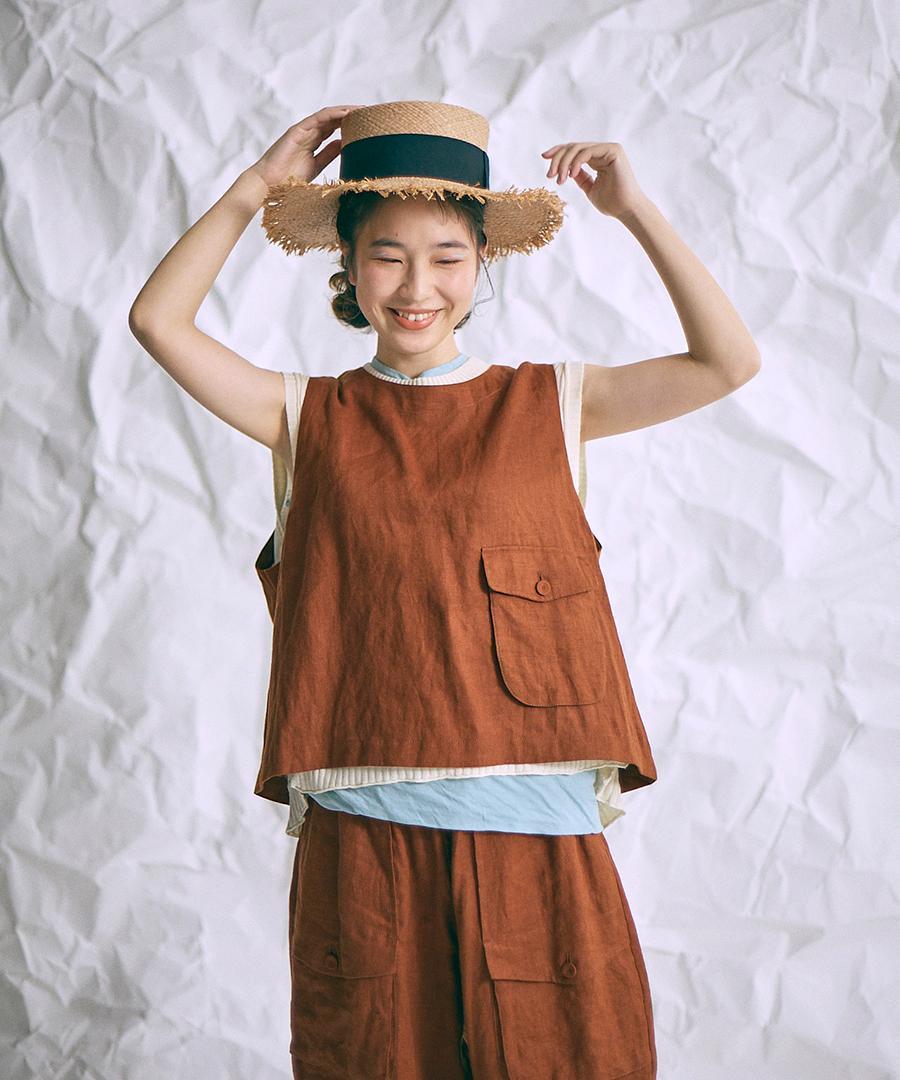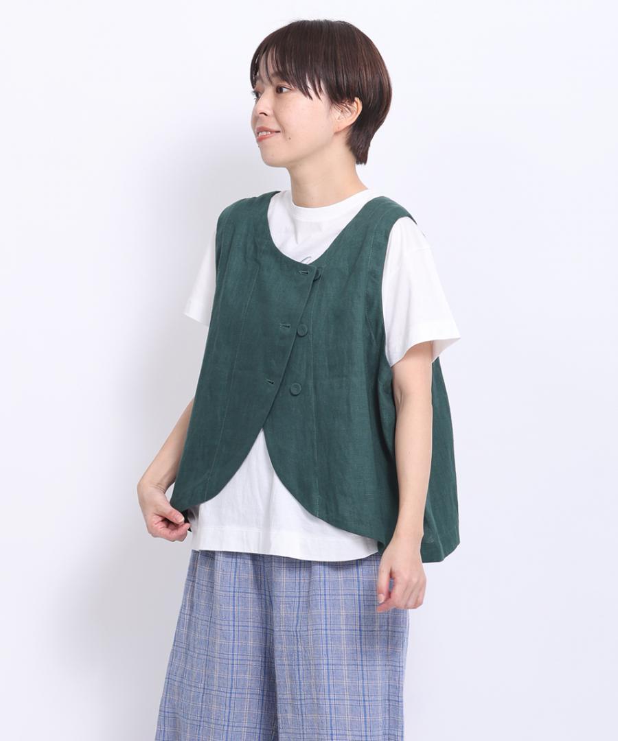 上質な中肉のリネンキャンバス生地で仕立てたベスト。