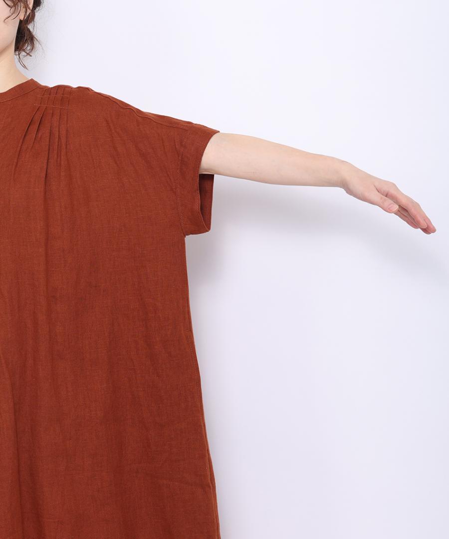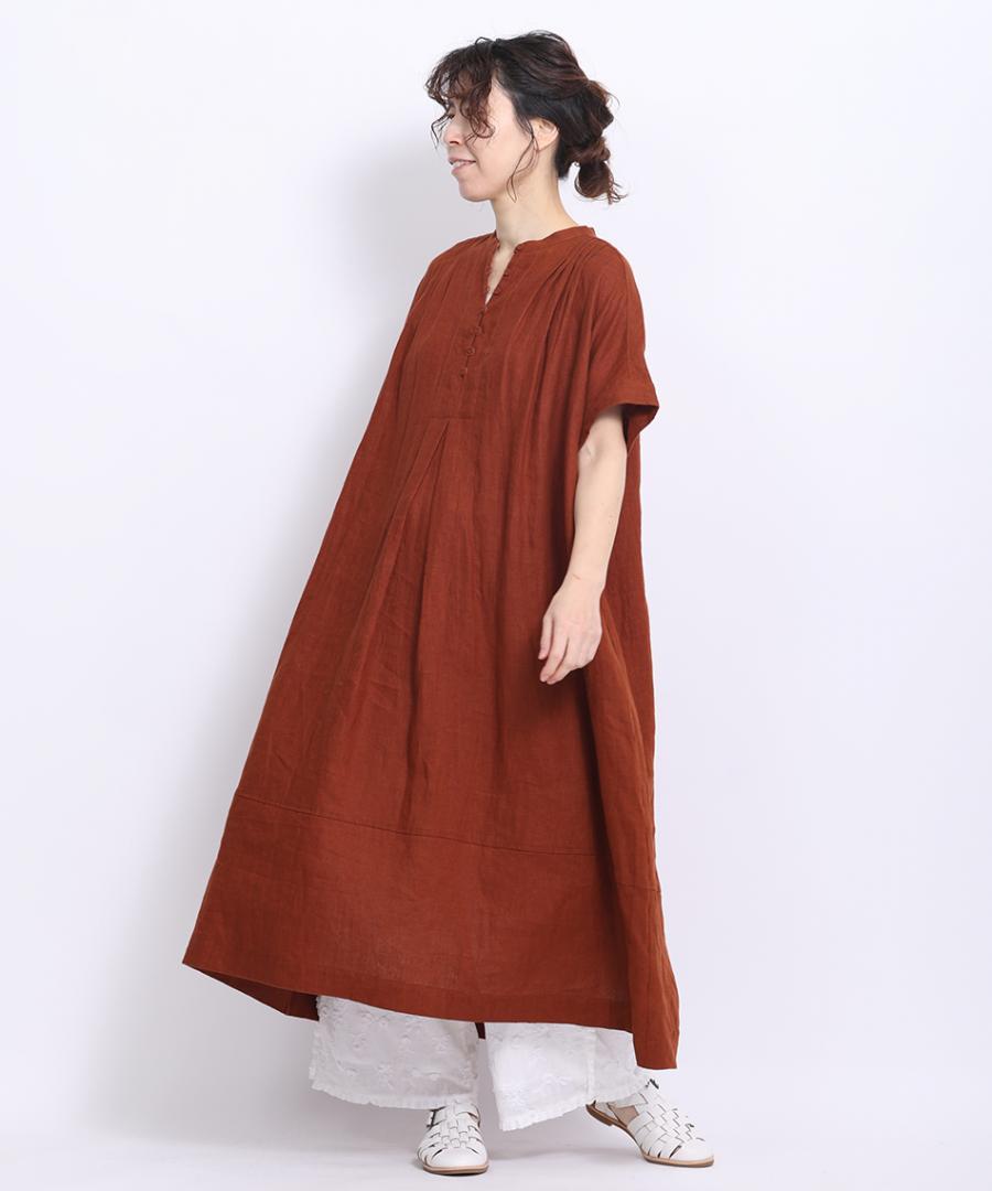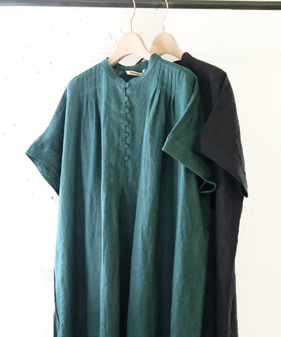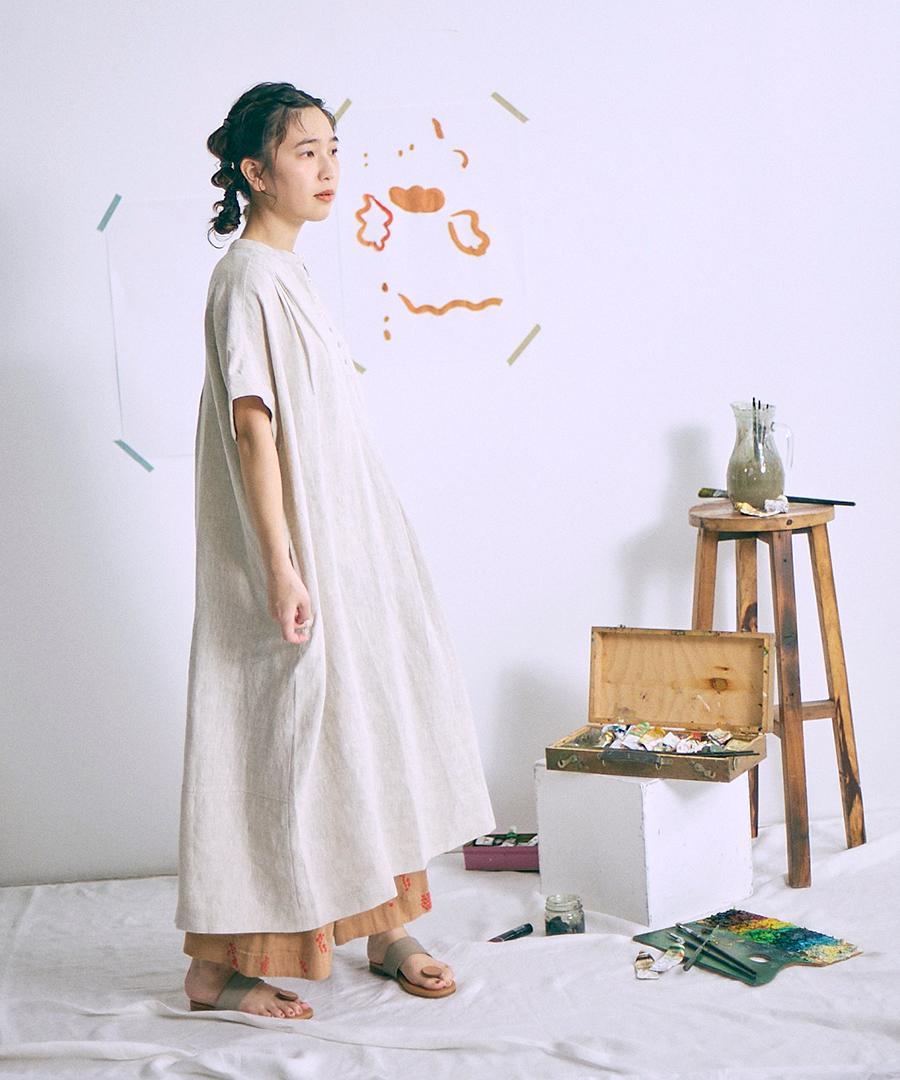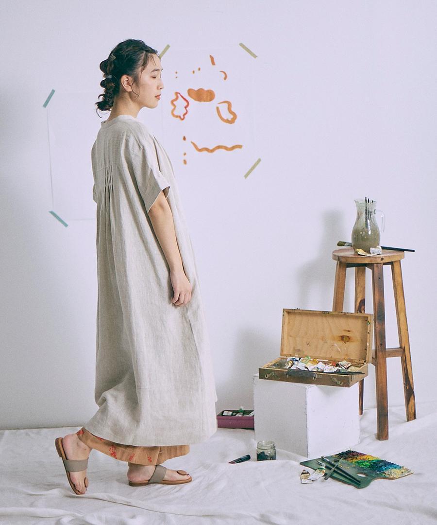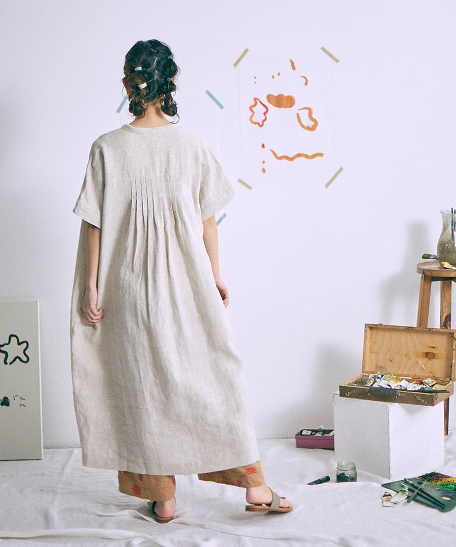 上質な中肉のリネンキャンバス生地で仕立てたワンピース。