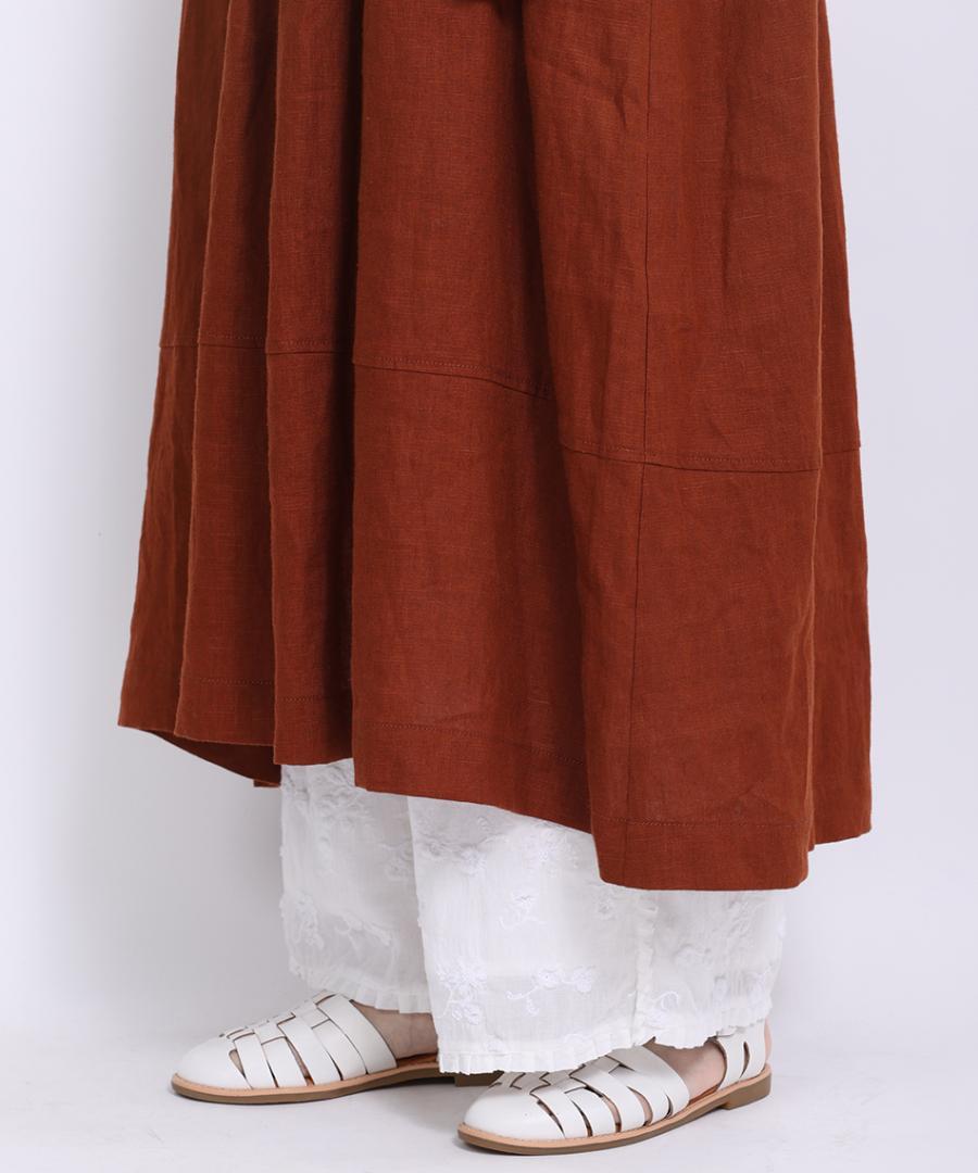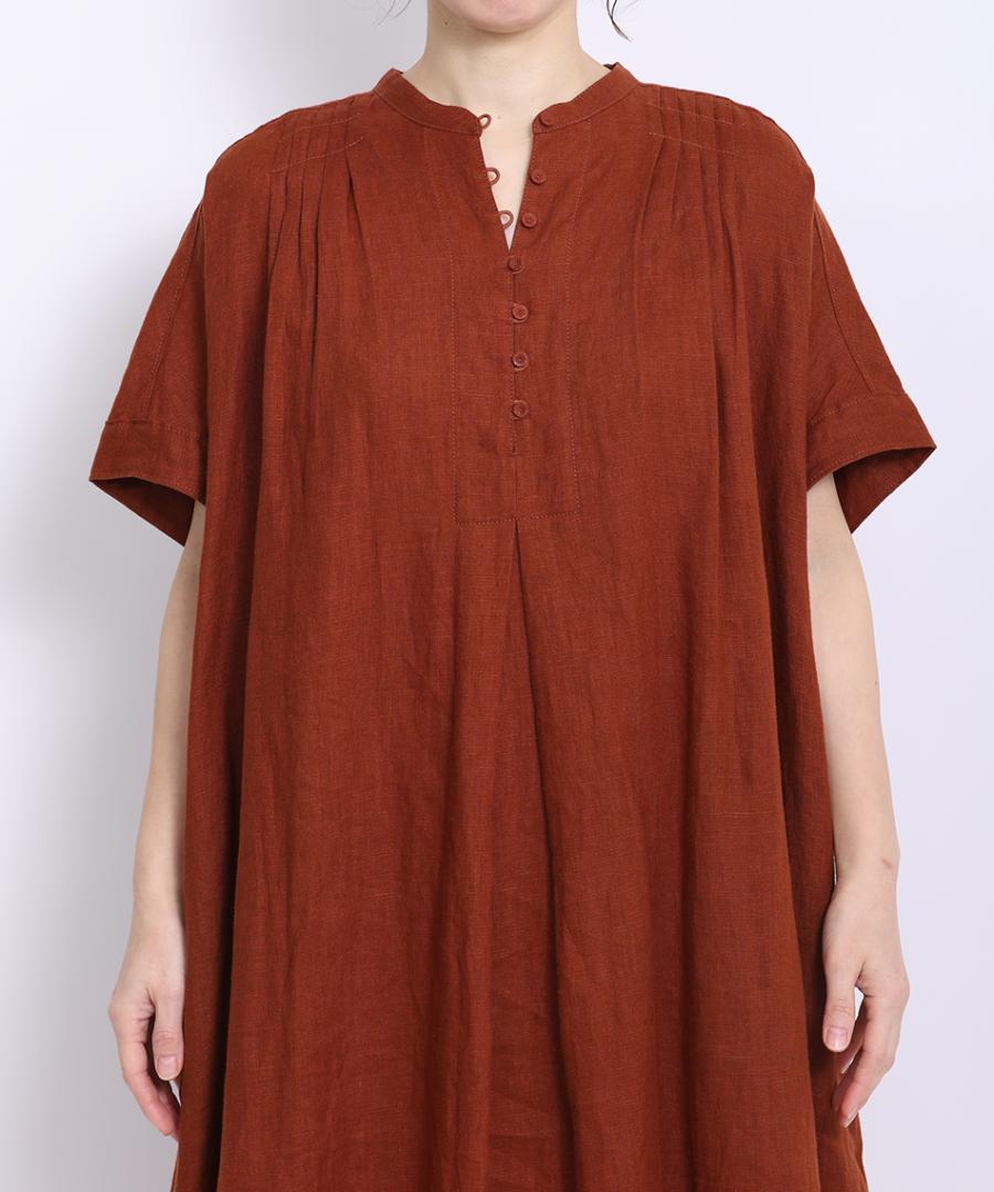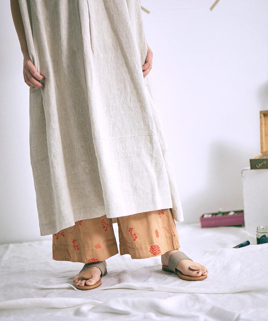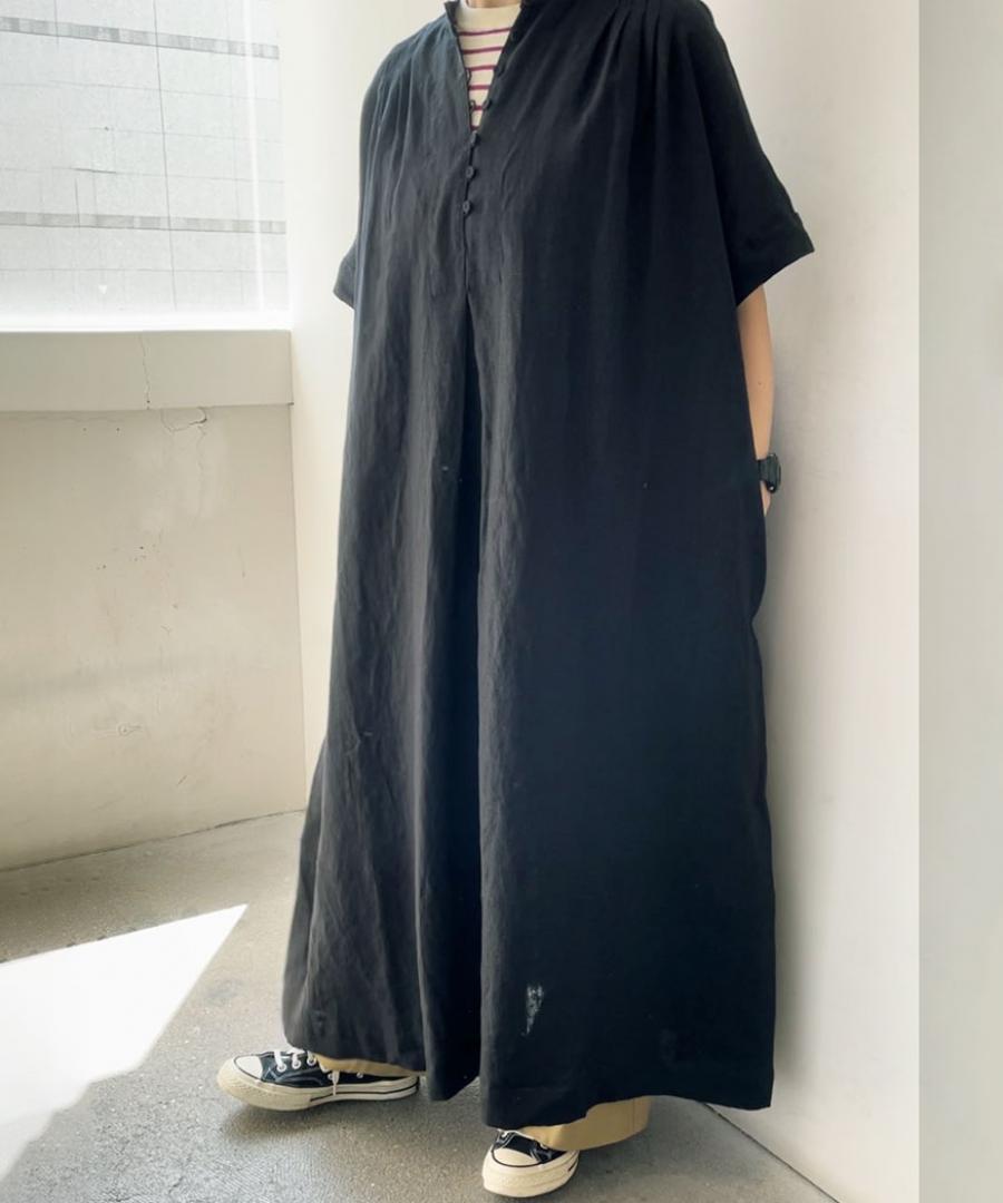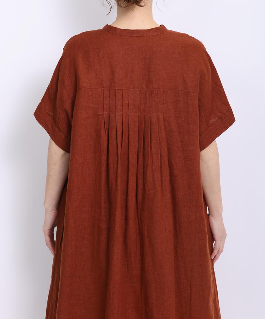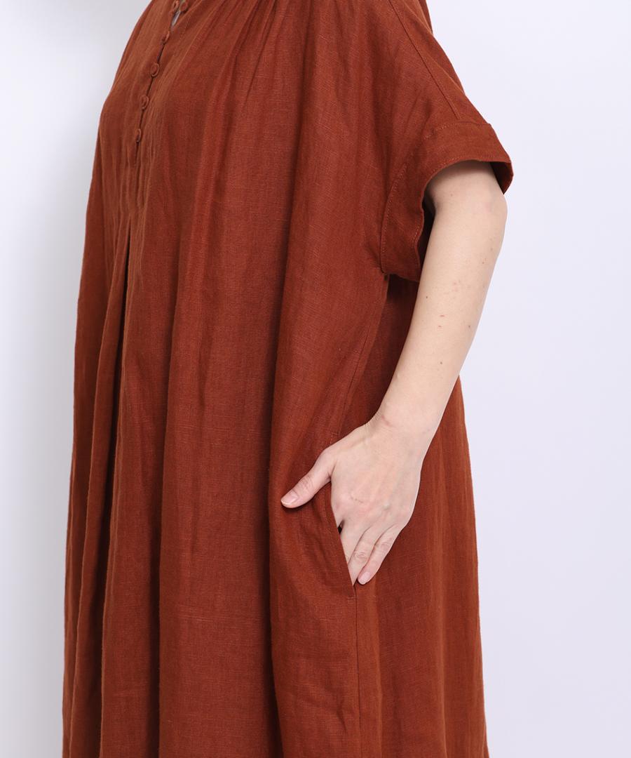 上質な中肉のリネンキャンバス生地で仕立てたワンピース。