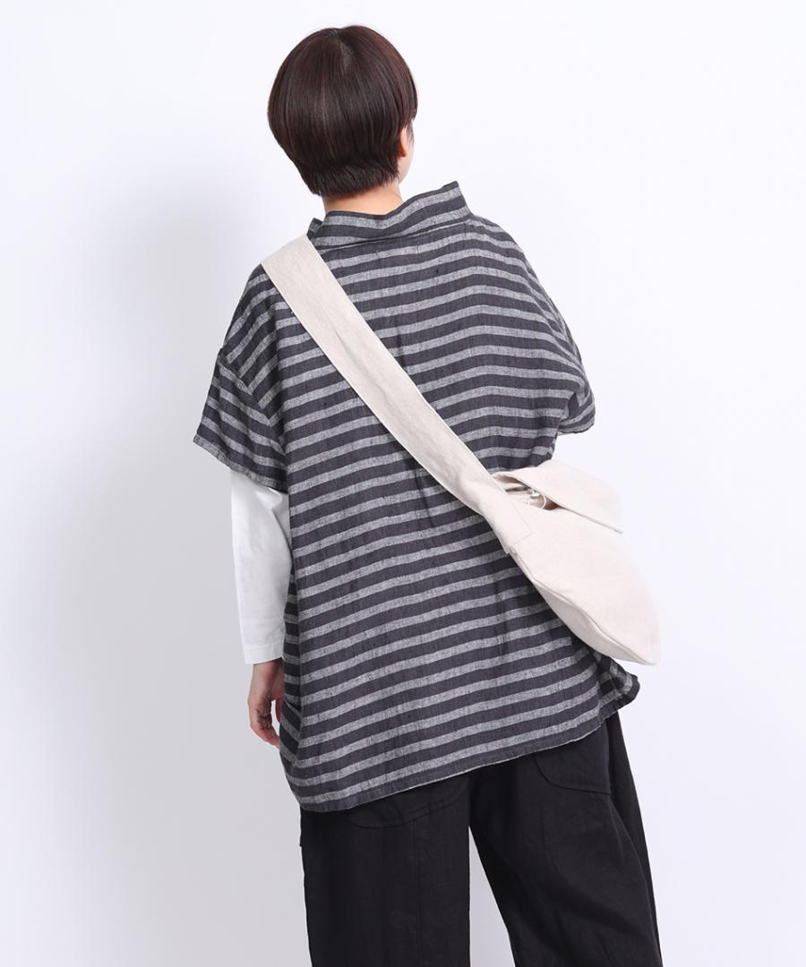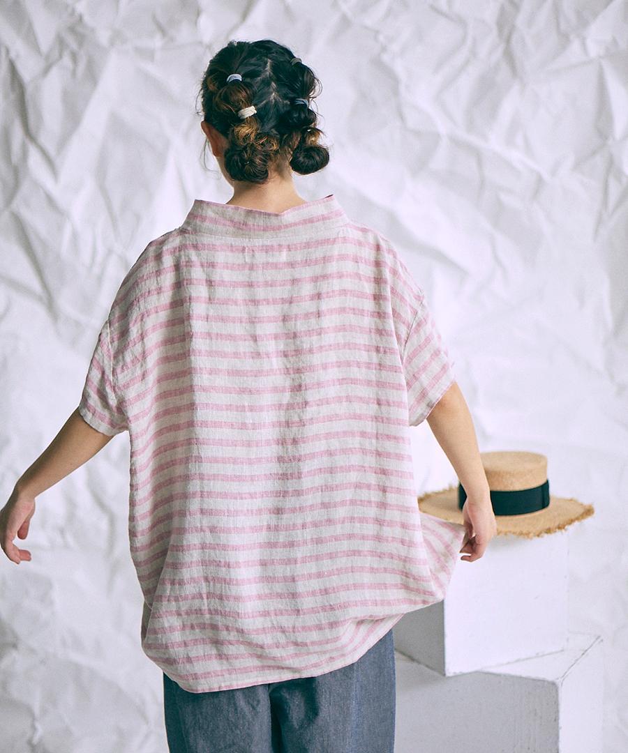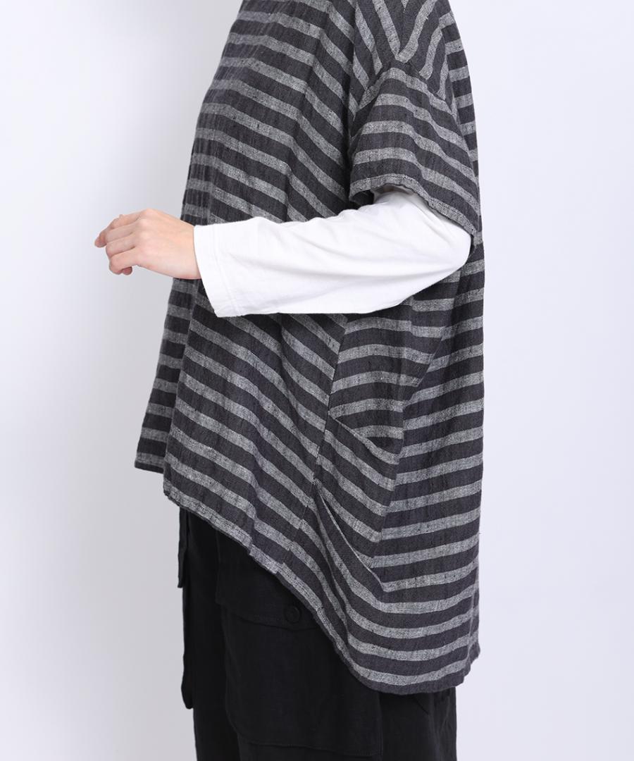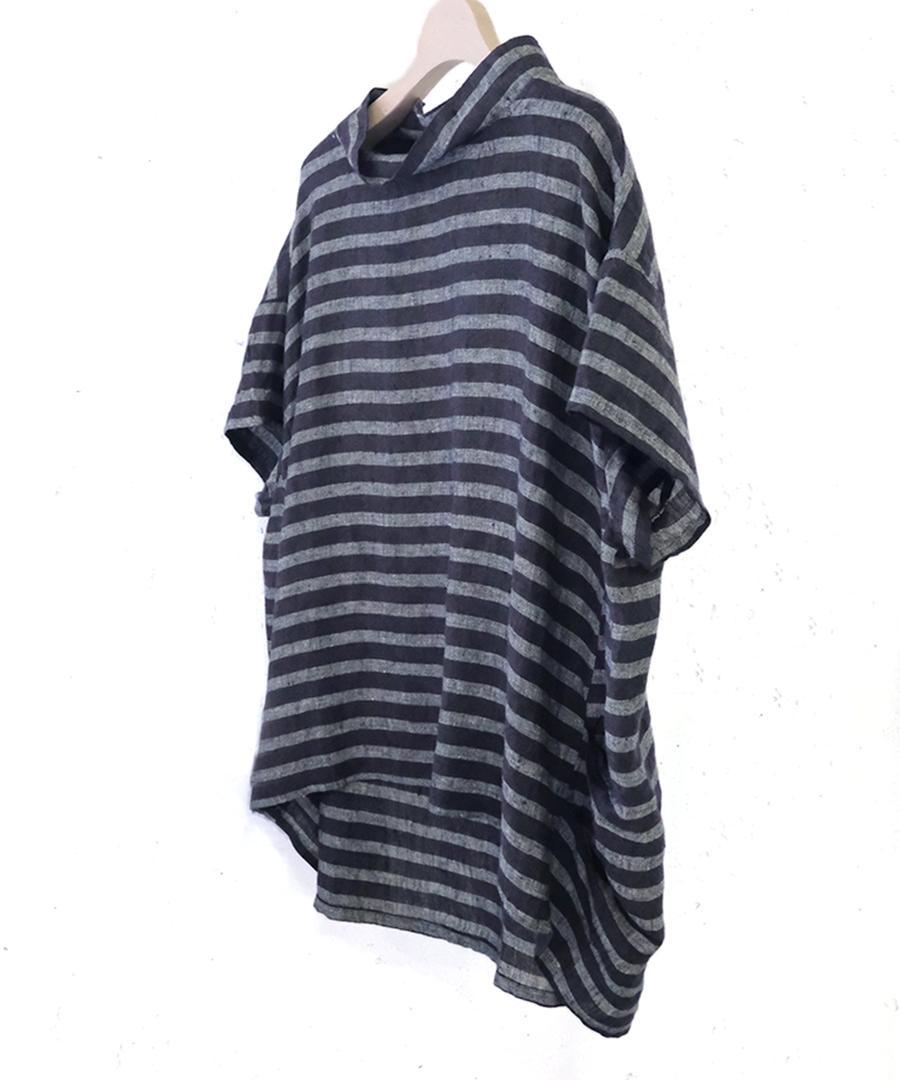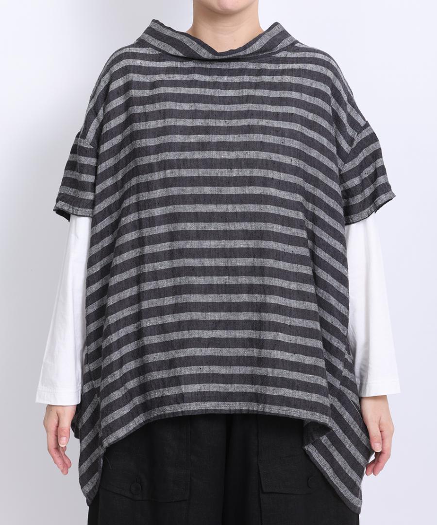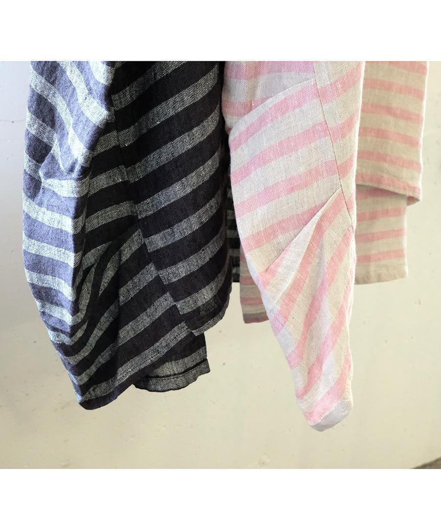 落ち着いた色合いのボーダー柄がナチュラルな雰囲気たっぷりのリネンプルオーバー。