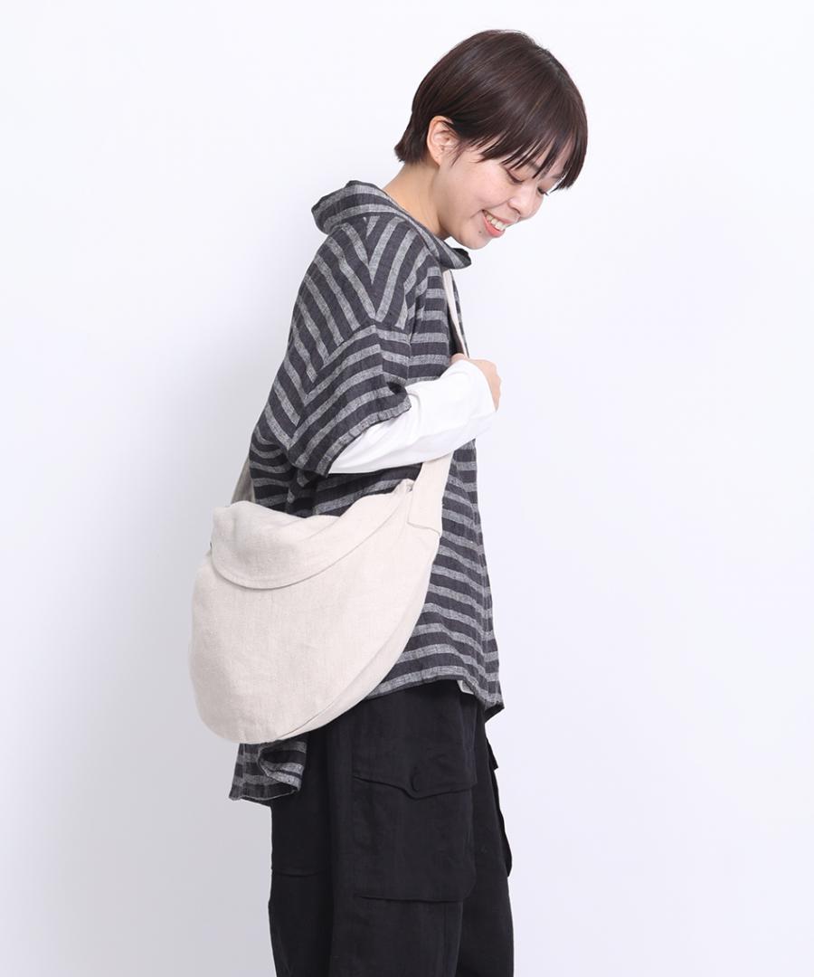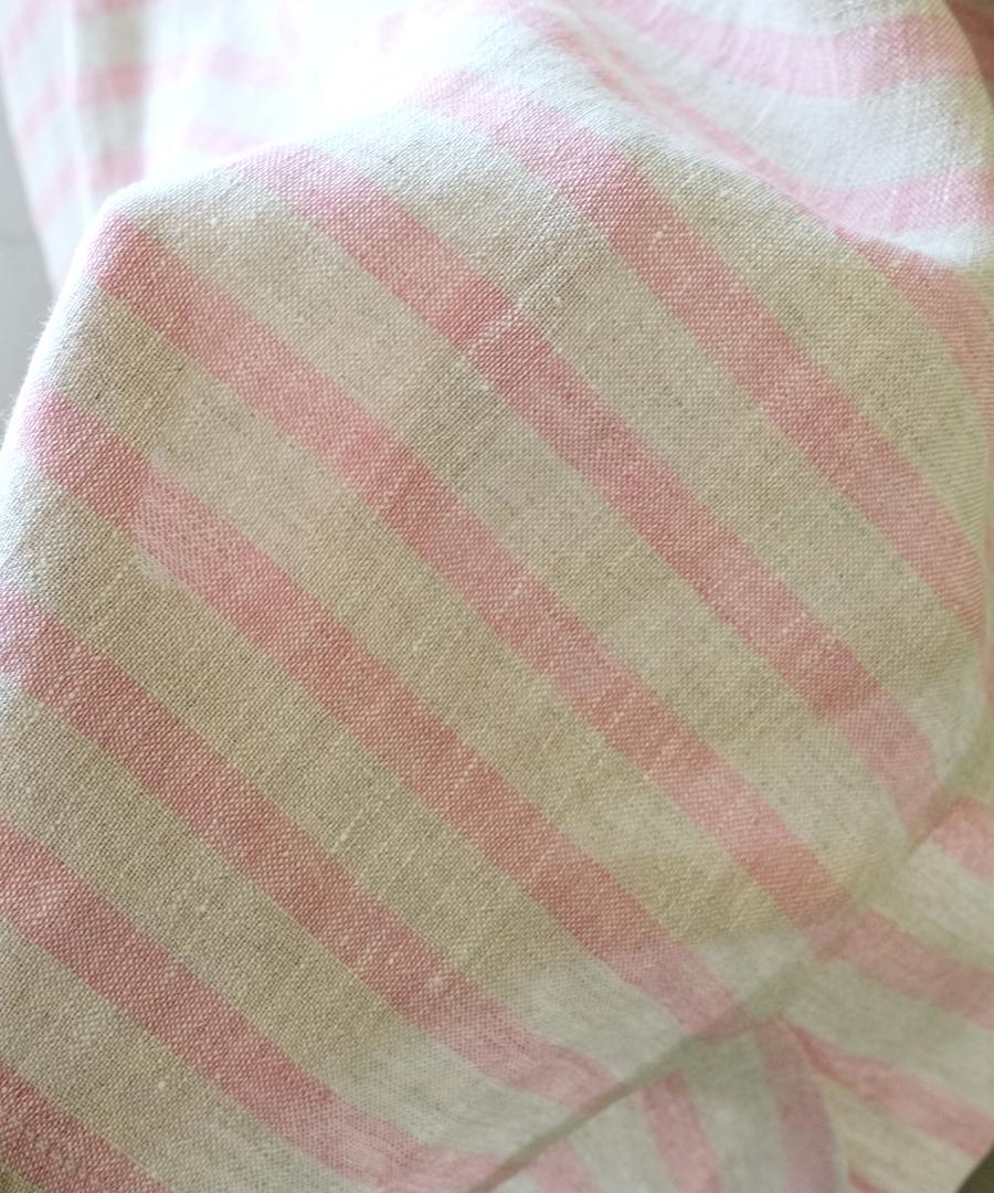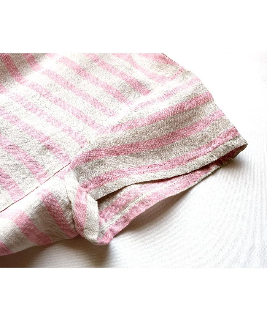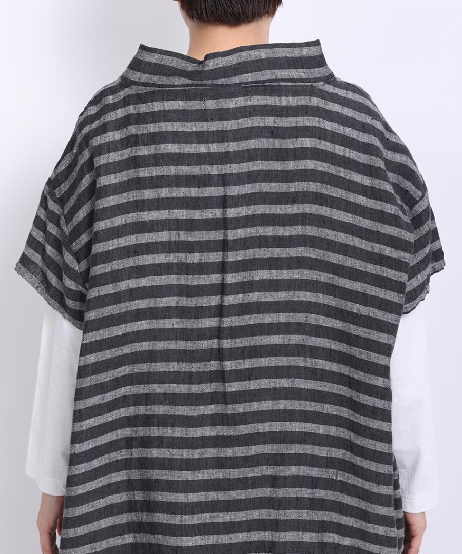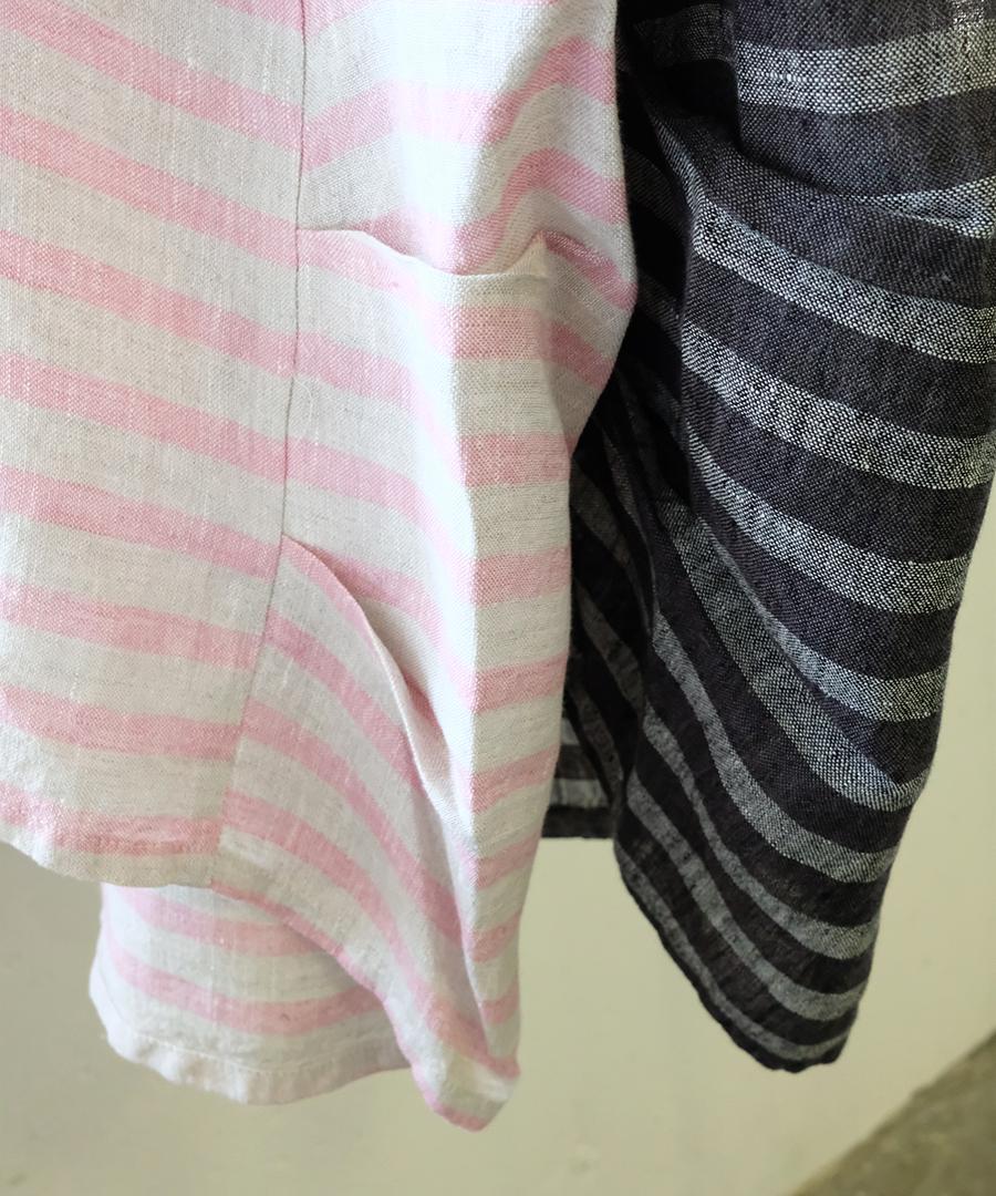 落ち着いた色合いのボーダー柄がナチュラルな雰囲気たっぷりのリネンプルオーバー。