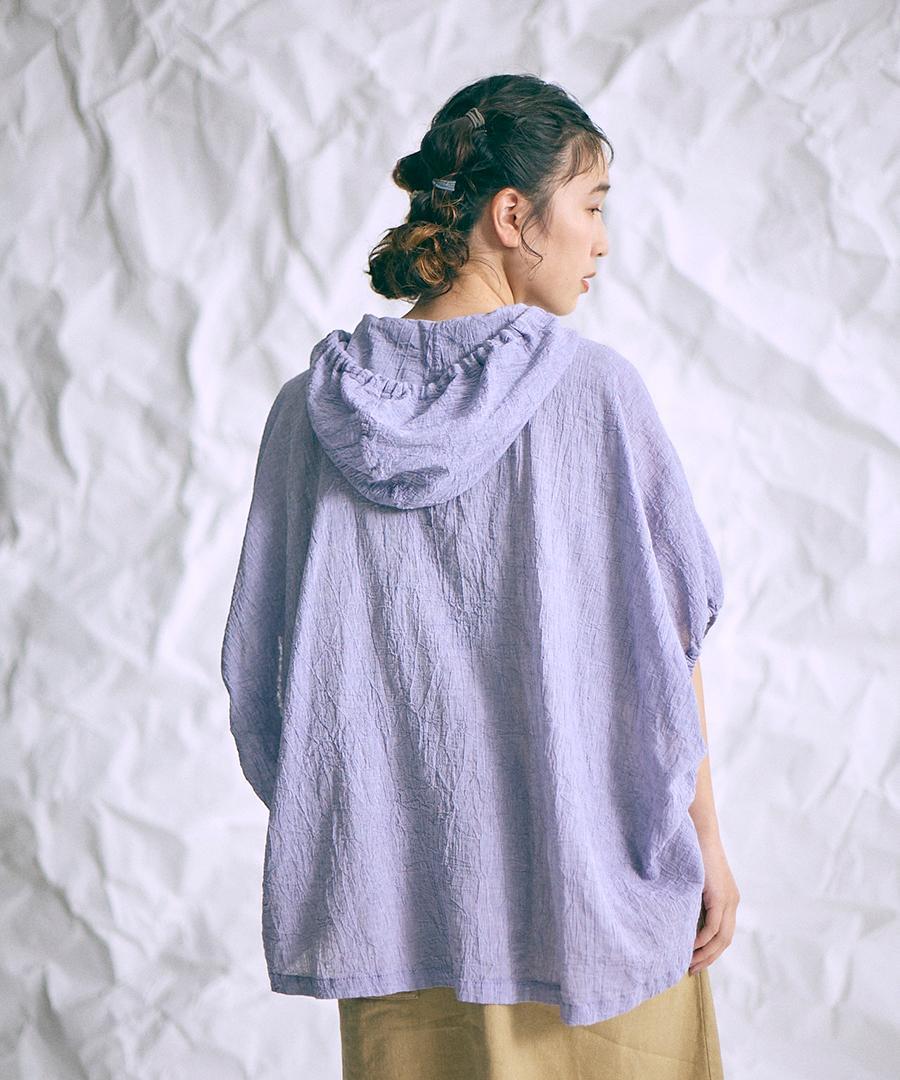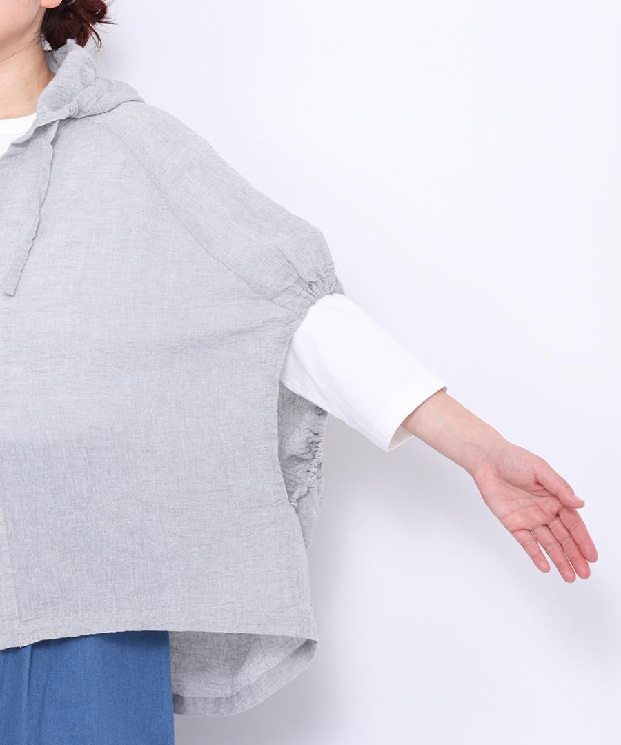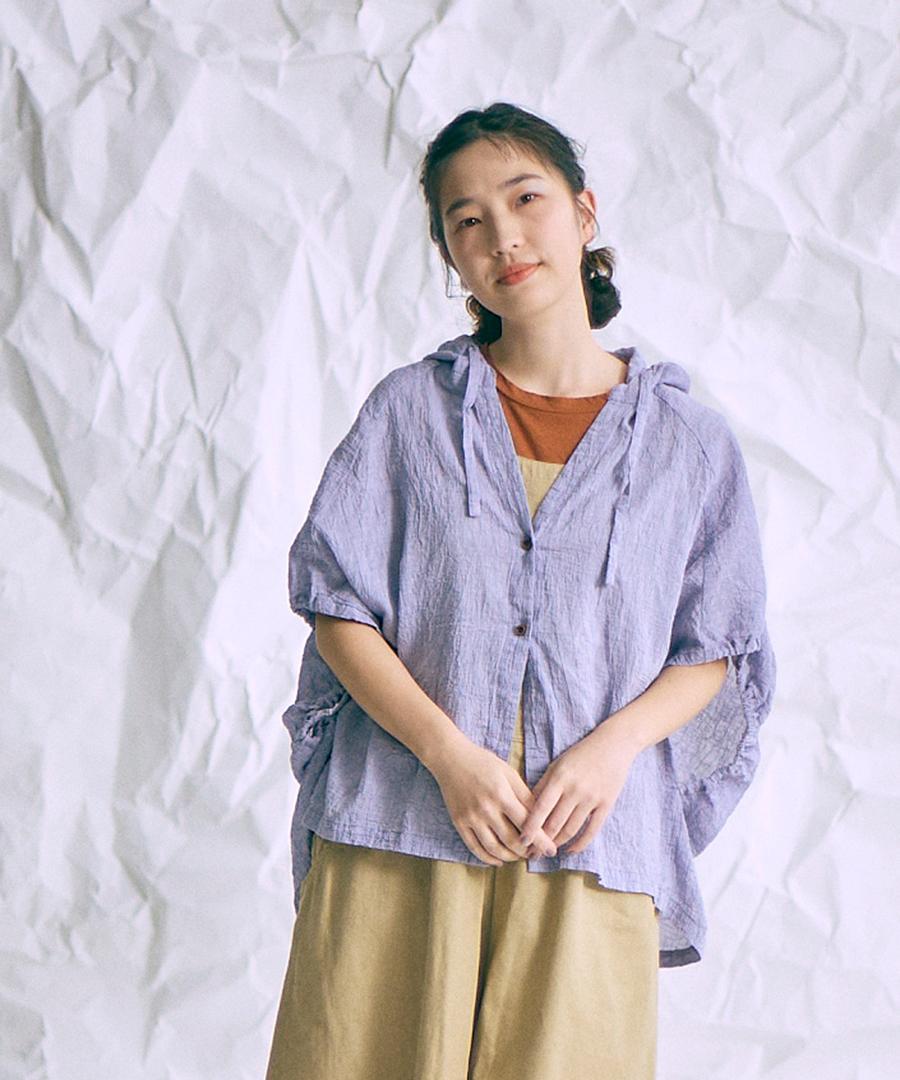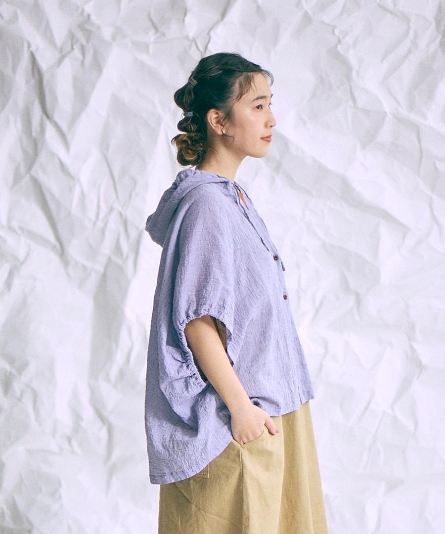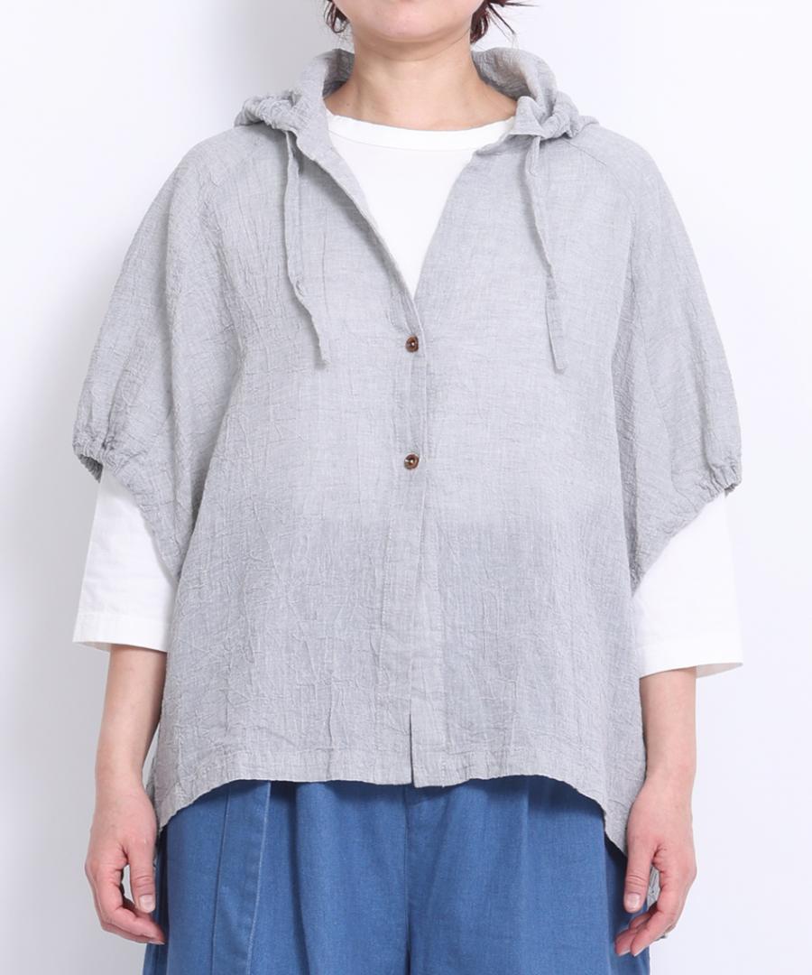 綿麻先染めボイルワッシャー フードブラウス
