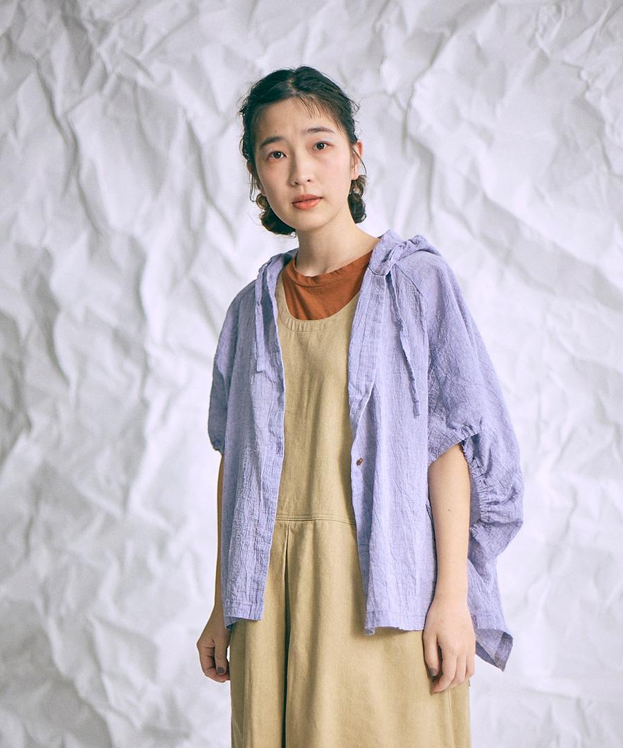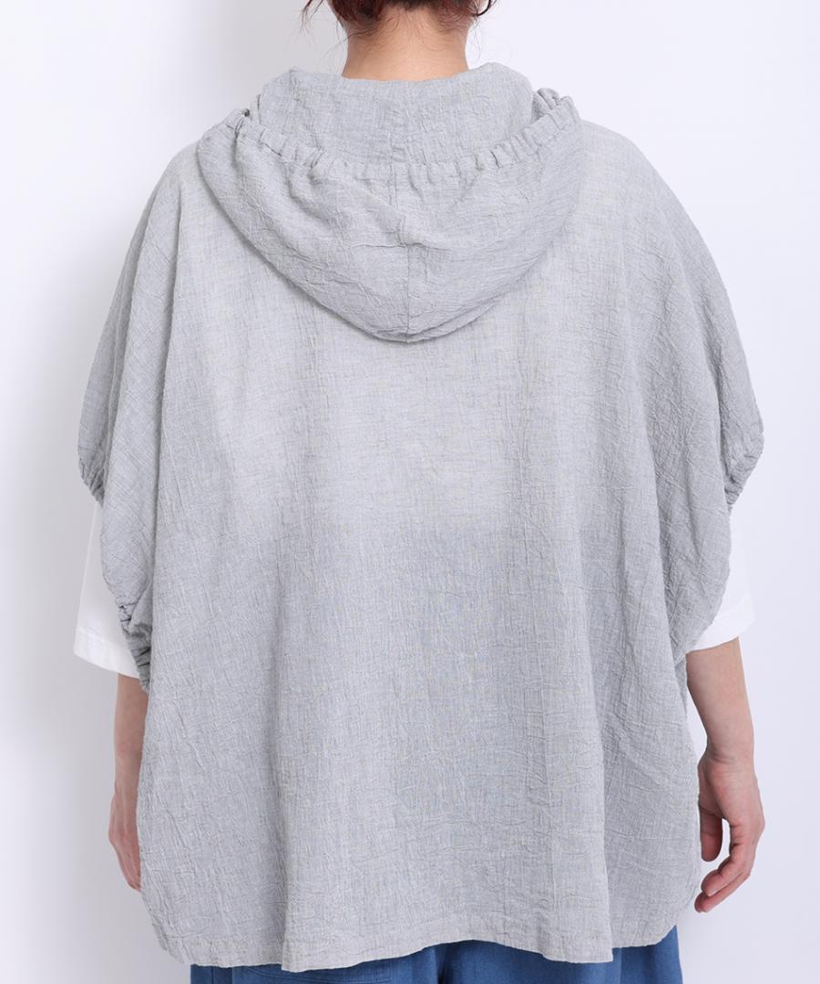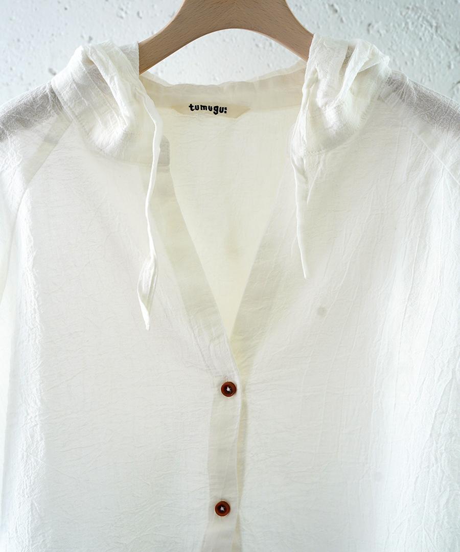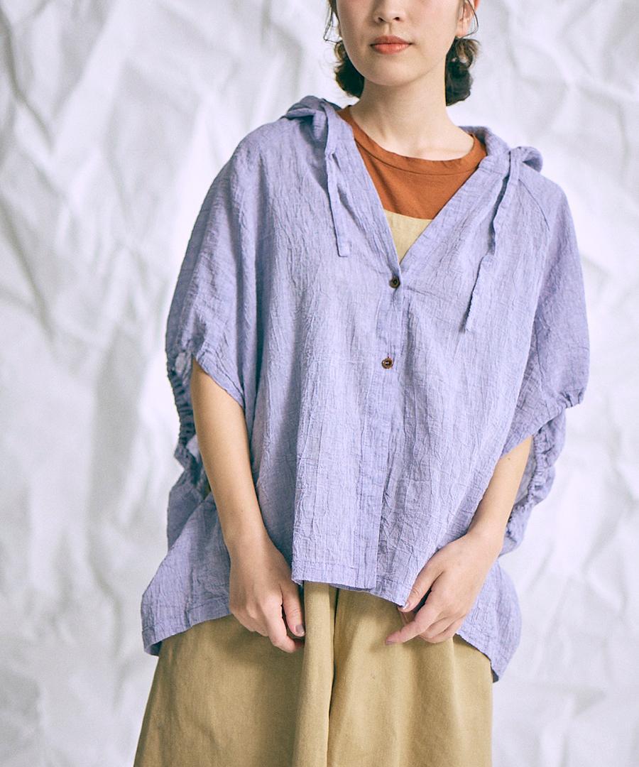 綿麻先染めボイルワッシャー フードブラウス
