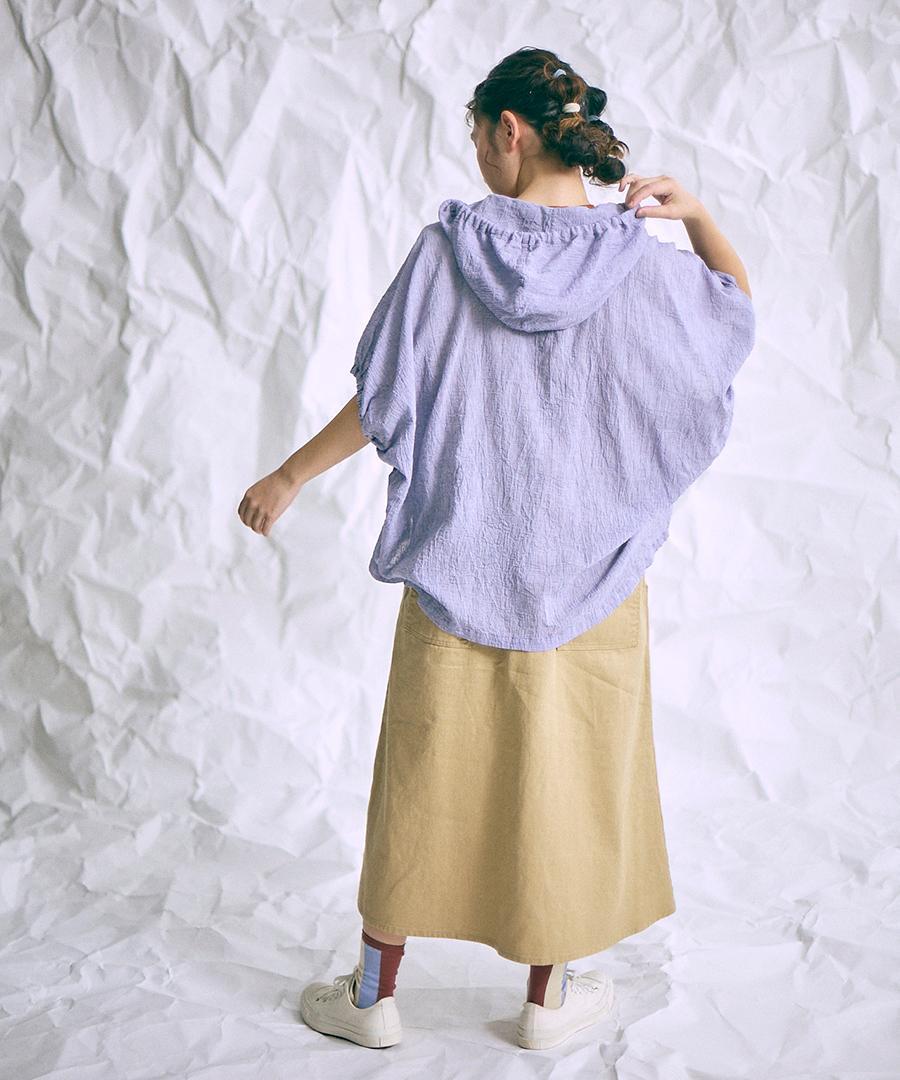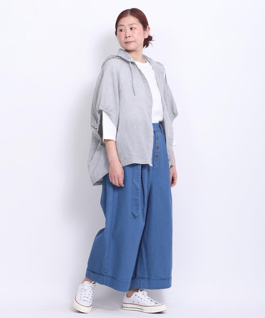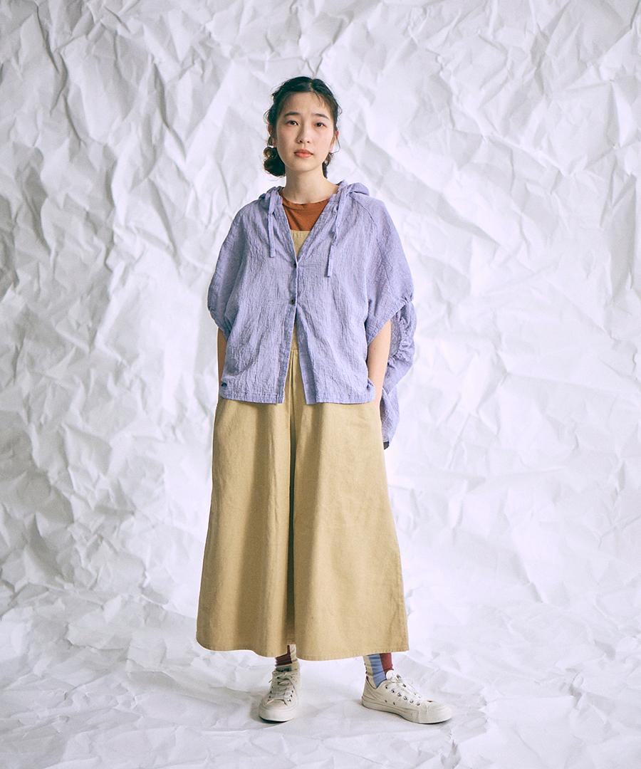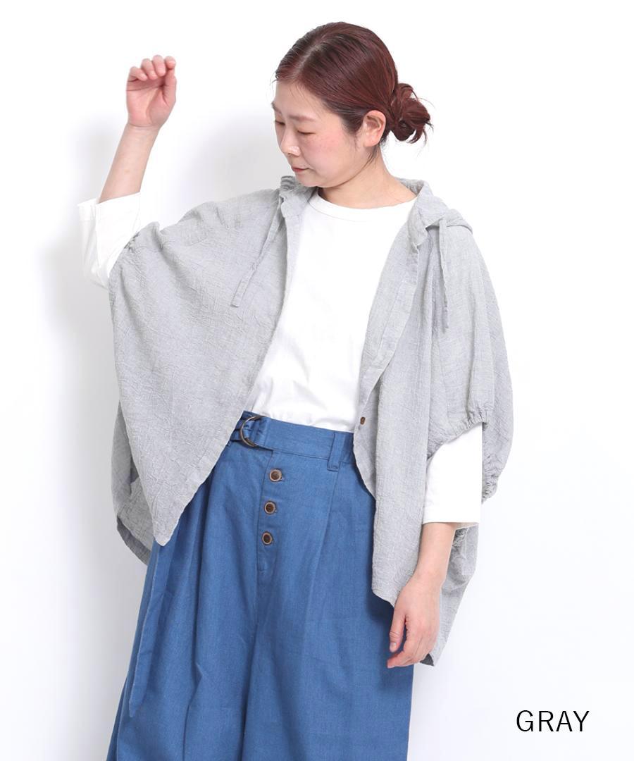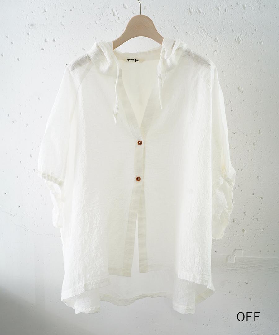 綿麻先染めボイルワッシャー フードブラウス
