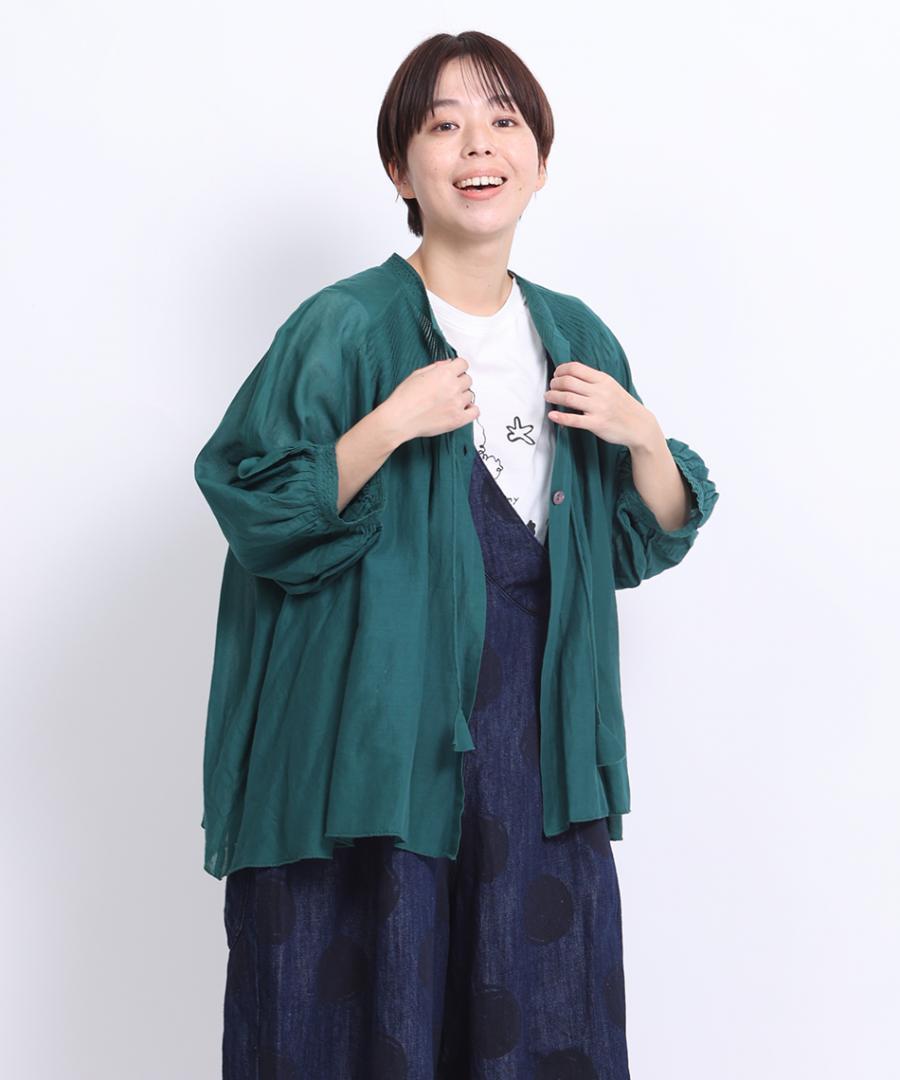 ボタンを開けて羽織としても着回しできるブラウスです。