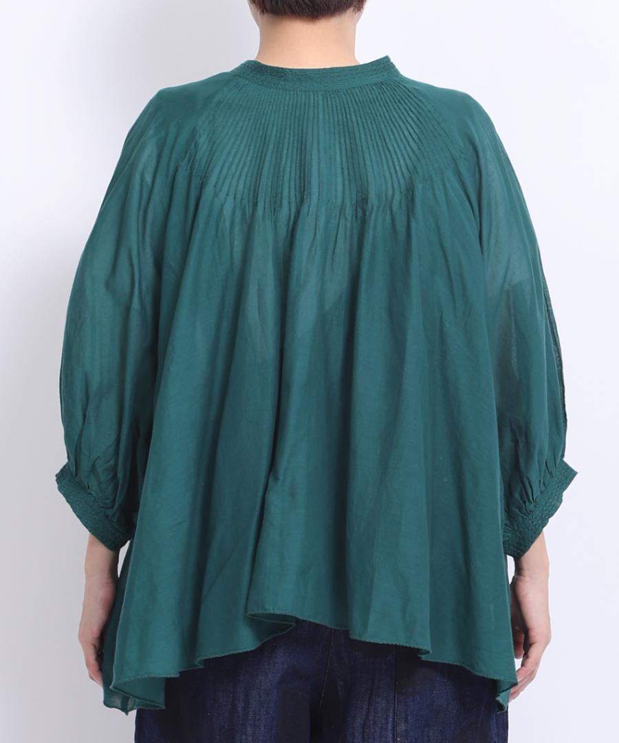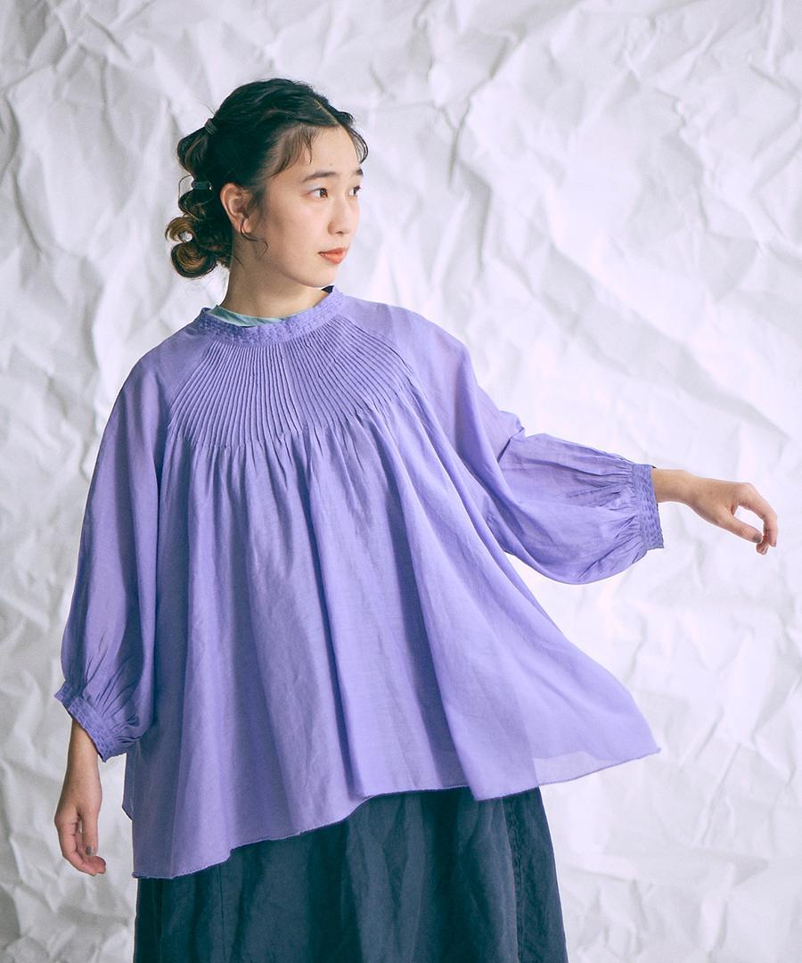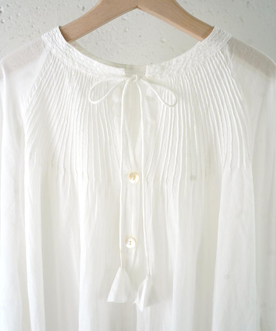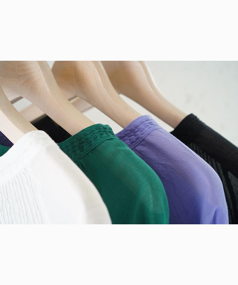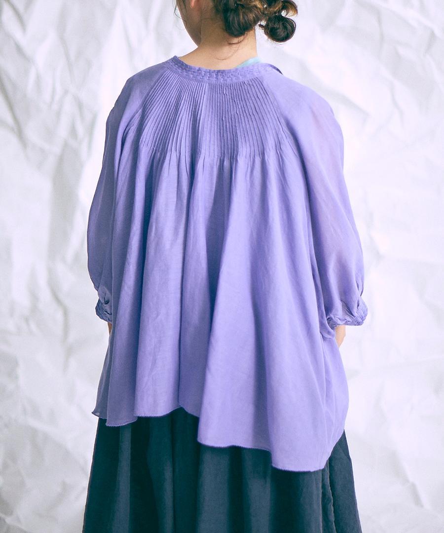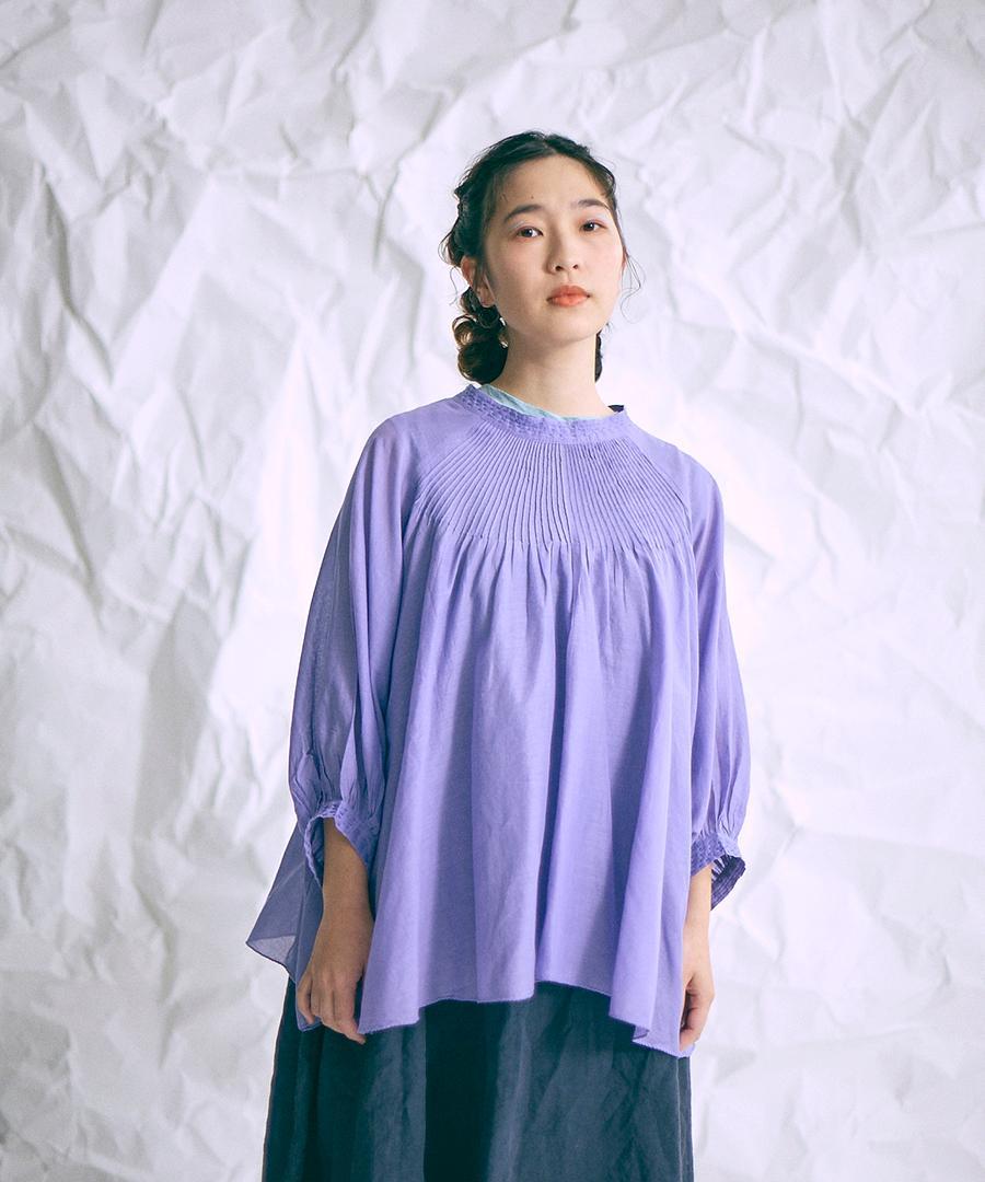 放射線状に細やかなピンタックを入れ、ふんわりと立体的なドレープ性のあるシルエットが特徴です。