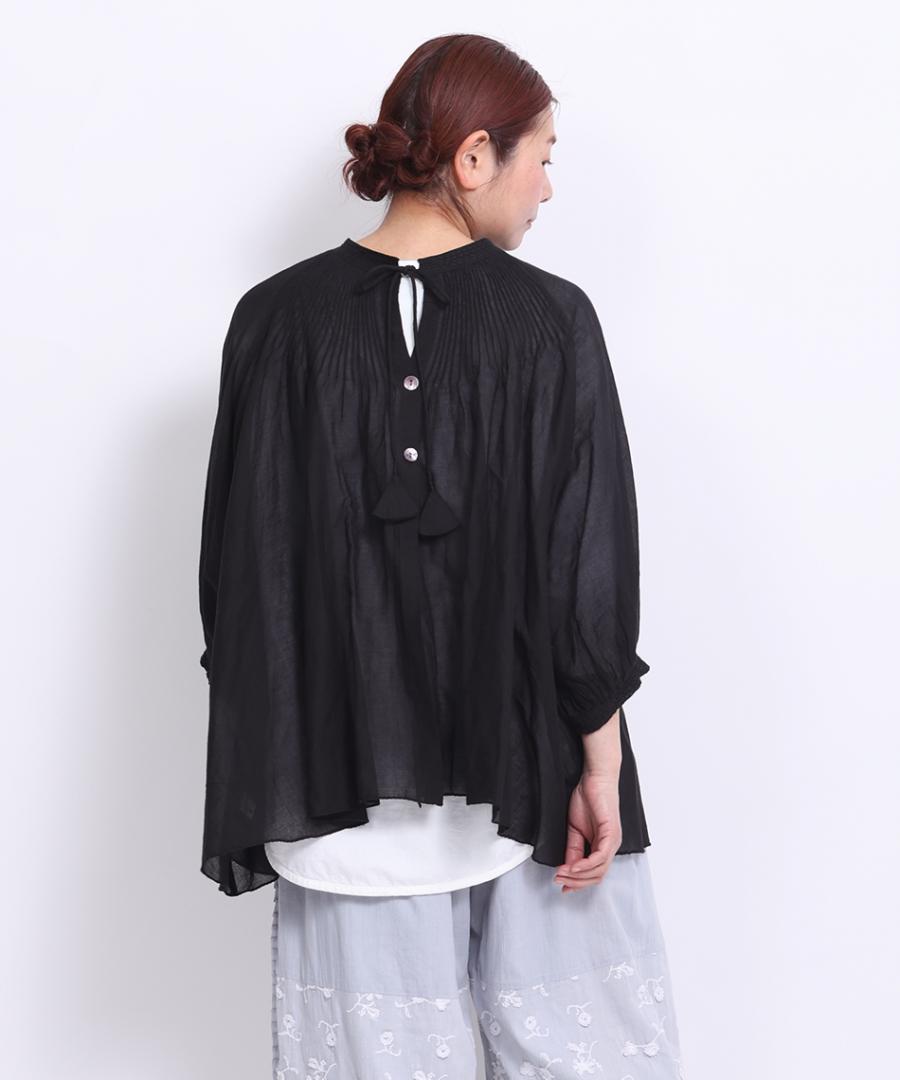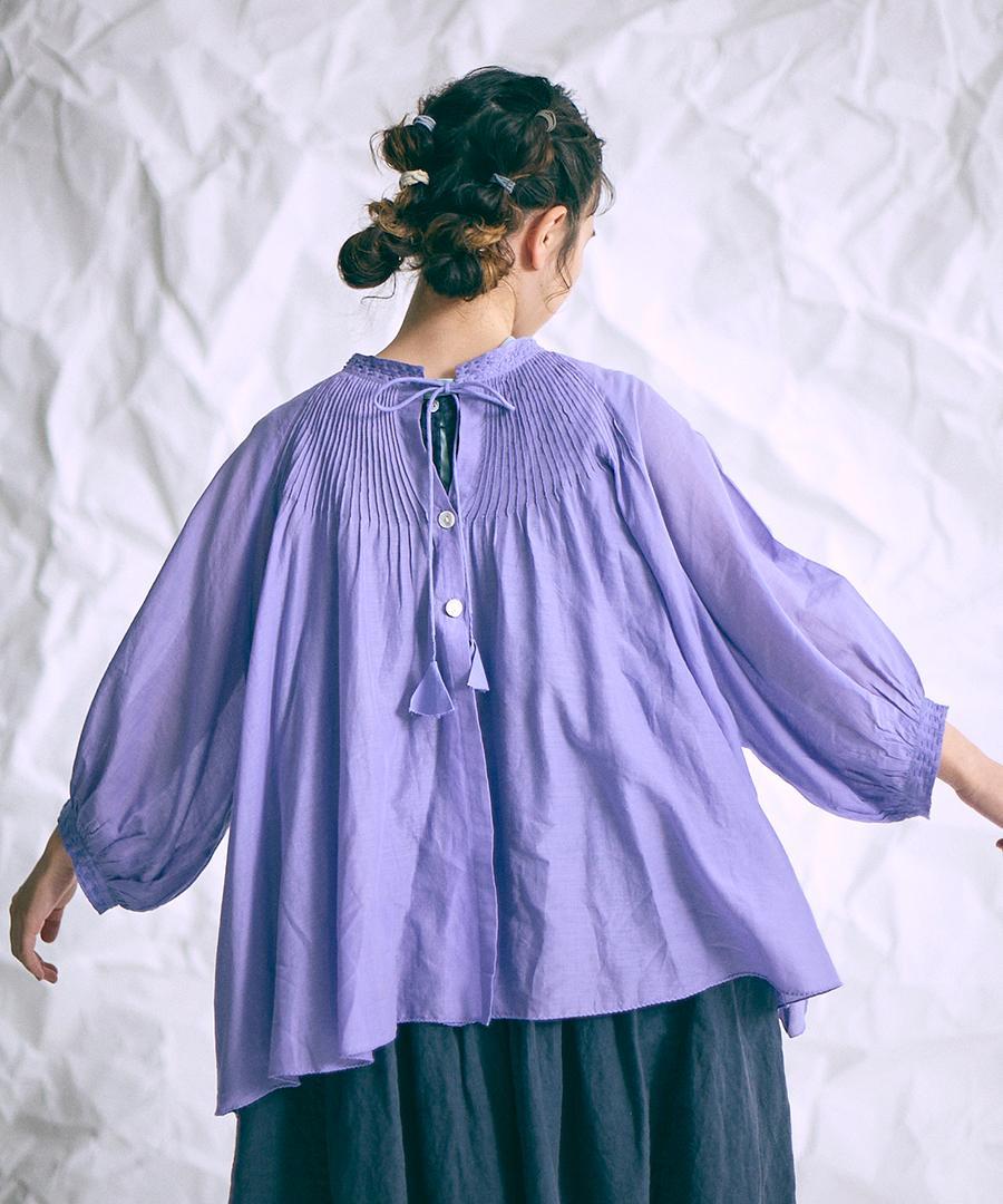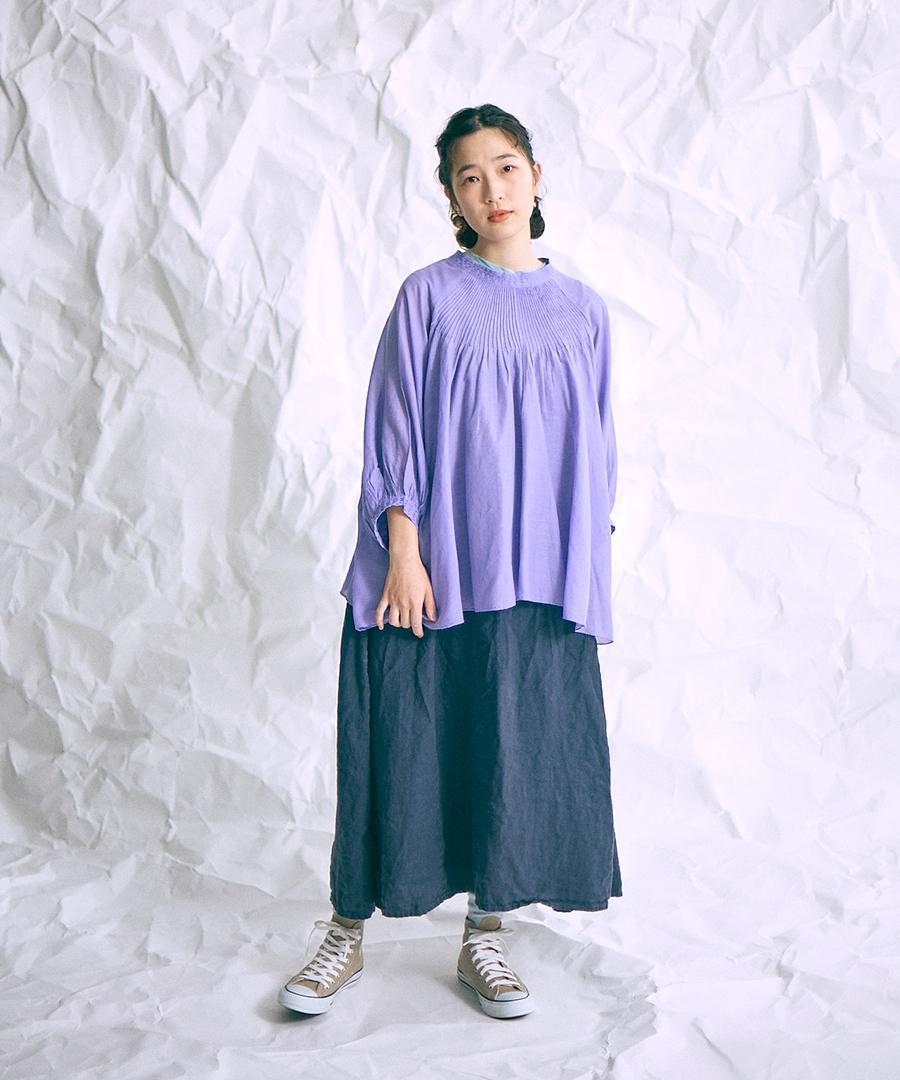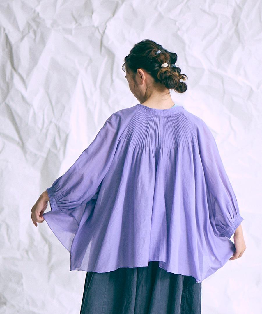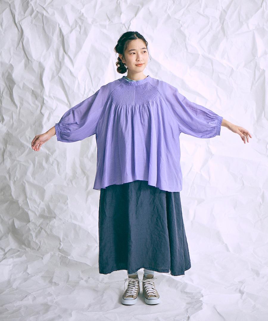 放射線状に細やかなピンタックを入れ、ふんわりと立体的なドレープ性のあるシルエットが特徴です。