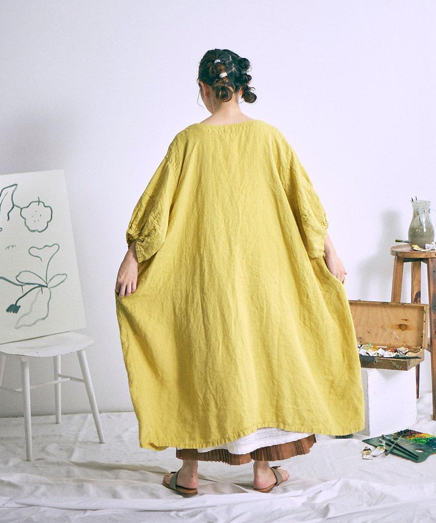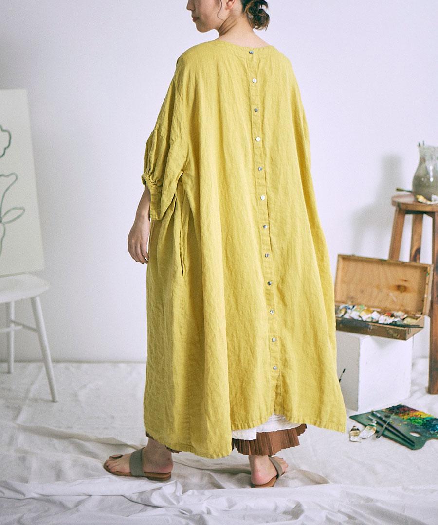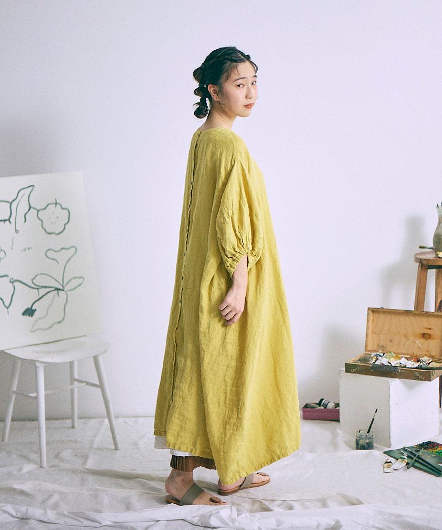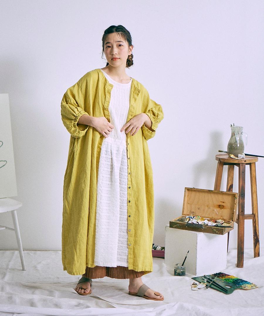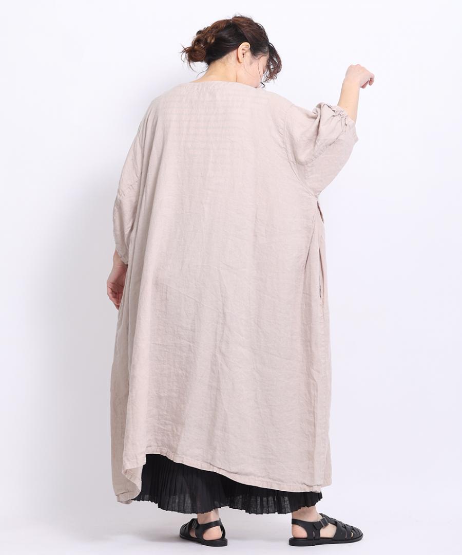 リネン100%生地を贅沢にたっぷり使用し、身幅や脇周りをゆったりと取ったボリュームシルエット。