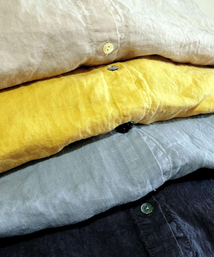 ソリトリネン①よりやや薄いリネン100%生地で、吸湿速乾性に優れ、さらりと蒸れない肌触りが特徴です。