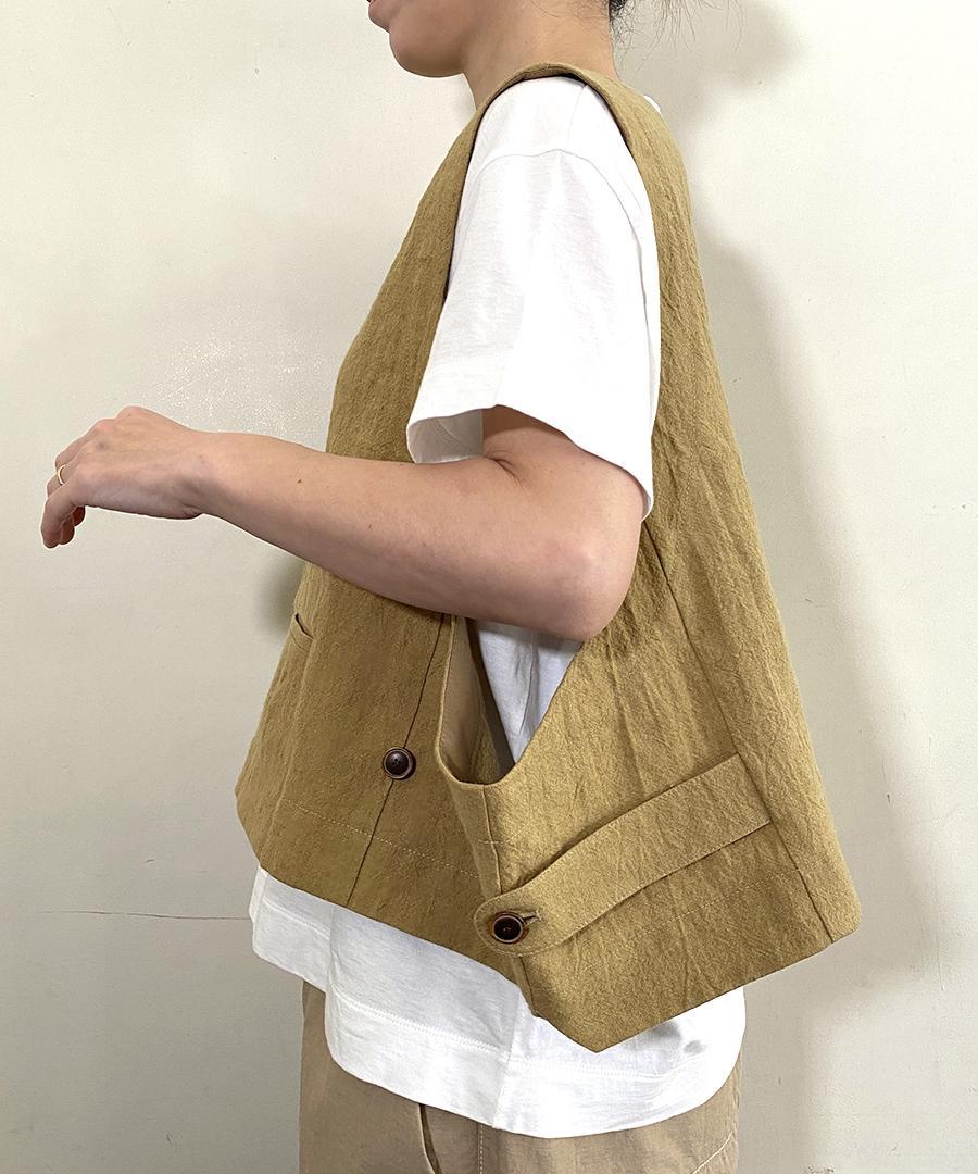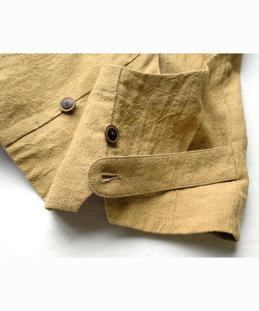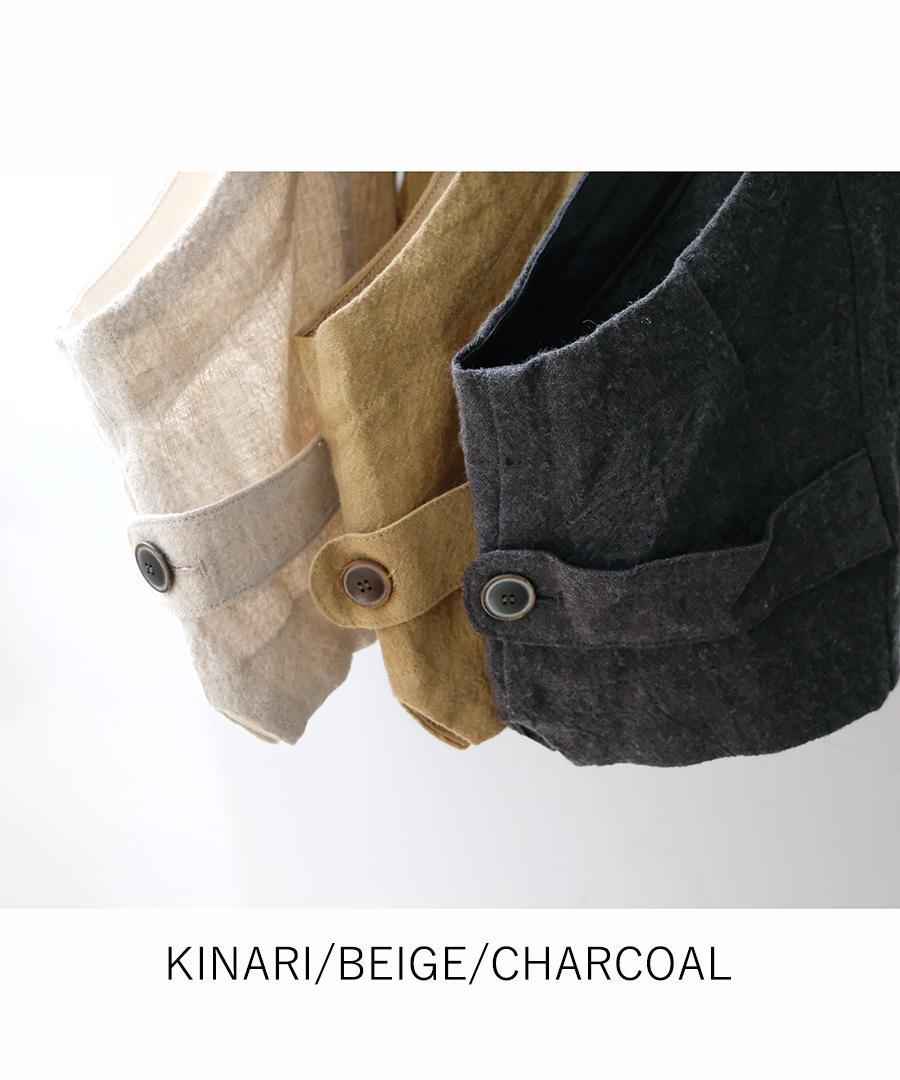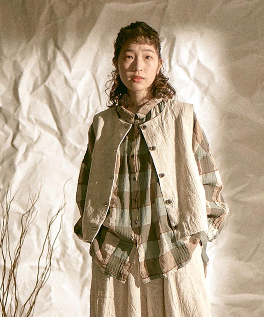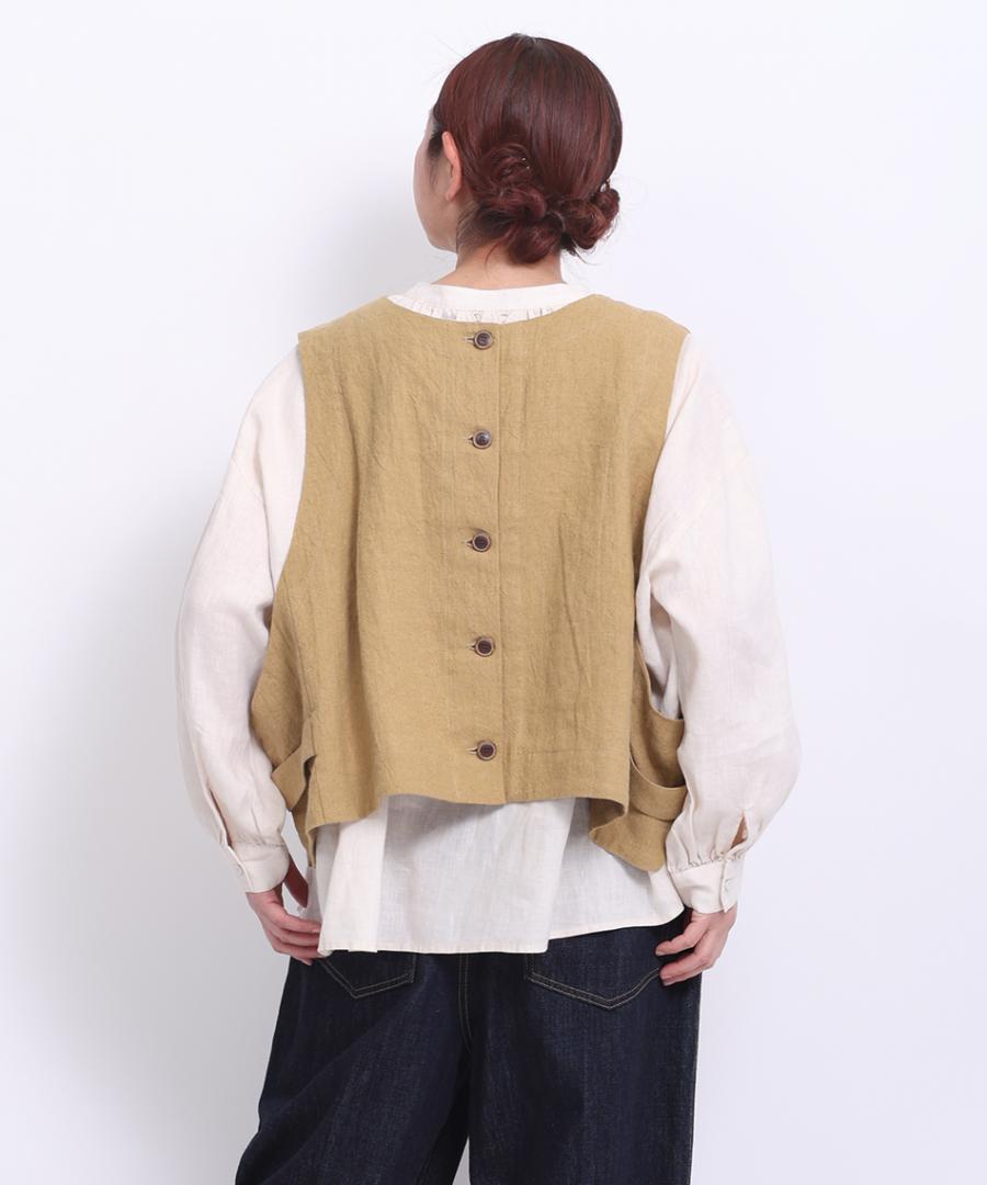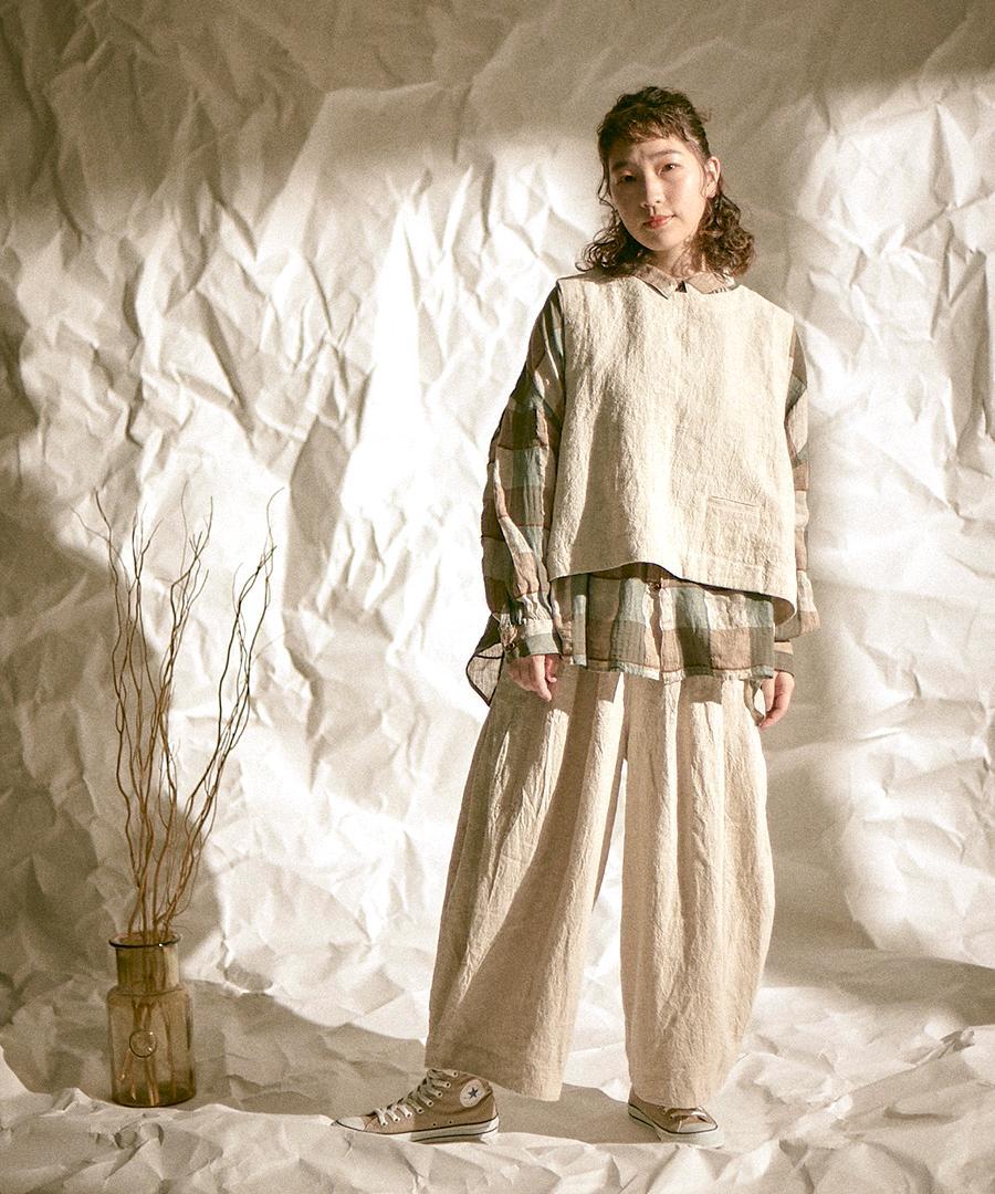 麻ウールの混紡糸を使用したウォーム感のある素材で仕立てたベスト。