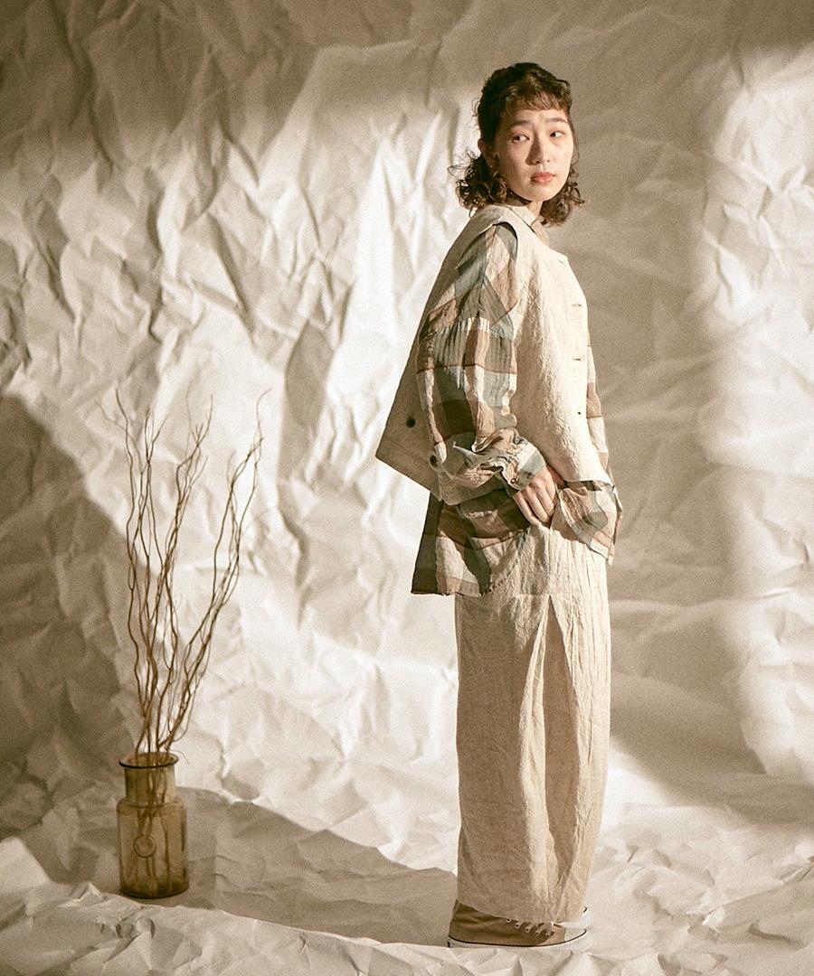 軽くてドライタッチな肌触り、細やかなしわ感がナチュラルな風合いたっぷりです。